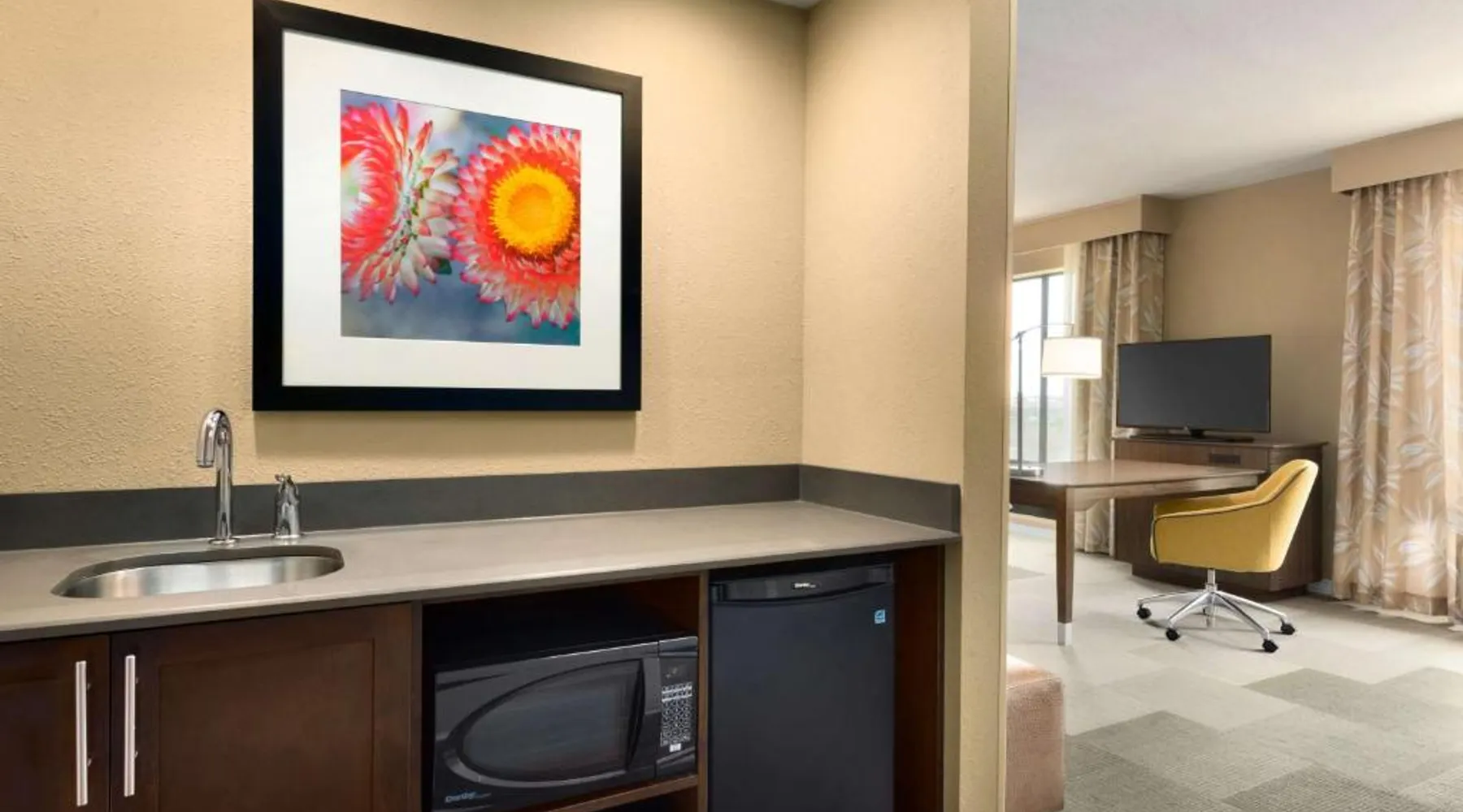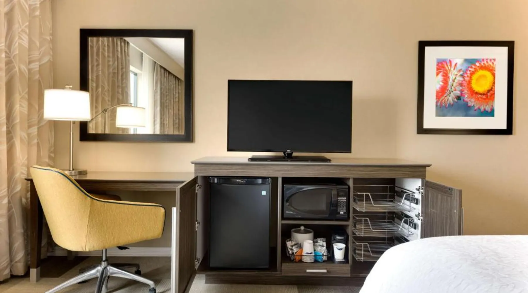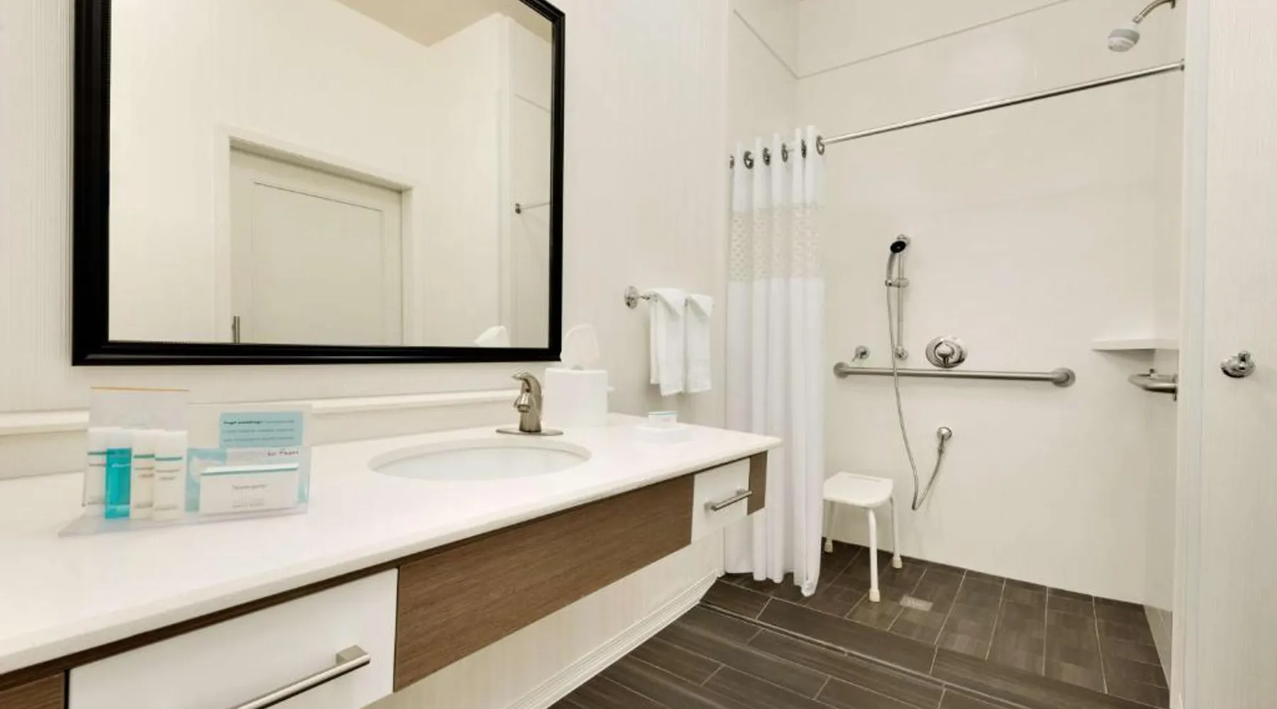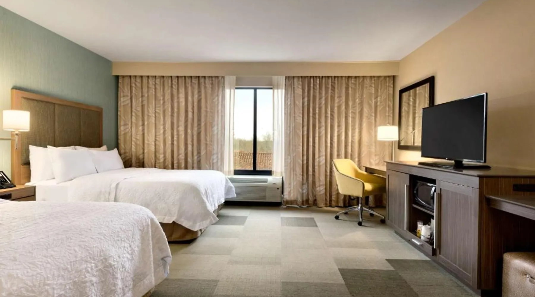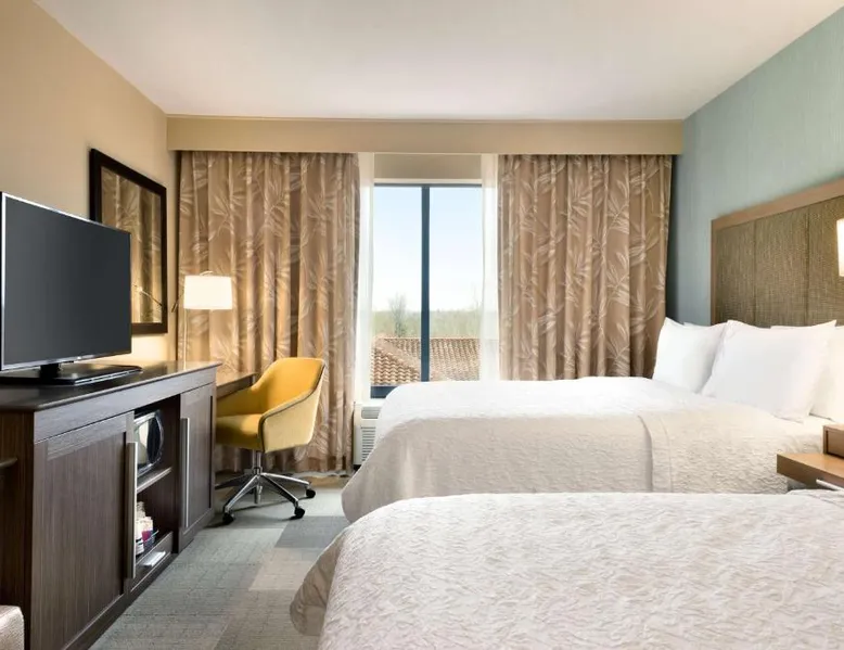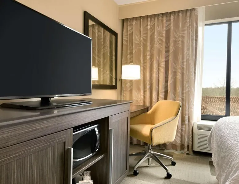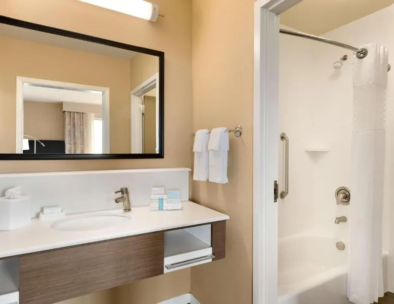 Comfortable Accommodations: Hampton Inn and Suites Monroe in Monroe offers comfortable rooms with tea and coffee makers, hairdryers, refrigerators, microwaves, showers, and TVs. Additional amenities include sofa beds and seating areas. Leisure Facilities: Guests can enjoy a saltwater swimming pool, indoor pool, and fitness center. Free WiFi is available throughout the property. Convenient Services: The hotel provides a 24-hour front desk, concierge service, minimarket, daily housekeeping, business area, outdoor seating, and luggage storage. Free on-site parking is provided. Nearby Attractions: Pecanland Mall is 1.2 mi away, Monroe Regional Airport is 2.5 mi, and attractions such as Malone Stadium and The Children's Museum are within 5 mi. A coffee machine and cable TV are featured in this room. Free toiletries are available in the private bathroom.