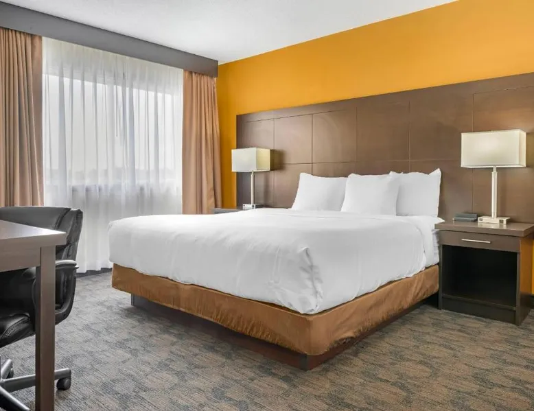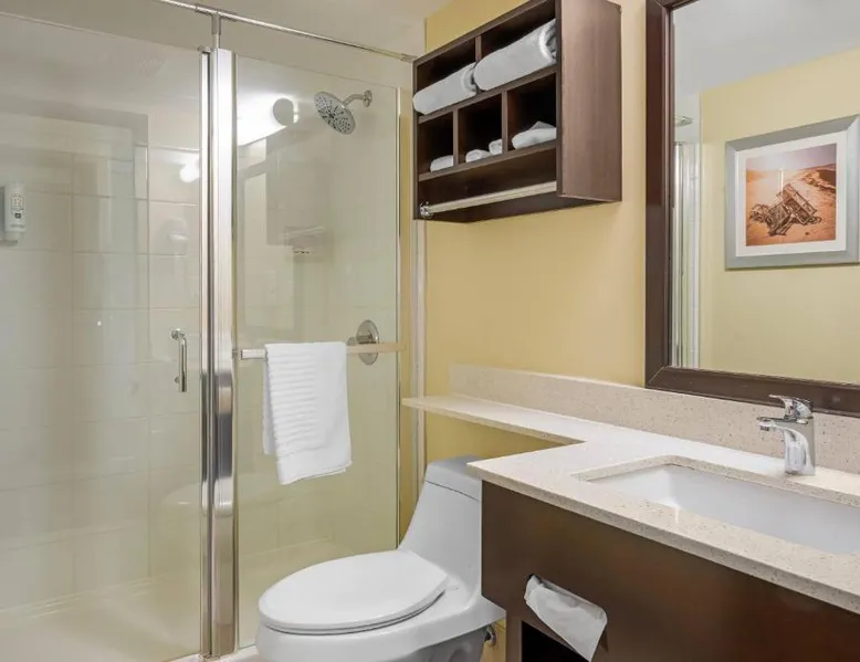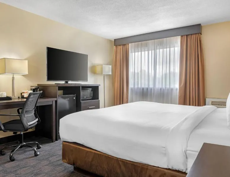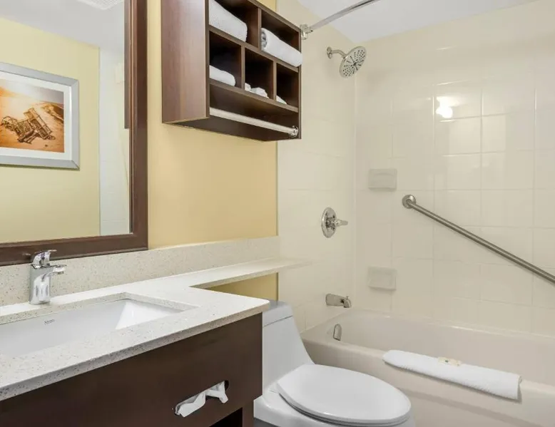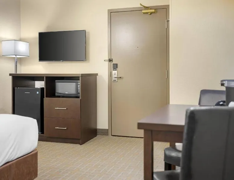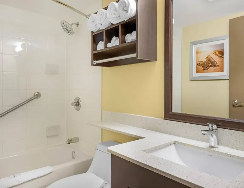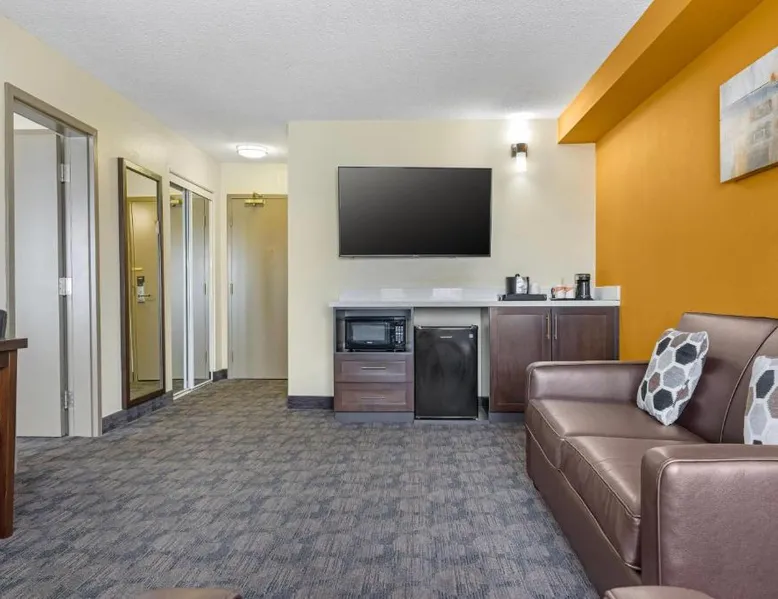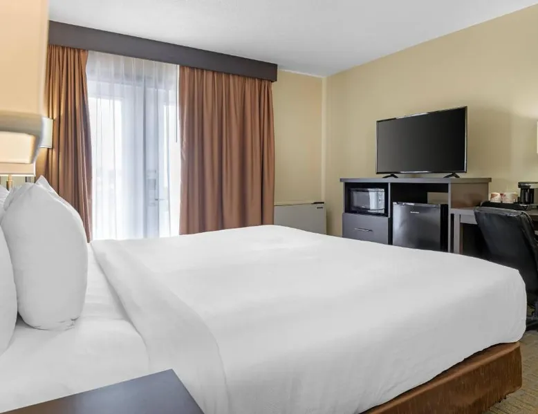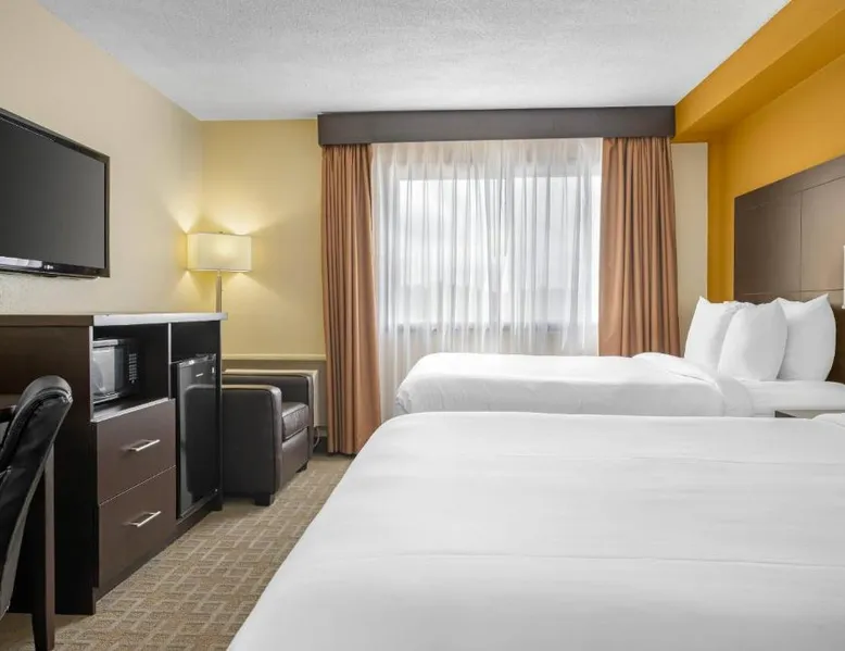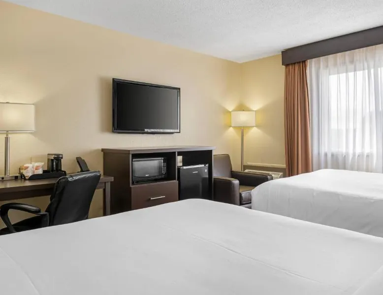 Comfortable Accommodations: Quality Inn & Suites in Bathurst offers family rooms with air-conditioning, free WiFi, and amenities such as a work desk, refrigerator, and TV. Each room includes a shower and tea and coffee maker. Exceptional Facilities: Guests can enjoy a fitness center, bar, and lounge. Additional facilities include a elevator, 24-hour front desk, housekeeping service, business area, and free on-site parking. Delicious Breakfast: A variety of breakfast options are available, including American, buffet, vegetarian, and gluten-free. Breakfast includes warm dishes, fresh pastries, fruits, and juice. Convenient Location: Located 3.1 mi from Bathurst Airport and near an ice-skating rink, the hotel provides easy access to local attractions. The family room provides air conditioning, a tea and coffee maker, a seating area, as well as a TV with cable channels. The unit offers 2 beds.