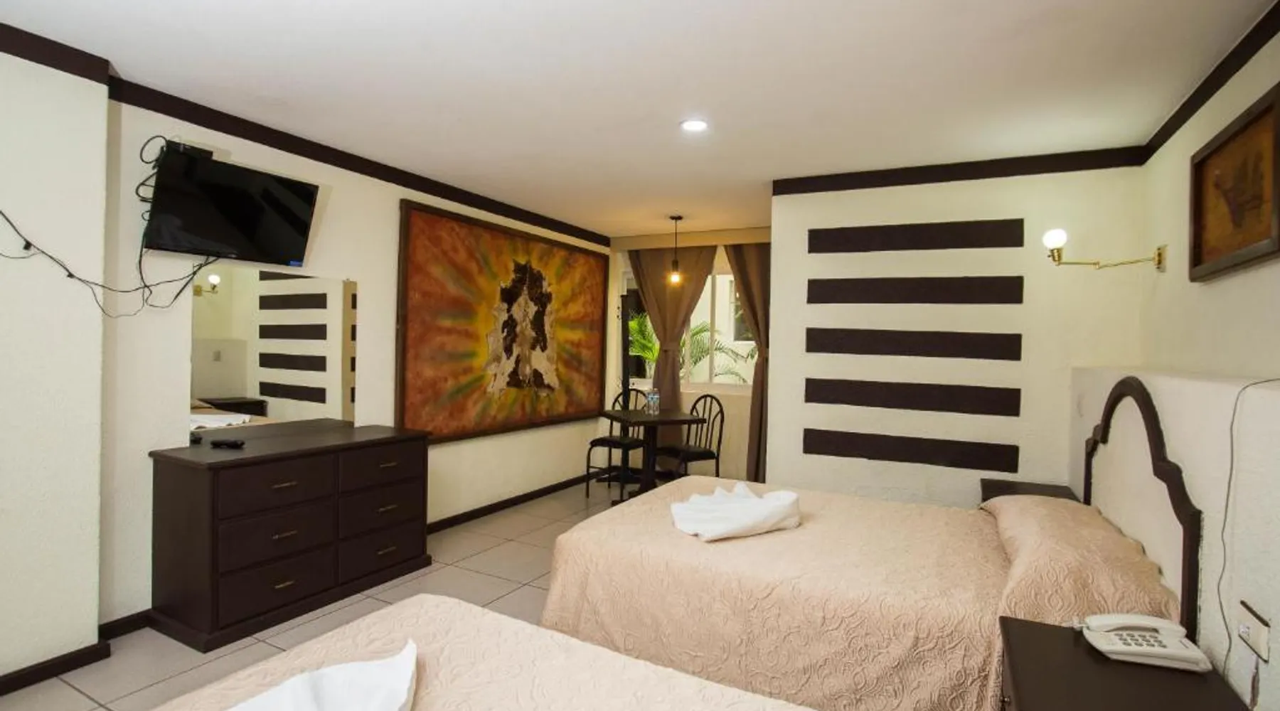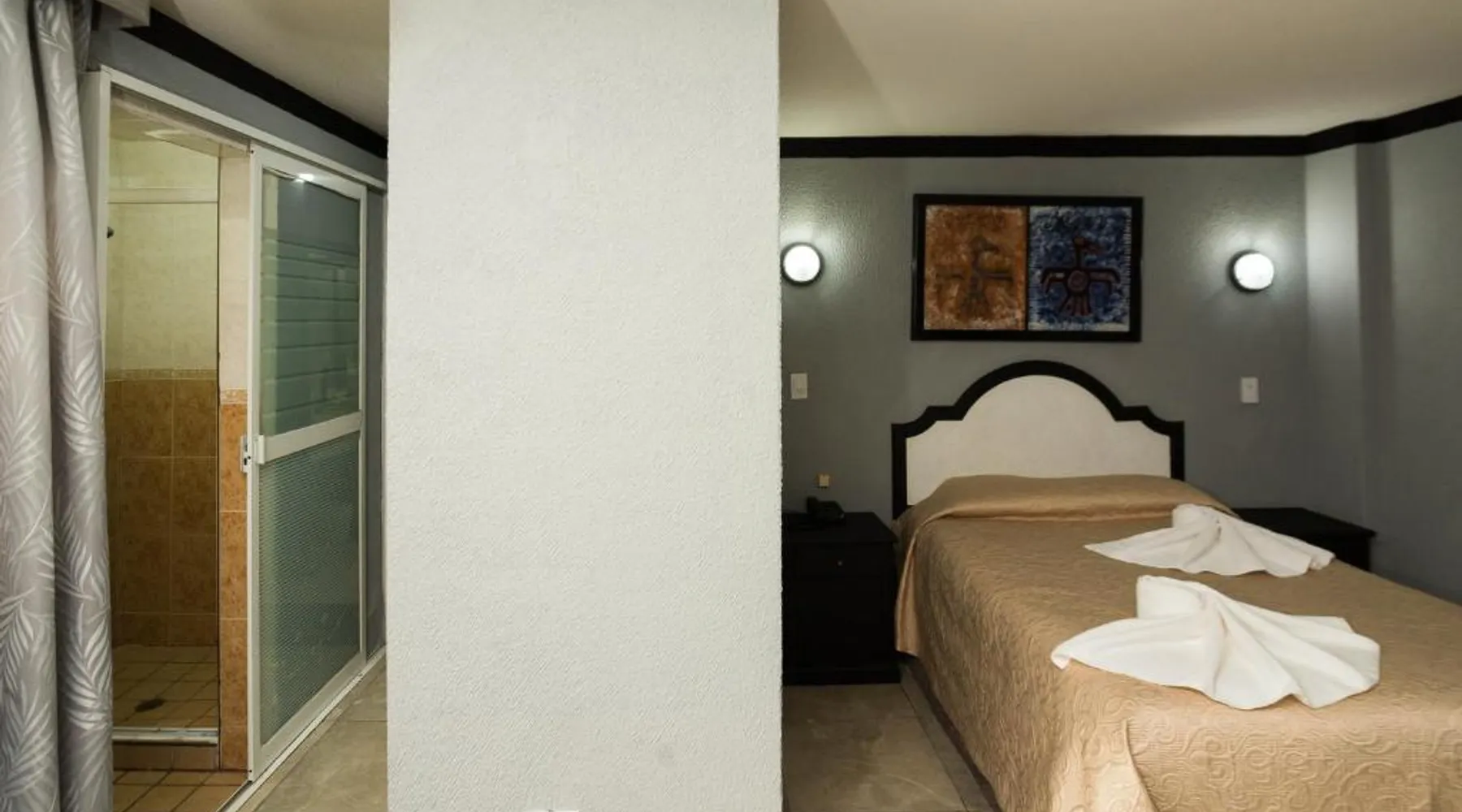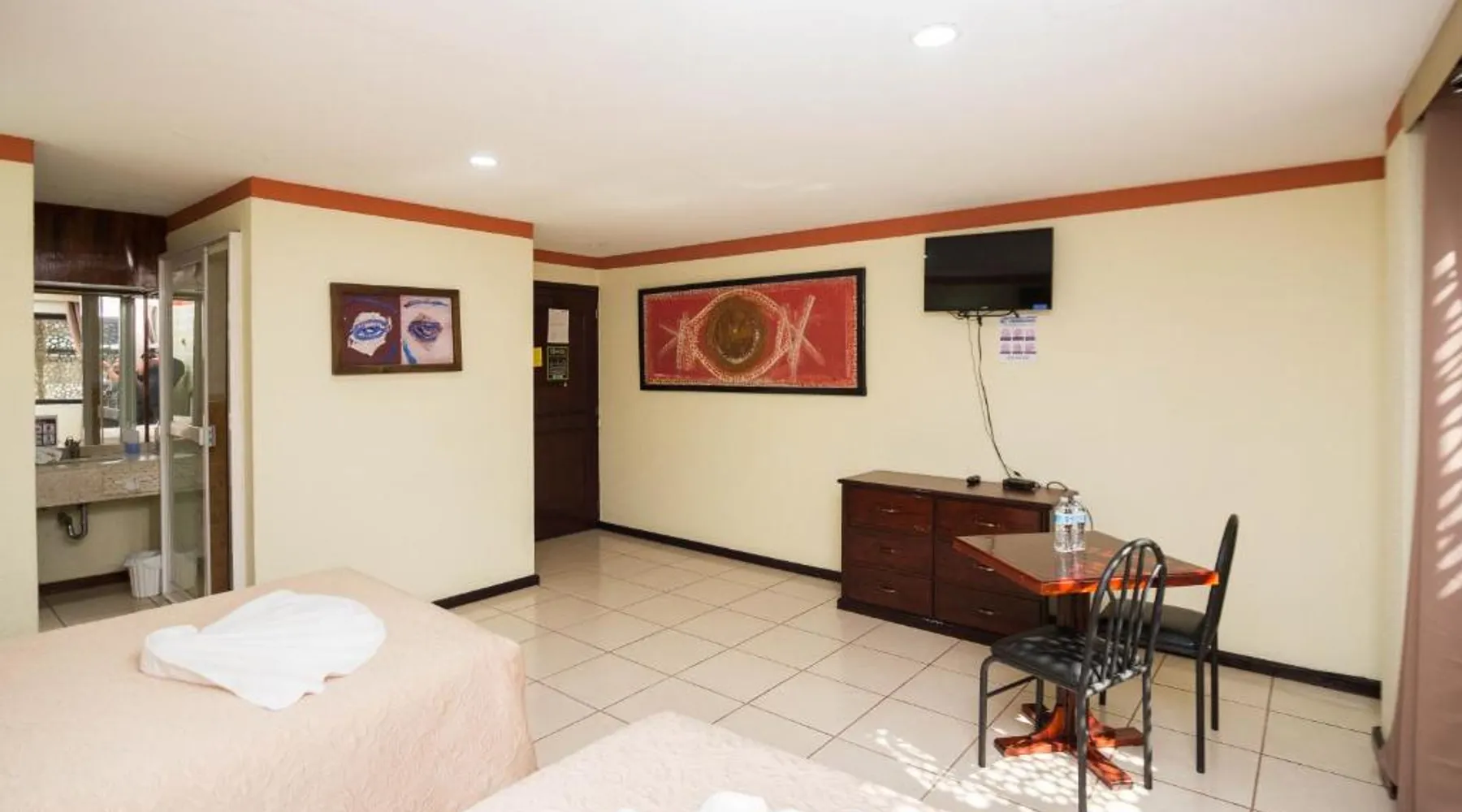 Comfortable Accommodations: Hotel Restaurant 1904 in Apizaco offers family rooms with private bathrooms, equipped with free WiFi, streaming services, and modern amenities. Each room includes a dining area, work desk, and seating space. Dining and Leisure: Guests can enjoy a restaurant and bar, complemented by free WiFi. The hotel provides a 24-hour front desk, room service, and a tour desk. Additional facilities include a breakfast in the room and free on-site private parking. Prime Location: Located 33 mi from Hermanos Serdán International Airport, the hotel is near attractions such as Acropolis Puebla (29 mi) and Tlaxcala Main Square (12 mi). Guests appreciate the convenient location and excellent service. This room has a seating area area, a wardrobe and a cable TV. It features a private bathroom with a shower and free toiletries.