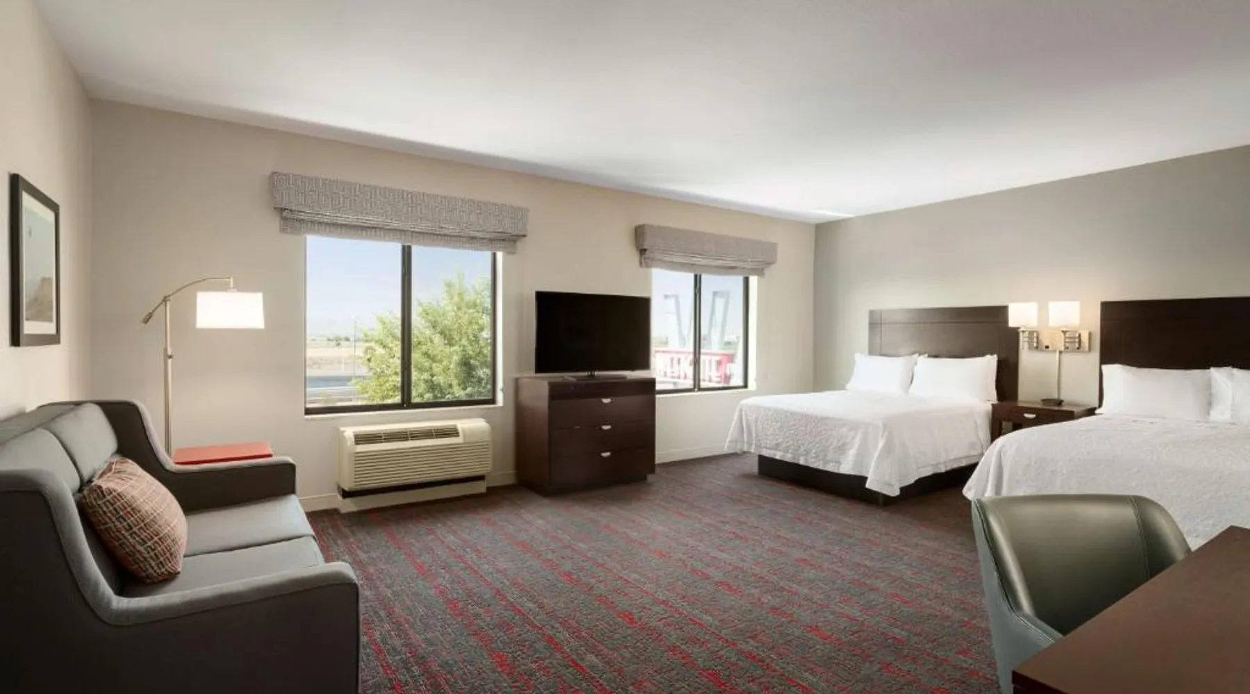 Nestled in the charming historic district of Glendale, Arizona, this hotel provides convenient services and amenities in a prime location surrounded by restaurants, shops and events. Hampton Inn & suites Phenix Glendale - Westgate is near the University of Phenix Stadium and the Gila River Arena. The nearby Westgate City Center, known as Times Square of the West, is home to a variety of shopping, restaurants and entertainment, including the Tanger Outlet Mall at Westgate. Guests at the Glendale Hampton Inn will enjoy a free breakfast before working out in the fitness room or relaxing beside the outdoor pool. After a day of shopping, guests can rest in a spacious guestroom with amenities such as a refrigerator, microwave and flat-screen TV. The family room offers air conditioning, a tea and coffee maker, as well as a private bathroom featuring a hairdryer. This family room features heating and a flat-screen TV. The unit offers 2 beds.