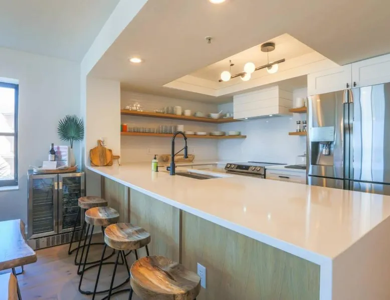 Beachfront and Pool: Sunshine Daydream in Folly Beach offers direct beachfront access and a seasonal outdoor swimming pool. Guests can relax on the sand or take a dip in the refreshing waters. Spacious Accommodations: The holiday home features four bedrooms and three bathrooms, ensuring ample space for all visitors. The living room provides a comfortable area for relaxation. Modern Amenities: Equipped with air-conditioning, a washing machine, and a fully fitted kitchen, the property includes a seating area, free toiletries, and a TV. Private check-in and check-out services enhance the stay. Nearby Attractions: Folly Beach is just a few steps away, while Charleston International Airport is 21 mi from the property. Other attractions such as Charleston City Marina and Charleston Museum are within 12 mi. This spacious holiday home consists of 1 living room, 4 separate bedrooms and 3 bathrooms with a hairdryer and free toiletries. The kitchen is equipped with a refrigerator, a dishwasher and a microwave. This holiday home is air-conditioned and features a seating area with a TV, a washing machine, a tea and coffee maker and tumble dryer. The unit offers 5 beds.
