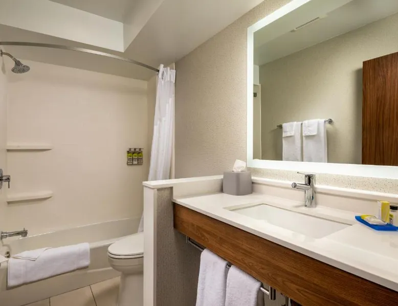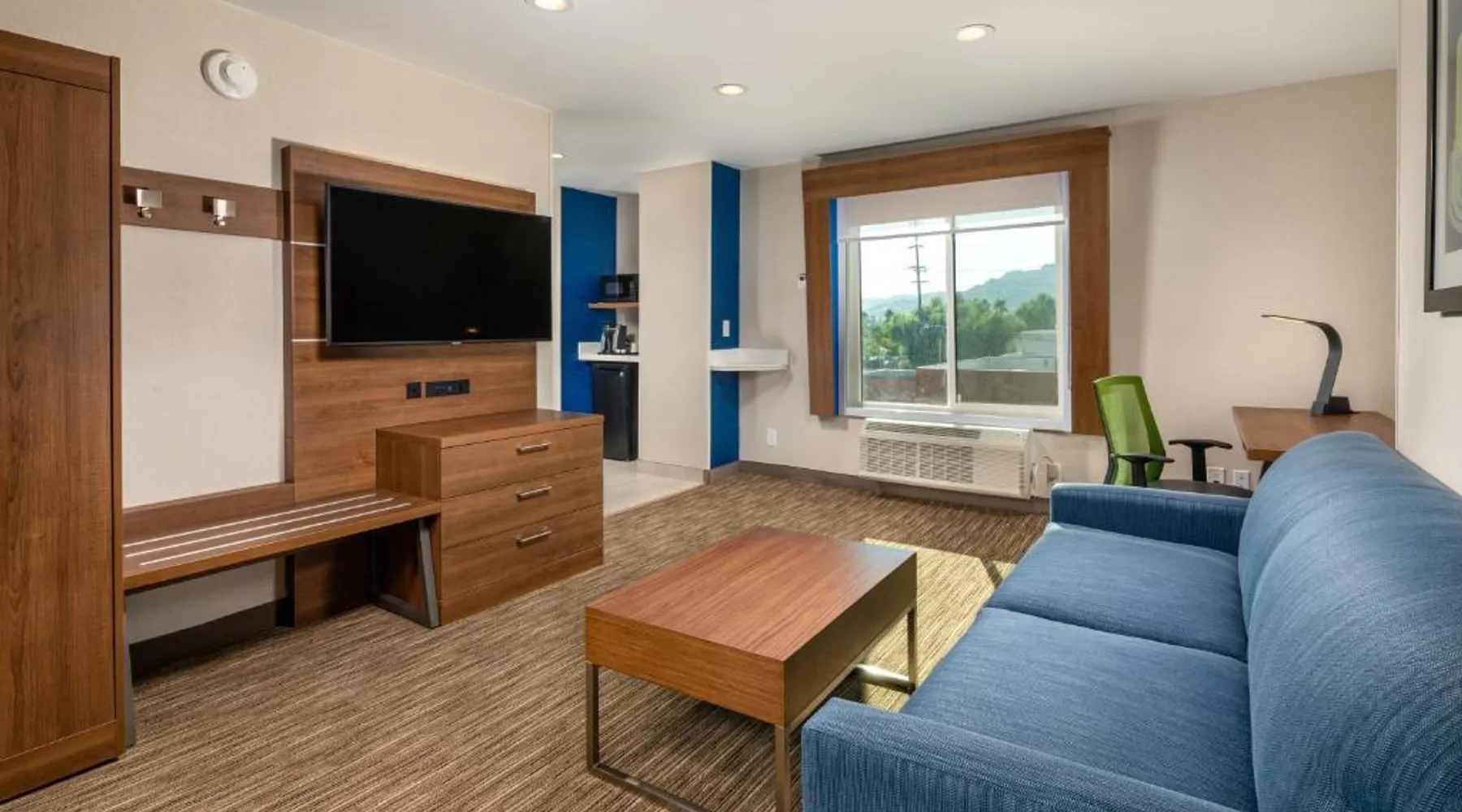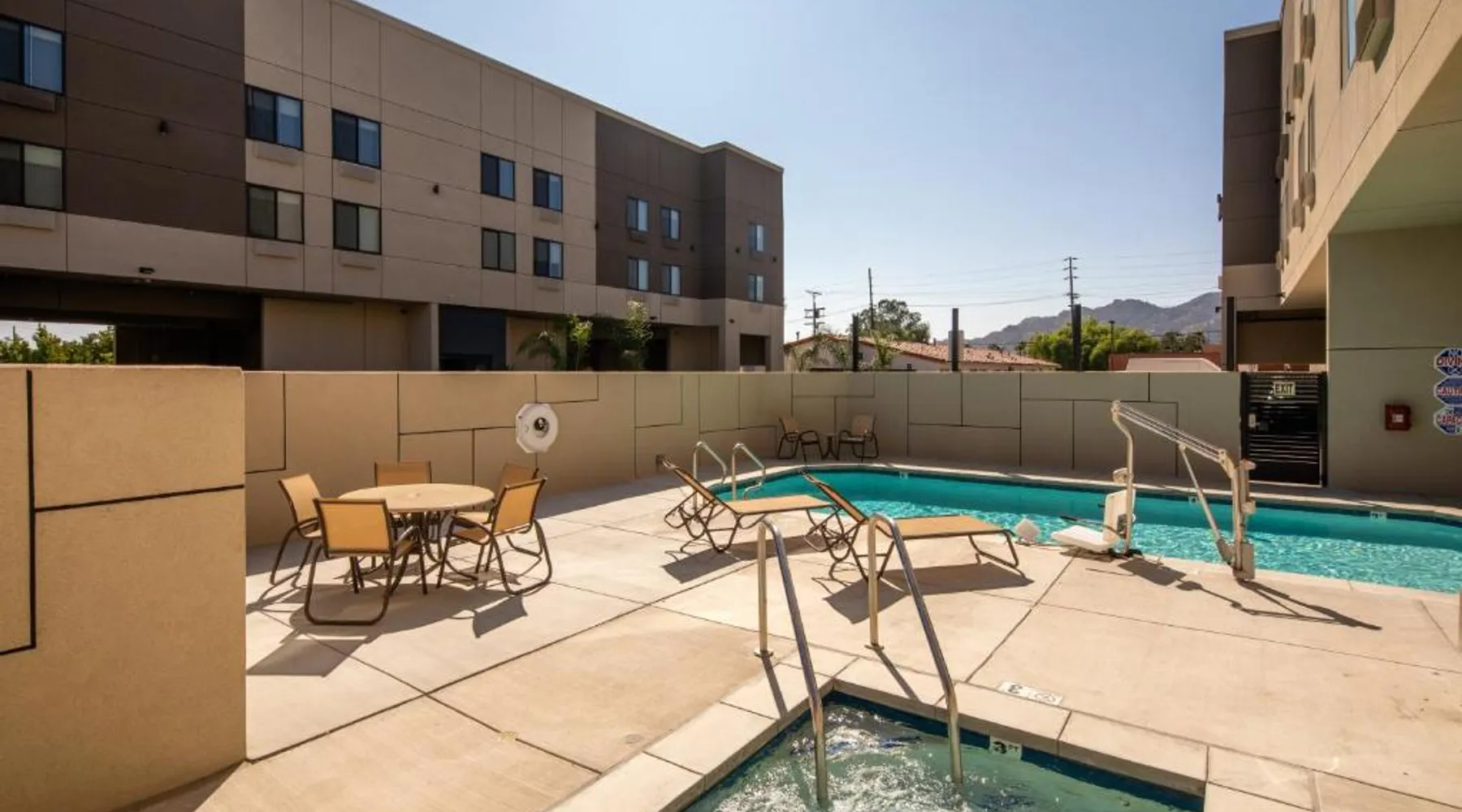 Holiday Inn Express & Suites Chatsworth Hotel in Chatsworth features 2-star accommodations with a bar. This 2-star hotel offers an ATM. Private parking can be arranged at an extra charge. Around the clock assistance is available at the reception, where staff speak English, Spanish, Indonesian and Filipino. Los Angeles is 30 mi from Chatsworth Hotel, while Santa Monica is 22 mi away. The nearest airport is Hollywood Burbank Airport, 16 mi from the accommodations. This double room features a private pool and a hot tub. The spacious double room provides air conditioning, a washing machine, as well as a private bathroom featuring a walk-in shower and a bath. The unit offers 2 beds.