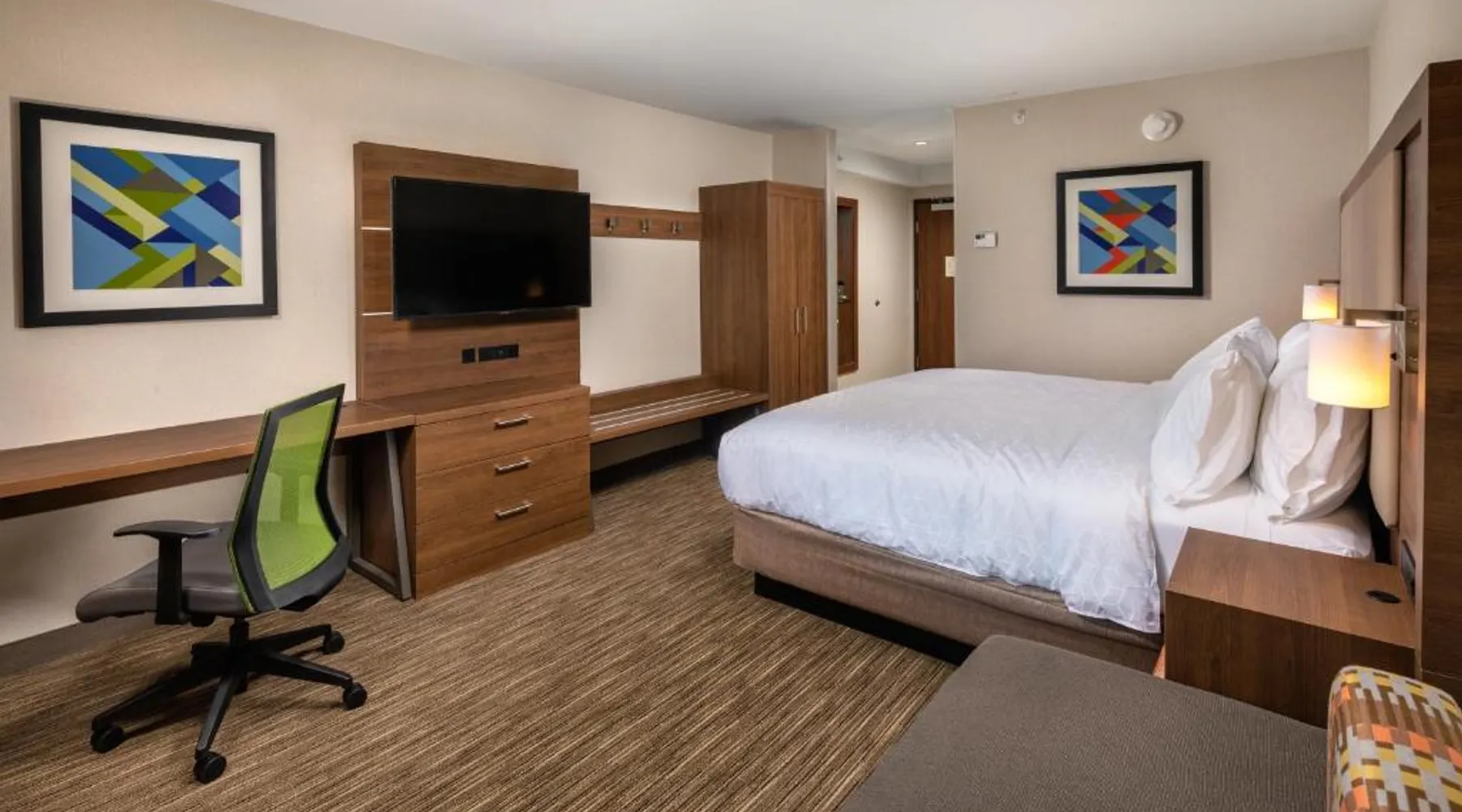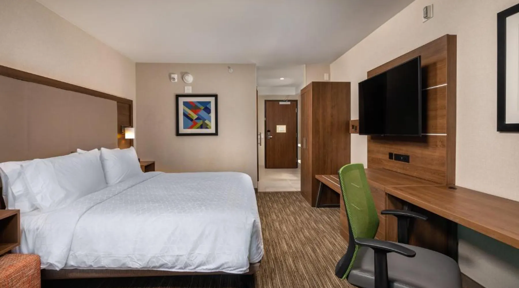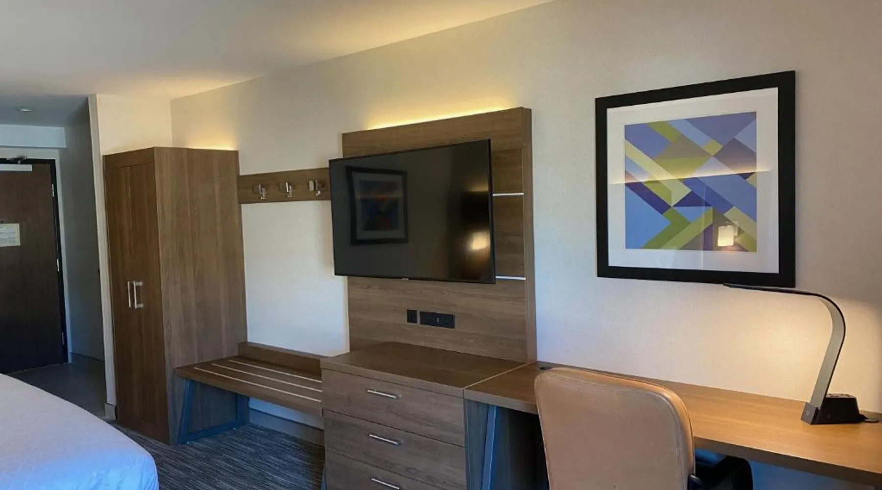 Holiday Inn Express & Suites Chatsworth Hotel in Chatsworth features 2-star accommodations with a bar. This 2-star hotel offers an ATM. Private parking can be arranged at an extra charge. Around the clock assistance is available at the reception, where staff speak English, Spanish, Indonesian and Filipino. Los Angeles is 30 mi from Chatsworth Hotel, while Santa Monica is 22 mi away. The nearest airport is Hollywood Burbank Airport, 16 mi from the accommodations. This double room features a private pool and a hot tub. The spacious double room provides air conditioning, a washing machine, as well as a private bathroom featuring a walk-in shower and a bath. The unit offers 2 beds.