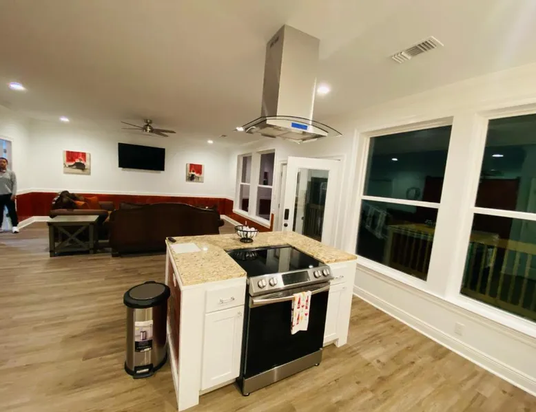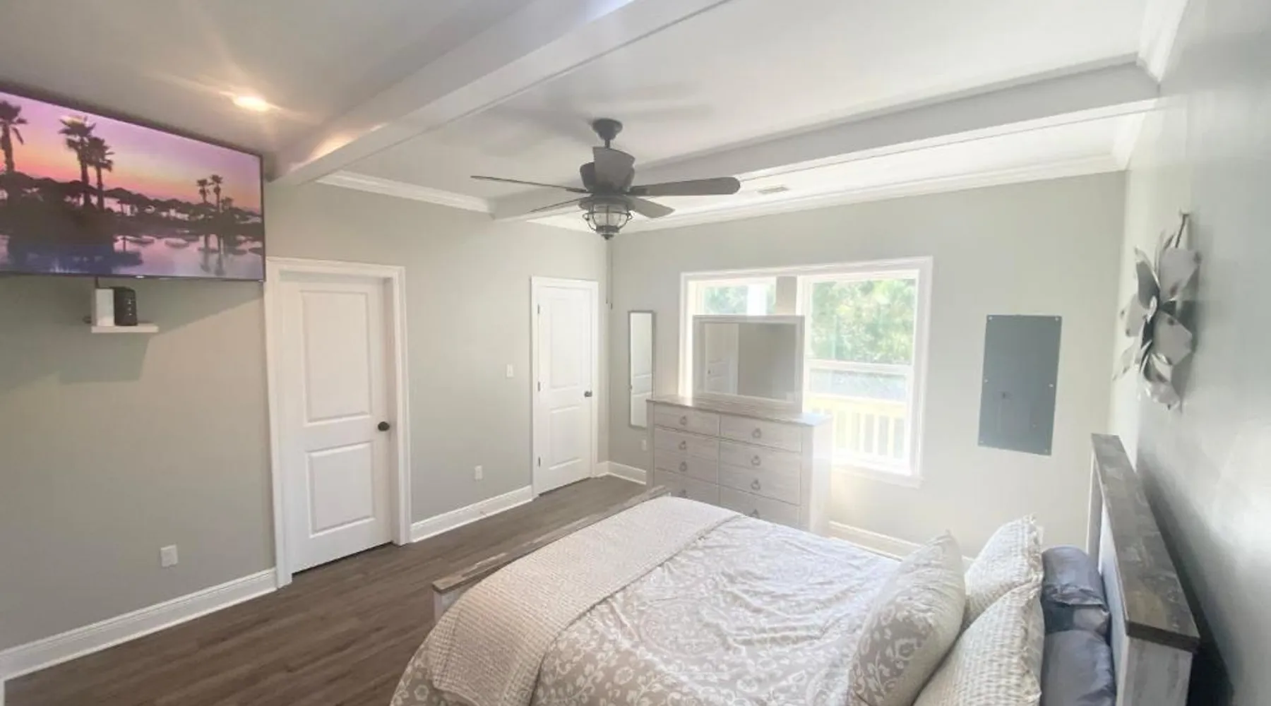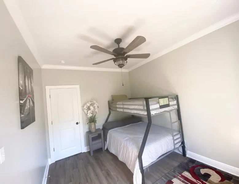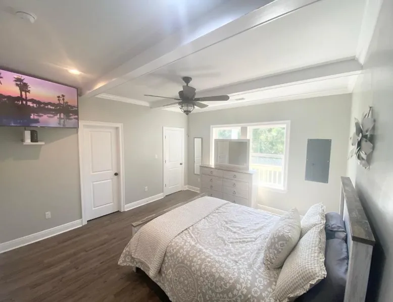 Spacious Accommodations: Bungalow Beach house in Bay St. Louis offers a spacious holiday home with two bedrooms and two bathrooms. The living room provides ample space for relaxation. Modern Amenities: The property features air-conditioning, a balcony, washing machine, fully equipped kitchen, and TV. Free on-site private parking is available for guests. Local Attractions: Located 21 mi from Gulfport-Biloxi International Airport, nearby attractions include Diamondhead Country Club (15 mi), West Side Park And Splash Pad (17 mi), and Port Of Gulfport (18 mi). Activities such as fishing and canoeing are popular. Guest Satisfaction: Highly rated for room comfort and cleanliness, the property ensures a pleasant stay for all visitors. The holiday home's kitchen is available for cooking and storing food. The spacious holiday home provides air conditioning, a washing machine, heating, as well as a flat-screen TV. The unit offers 4 beds.