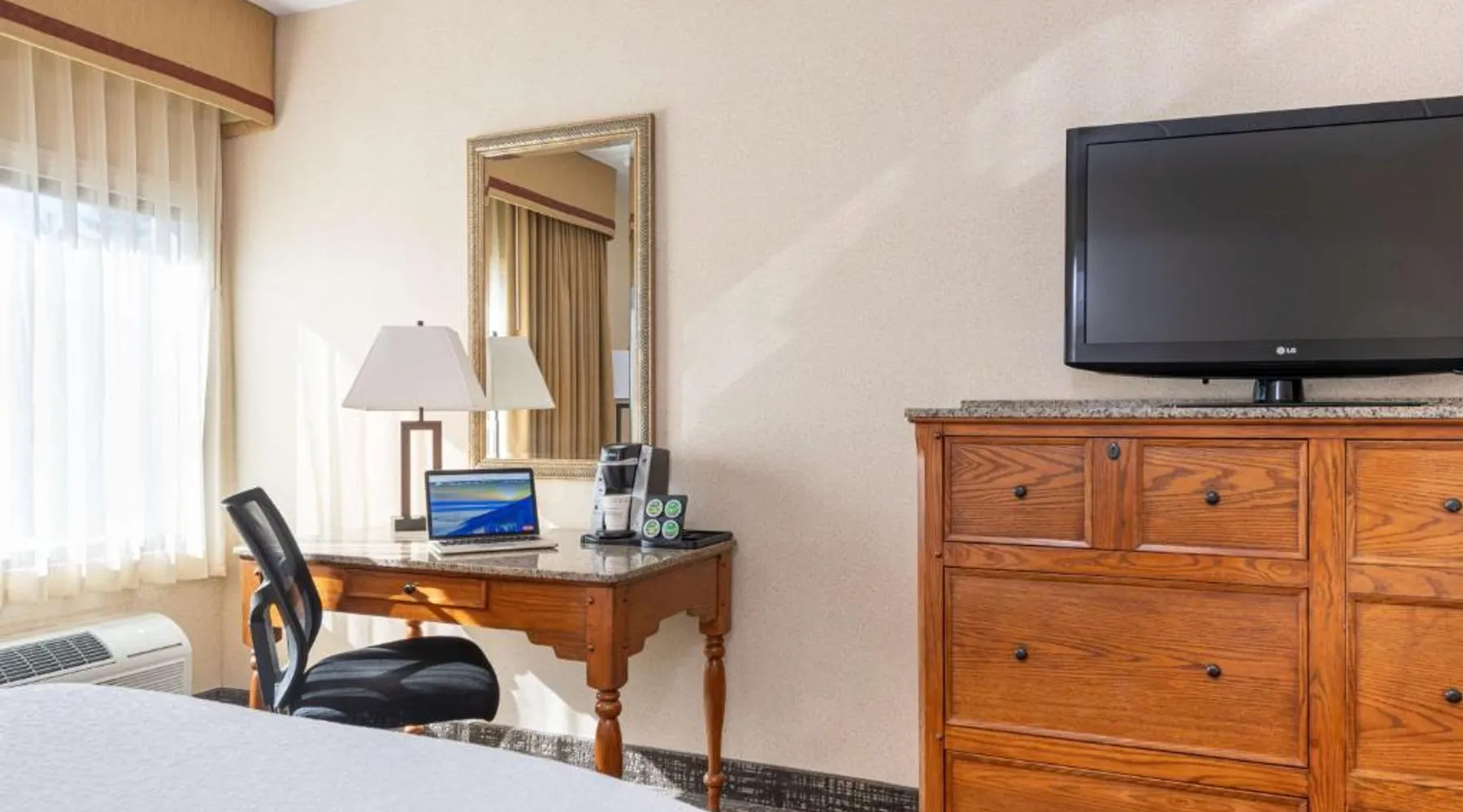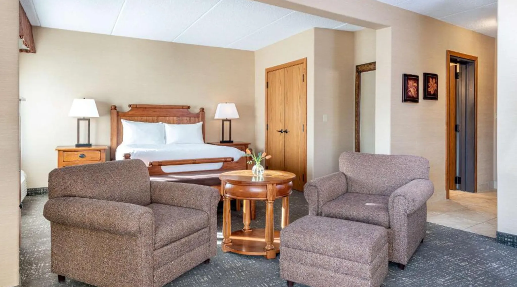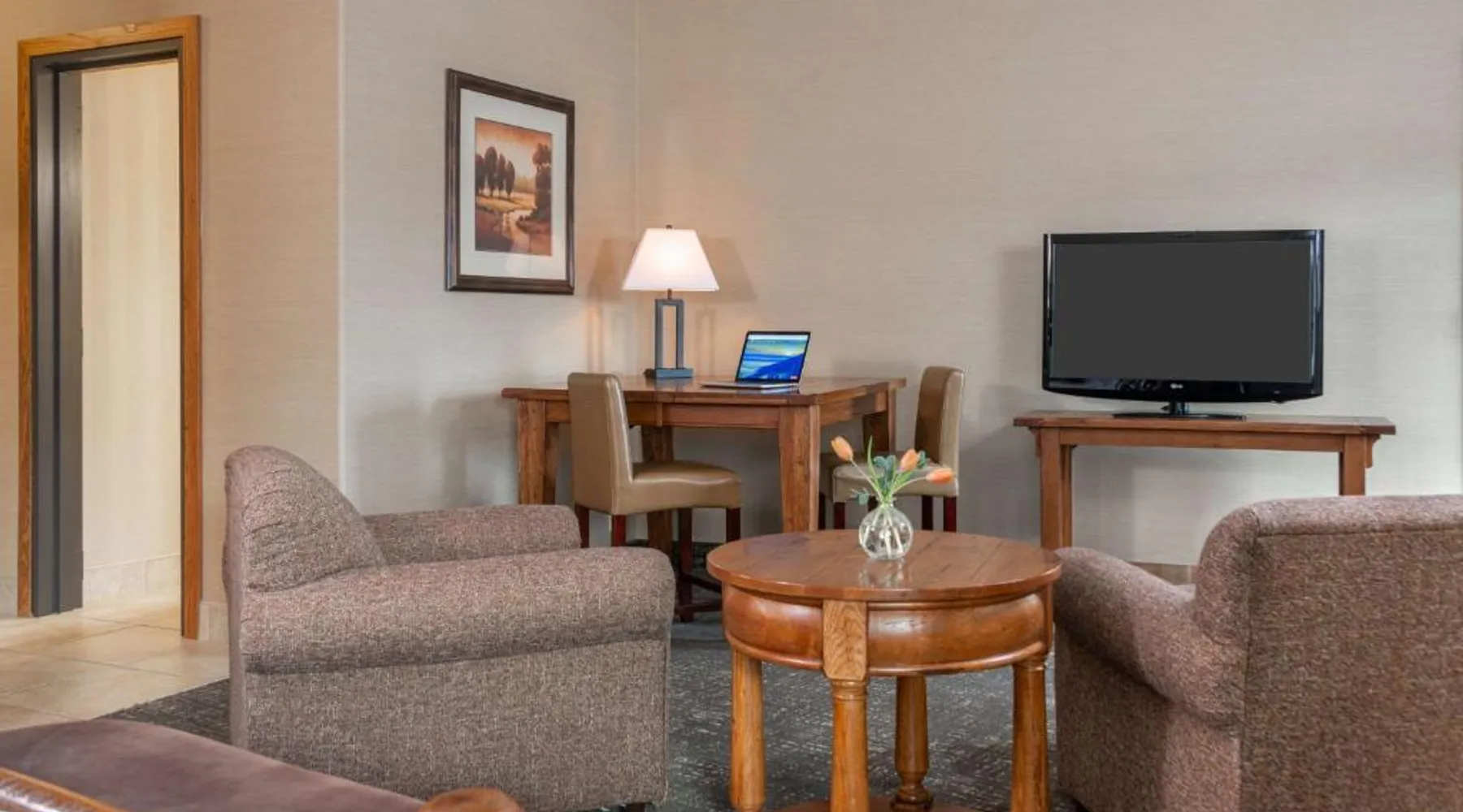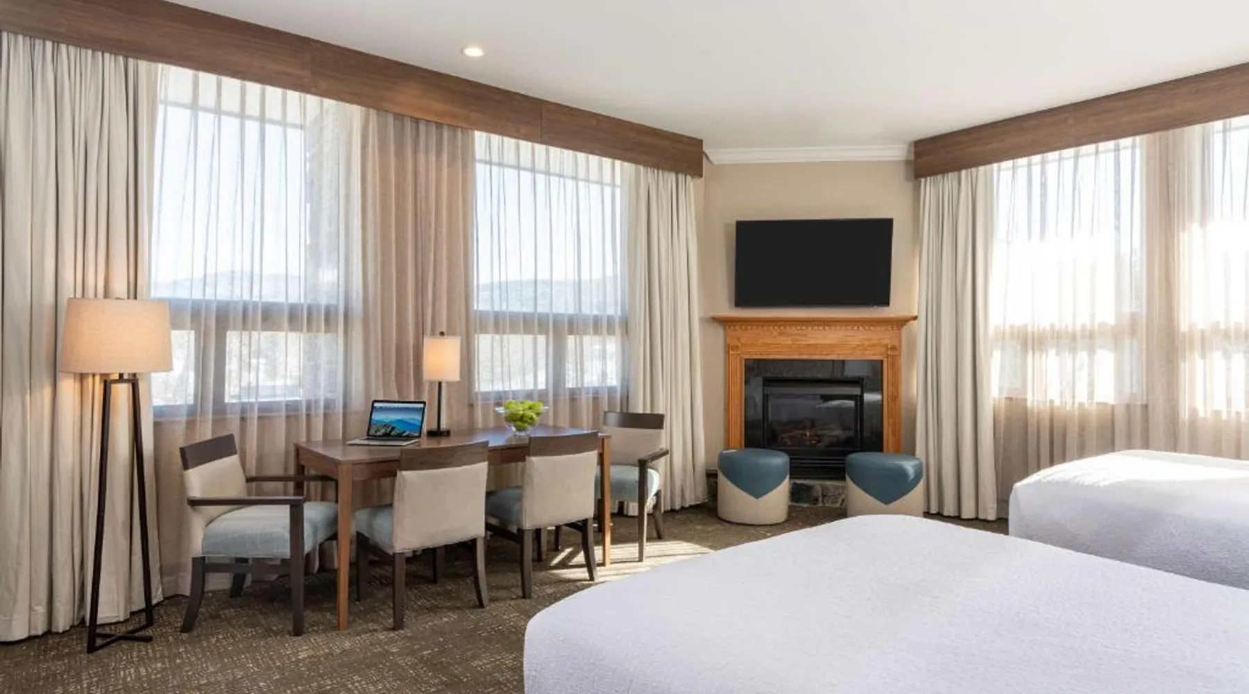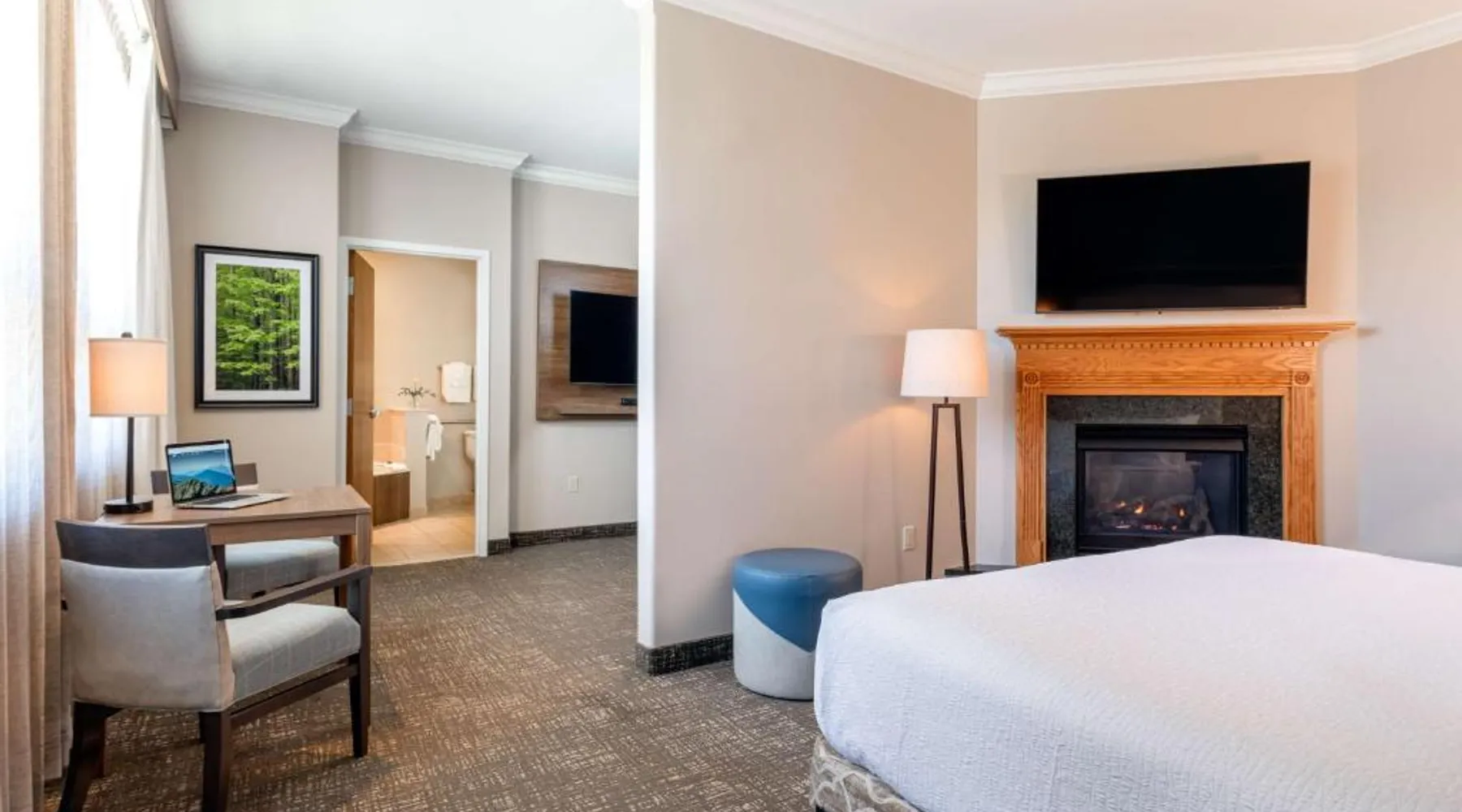 Surrounded by the Green Mountains of Vermont, this Waterbury hotel features an indoor swimming pool and free WiFi. A flat-screen cable TV and air conditioning are provided in each room at Best Western Plus Waterbury - Stowe. There is also a coffee machine. Select rooms have a mountain view. The hotel has a fitness center, shared lounge with a fireplace and a games room. An array of activities can be enjoyed on site or in the surroundings, including skiing and hiking. A grab-and-go breakfast is provided each morning. Waterbury – Stowe Best Western Plus is 1.1 mi from Green Mountain Coffee Café & Visitor Center. Golfing at Blush Hill Country Club is 3 minutes’ drive away. This suite's standout features are the pool with a view, hot tub and fireplace. The air-conditioned suite has 1 bedroom and 1 bathroom with a walk-in shower and a bath. The suite offers a tea and coffee maker, a seating area, a wardrobe, a flat-screen TV with cable channels, as well as mountain views. The unit has 2 beds.