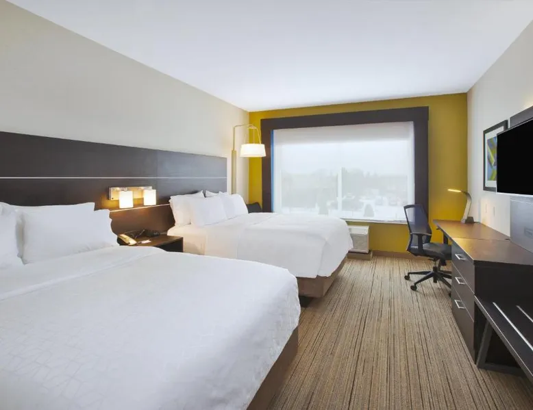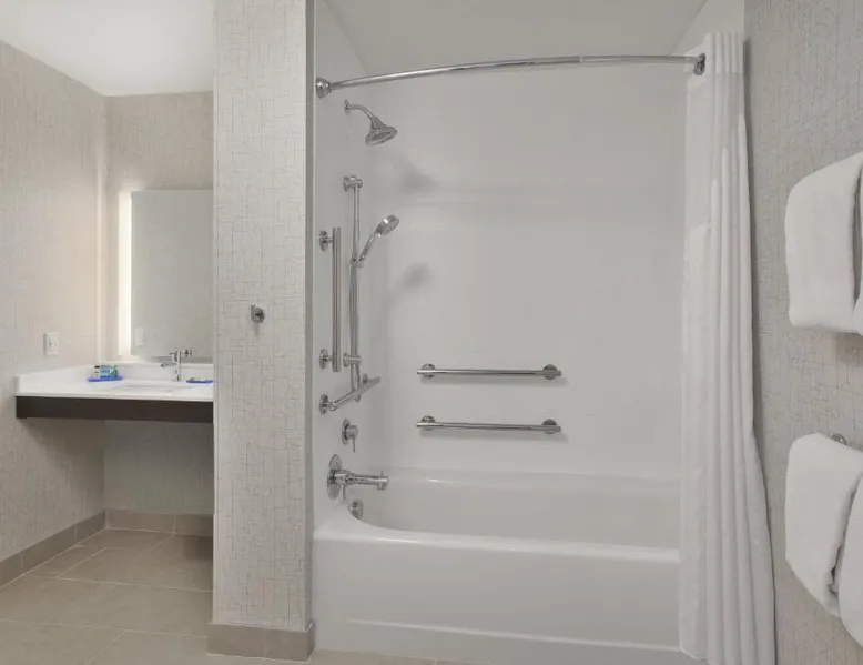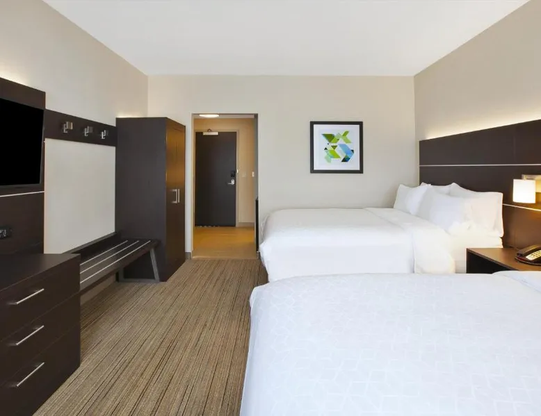 Comfortable Accommodations: Holiday Inn Express - Auburn Hills South by IHG in Auburn Hills offers air-conditioned rooms with private bathrooms, tea and coffee makers, and free WiFi. Each room includes a work desk, seating area, and free toiletries. Exceptional Facilities: Guests can enjoy a fitness center, indoor swimming pool, and a 24-hour front desk. Additional amenities include a minimarket, business area, and outdoor seating. Free on-site parking is available. Delicious Breakfast: A continental buffet breakfast is served daily, featuring fresh pastries, pancakes, cheese, fruits, and juice. The child-friendly buffet caters to families with young children. Prime Location: Located 4.3 mi from Meadow Brook Music Festival and 30 mi from TCF Center, the hotel is near attractions such as Dte Energy Music Theater and Motown Historical Museum. Offering free toiletries, this double room includes a private bathroom with a bath, a shower and a hairdryer. The spacious double room offers air conditioning, a private entrance, a tea and coffee maker, a seating area and a flat-screen TV with cable channels. The unit has 2 beds.
