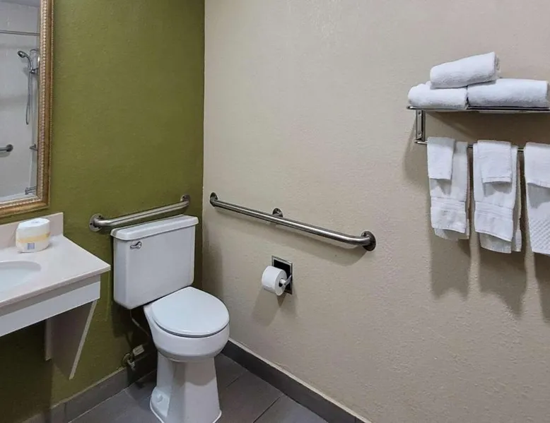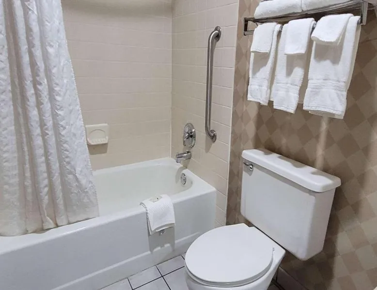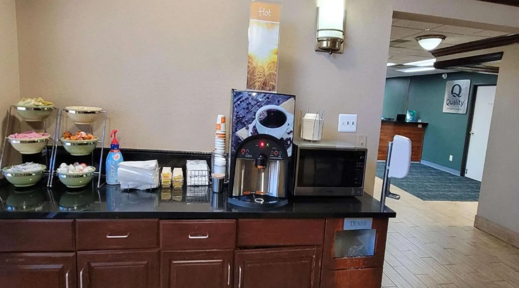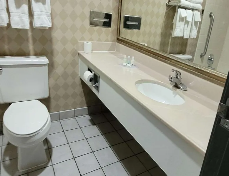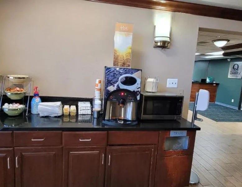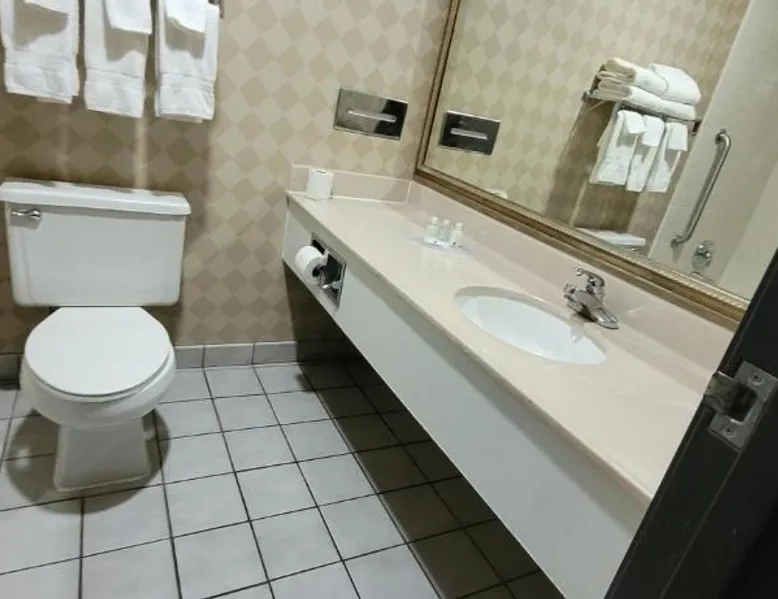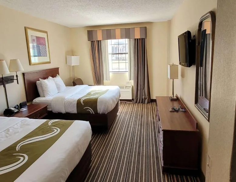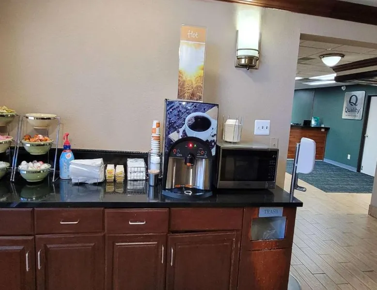 Comfortable Accommodations: Quality Inn & Suites Columbia I-70 in Columbia offers family rooms with air-conditioning, private bathrooms, and garden or pool views. Each room includes a tea and coffee maker, work desk, and free toiletries. Leisure Facilities: Guests can relax on the sun terrace or swim in the seasonal outdoor pool. The hotel provides free WiFi, a fitness room, and outdoor seating areas. Additional amenities include a lounge, minimarket, and barbecue facilities. Convenient Location: Located 12 mi from Columbia Regional Airport and 5 mi from Faurot Field, the hotel offers easy access to local attractions. Guests appreciate the attentive staff and comfortable rooms. A microwave, fridge and coffee maker are provided in this room. The bathroom is equipped with a hairdryer.