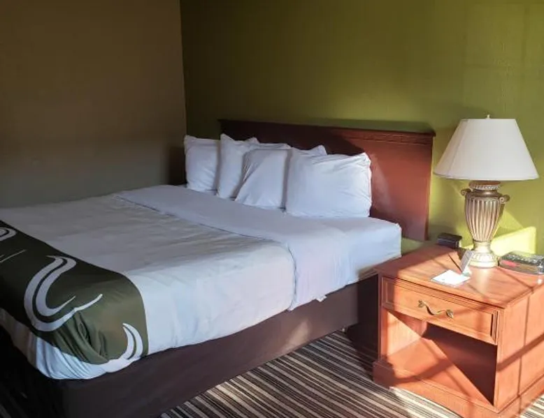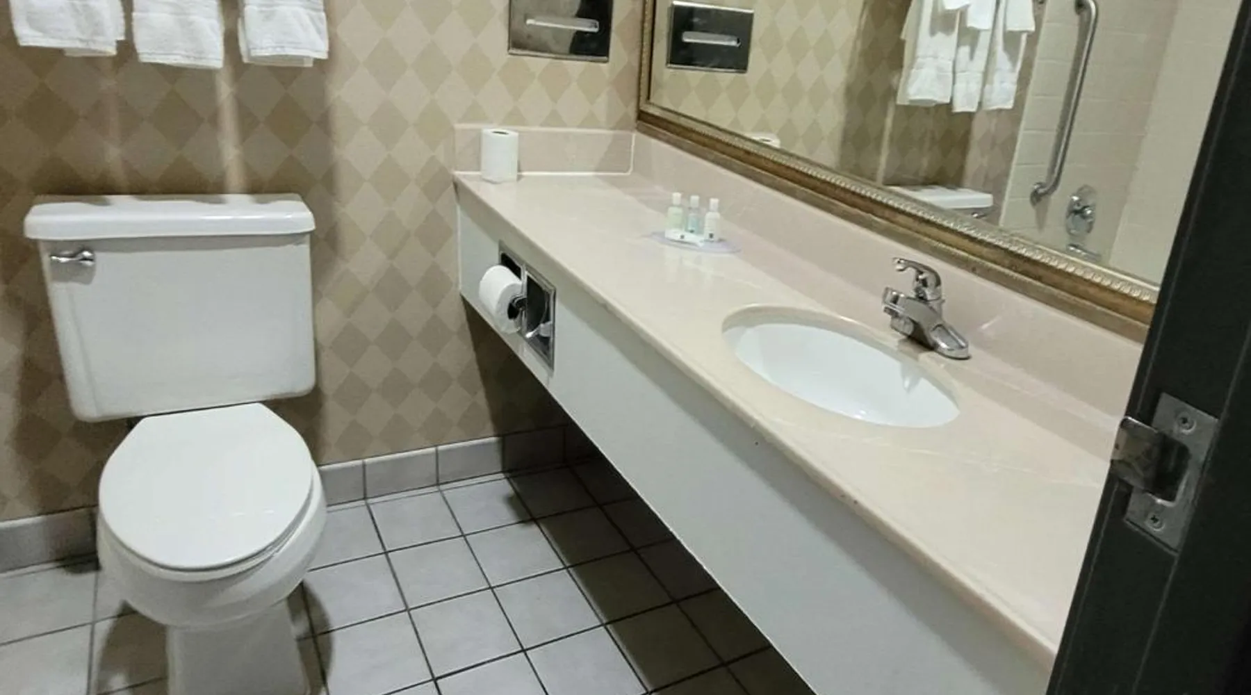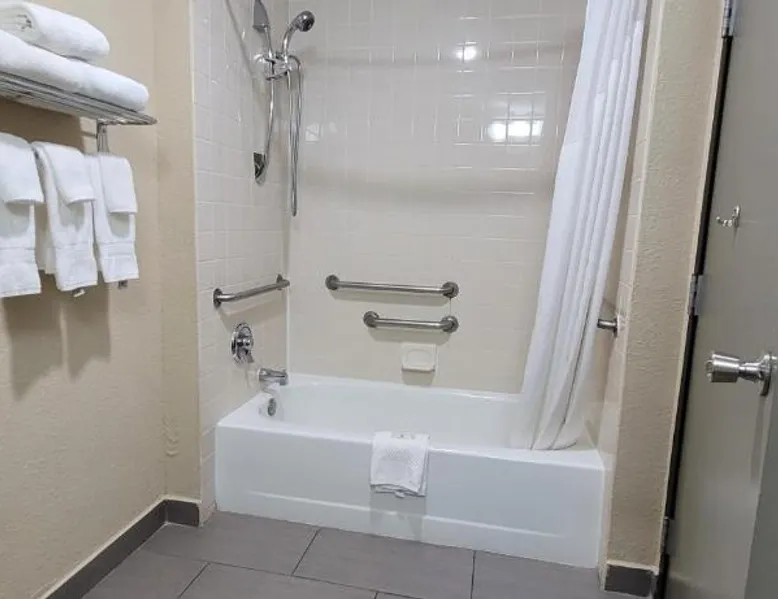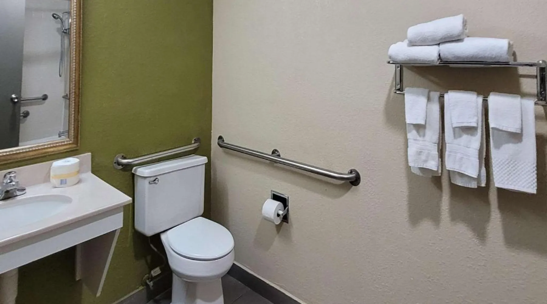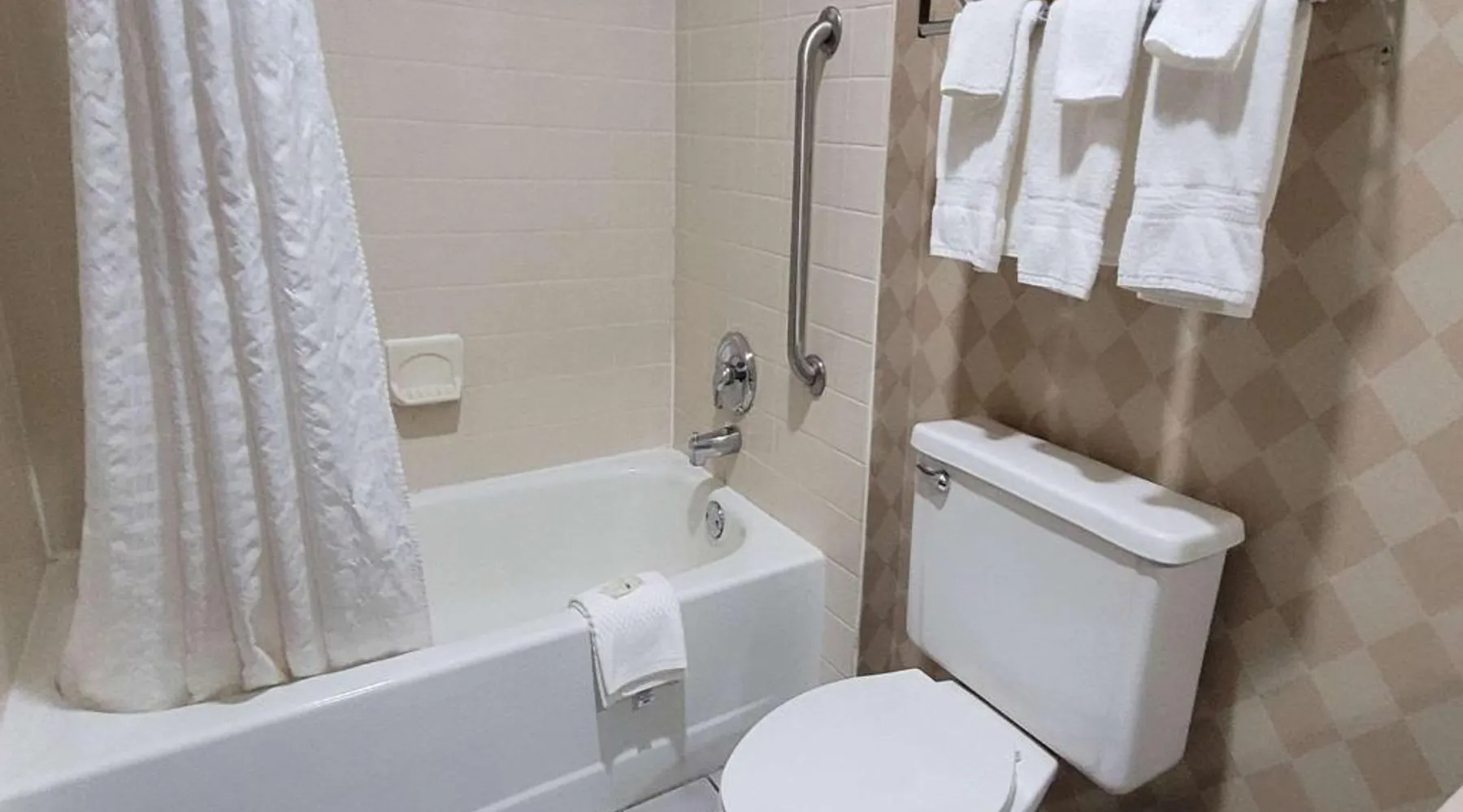 Comfortable Accommodations: Quality Inn & Suites Columbia I-70 in Columbia offers family rooms with air-conditioning, private bathrooms, and garden or pool views. Each room includes a tea and coffee maker, work desk, and free toiletries. Leisure Facilities: Guests can relax on the sun terrace or swim in the seasonal outdoor pool. The hotel provides free WiFi, a fitness room, and outdoor seating areas. Additional amenities include a lounge, minimarket, and barbecue facilities. Convenient Location: Located 12 mi from Columbia Regional Airport and 5 mi from Faurot Field, the hotel offers easy access to local attractions. Guests appreciate the attentive staff and comfortable rooms. A microwave, fridge and coffee maker are provided in this room. The bathroom is equipped with a hairdryer.