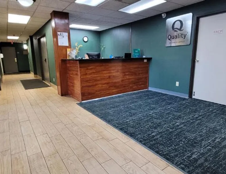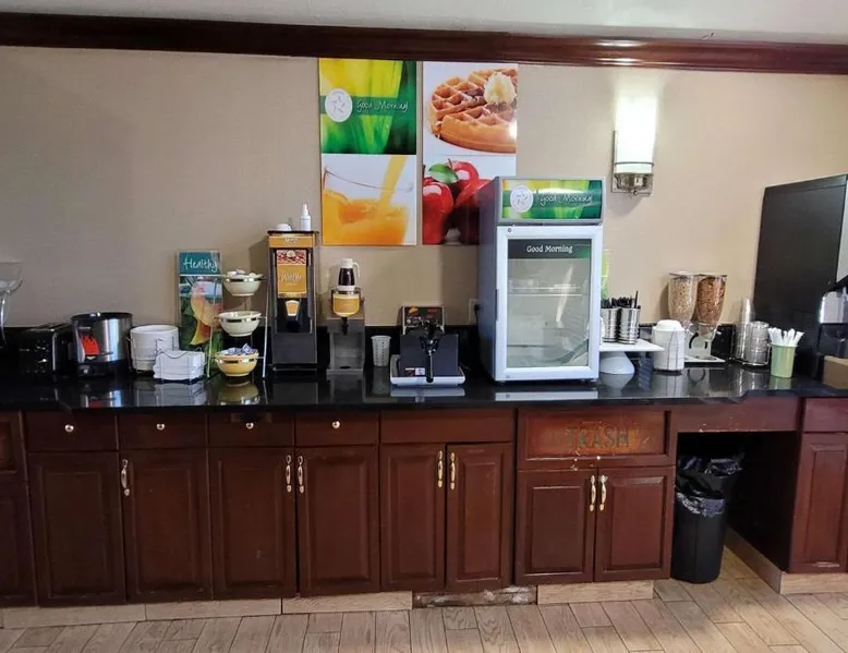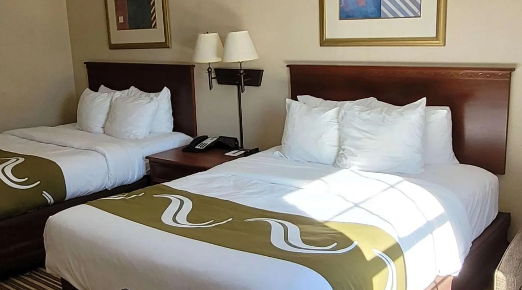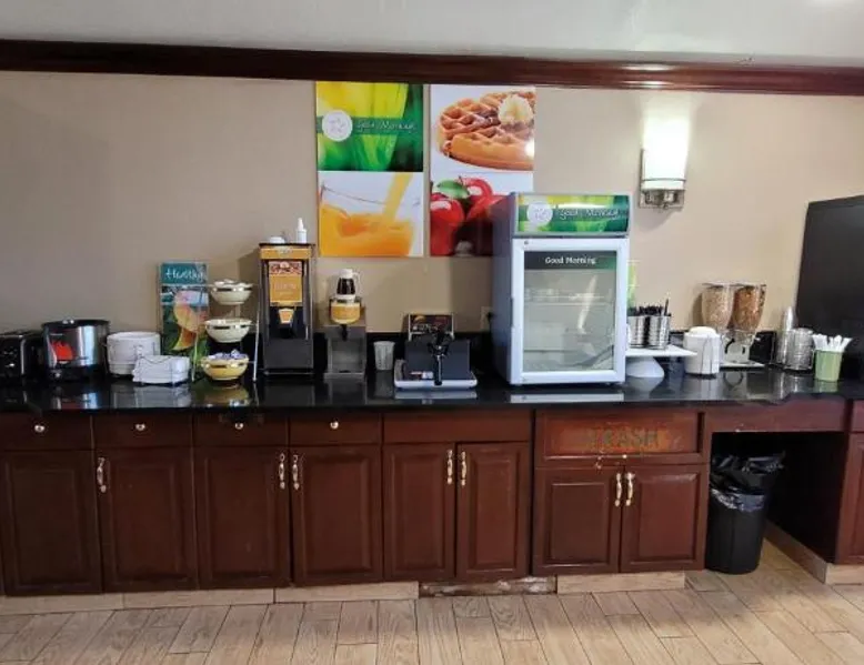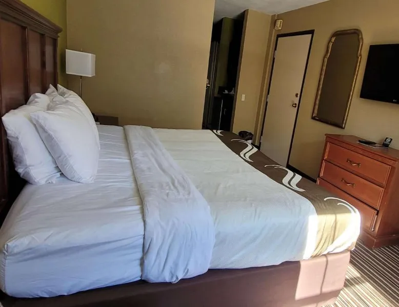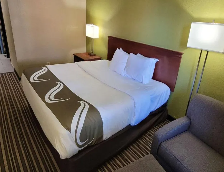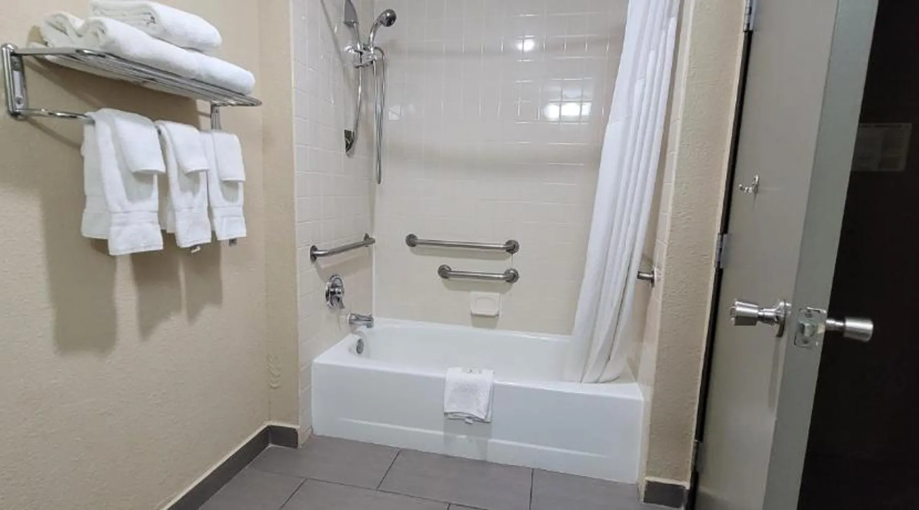 Comfortable Accommodations: Quality Inn & Suites Columbia I-70 in Columbia offers family rooms with air-conditioning, private bathrooms, and garden or pool views. Each room includes a tea and coffee maker, work desk, and free toiletries. Leisure Facilities: Guests can relax on the sun terrace or swim in the seasonal outdoor pool. The hotel provides free WiFi, a fitness room, and outdoor seating areas. Additional amenities include a lounge, minimarket, and barbecue facilities. Convenient Location: Located 12 mi from Columbia Regional Airport and 5 mi from Faurot Field, the hotel offers easy access to local attractions. Guests appreciate the attentive staff and comfortable rooms. A microwave, fridge and coffee maker are provided in this room. The bathroom is equipped with a hairdryer.
