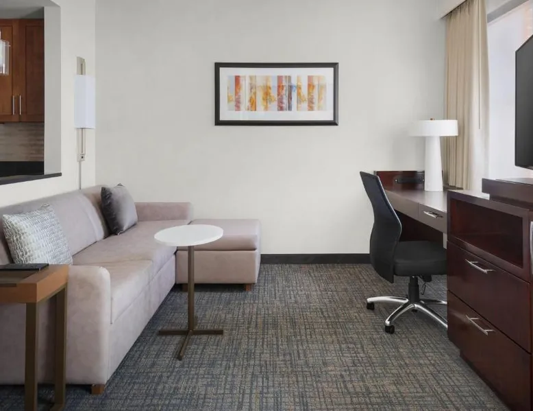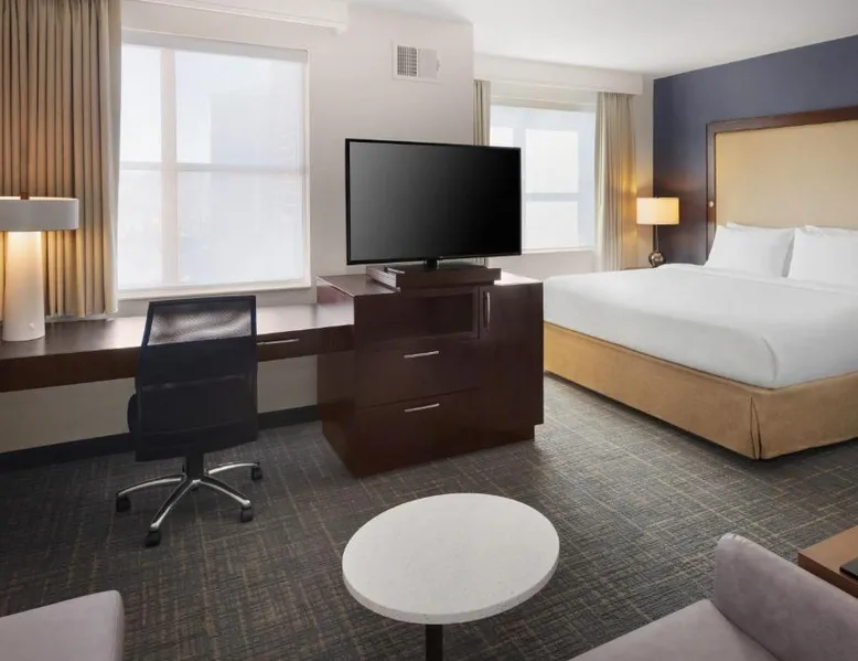 Just off Interstate 66 and a 5 minute drive from downtown Fairfax, this hotel features an outdoor pool. Free Wi-Fi and a daily breakfast buffet are provided. A social is also held in the evenings on select days. A flat-screen TV, a kitchenette and an iPod docking station are found in each modern room at Residence Inn by Marriott Fairfax City. A work desk and coffee-making facilities are included. Guests of the Fairfax City Residence Inn can enjoy the on-site fitness room. A business center and a laundromat are also available. Van Dyck Park is 2 miles from the hotel. The National Firearms Museum is less than a 10 minute drive away. This suite features a separate living area and 2 flat-screen TVs.