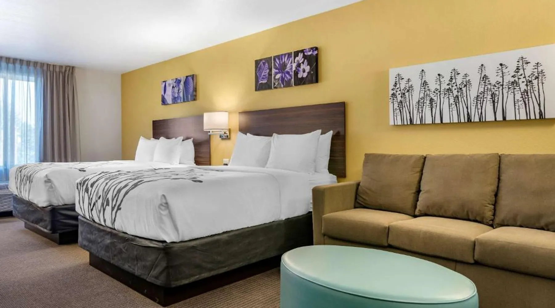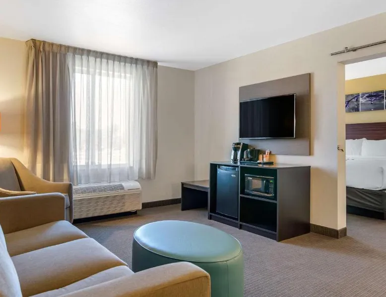 Comfortable Accommodations: Sleep Inn & Suites Great Falls Airport in Great Falls offers clean, comfortable rooms with free WiFi, air-conditioning, and modern amenities. Guests appreciate the room cleanliness and comfort. Leisure Facilities: The hotel features a saltwater swimming pool, indoor pool, fitness center, terrace, and hot tub. Additional amenities include a minimarket, business area, and family rooms. Convenient Location: Located 1.2 mi from Great Falls International Airport, the property provides free on-site private parking. A continental breakfast is served daily. Exceptional Service: Highly rated for its attentive staff and excellent service support, the hotel ensures a pleasant stay for all guests. The quadruple room is furnished with a desk and a seating area and features a tea and coffee maker and heating. The unit has 1 bed.