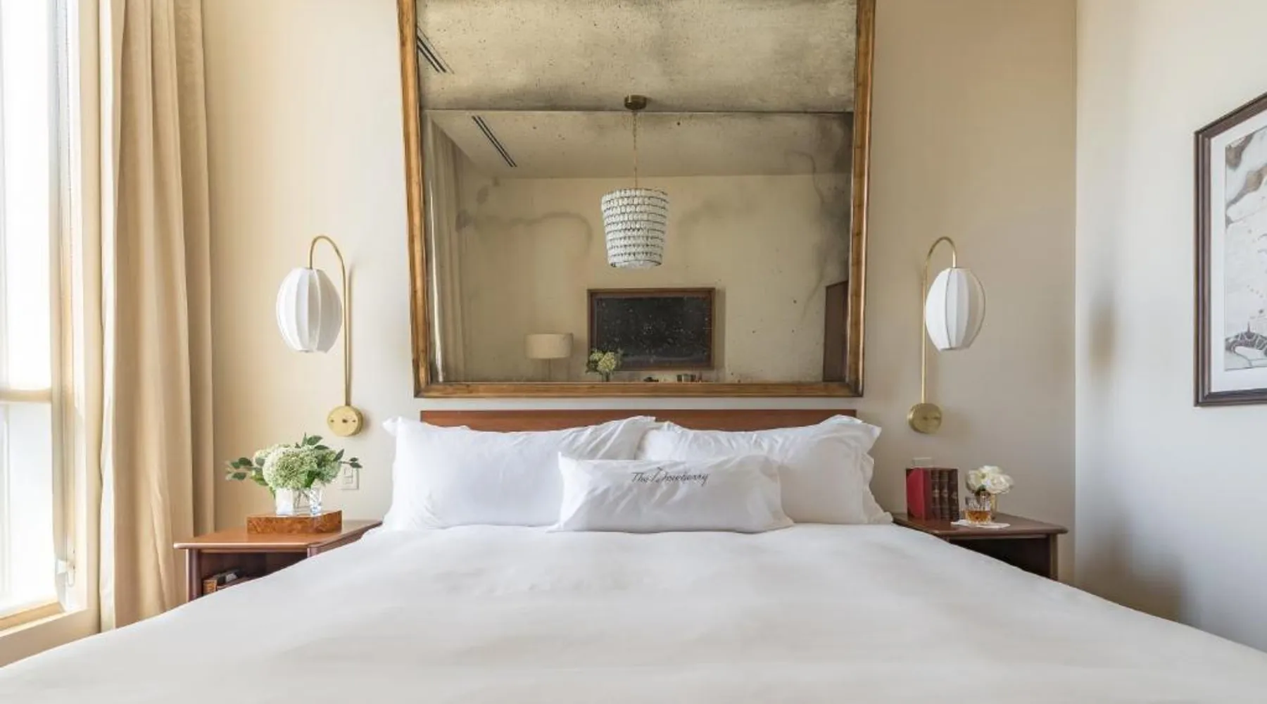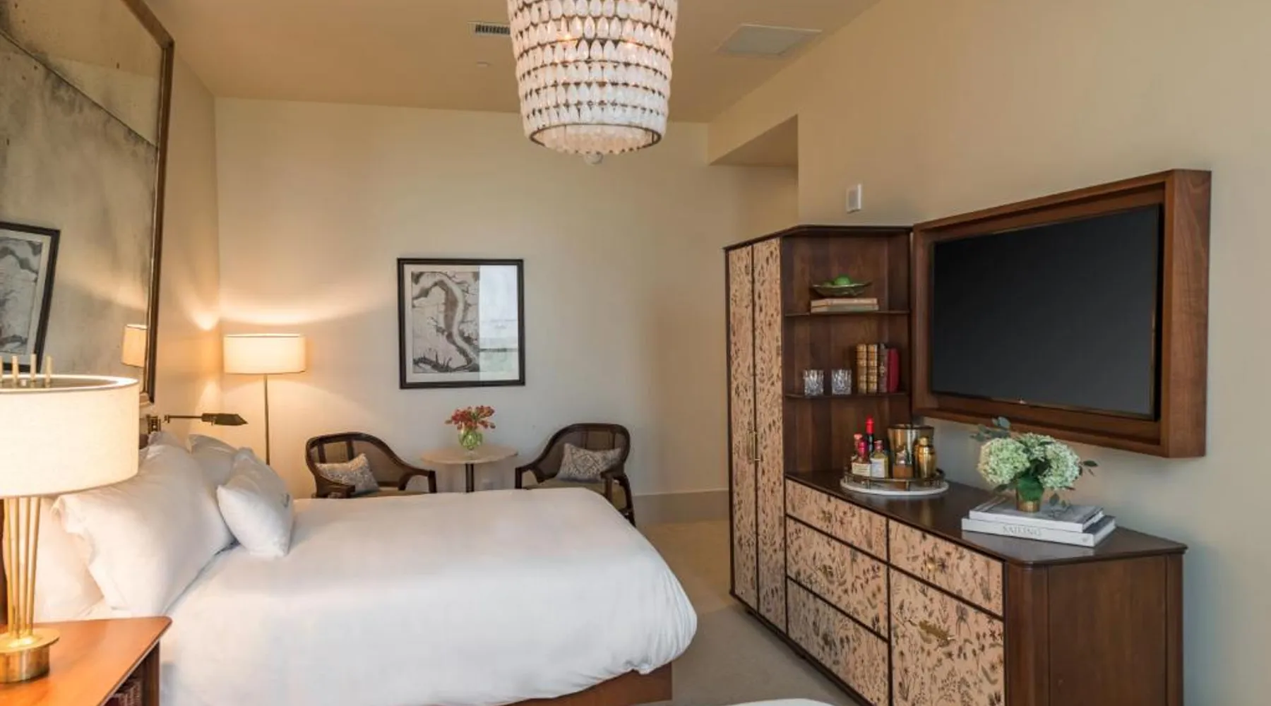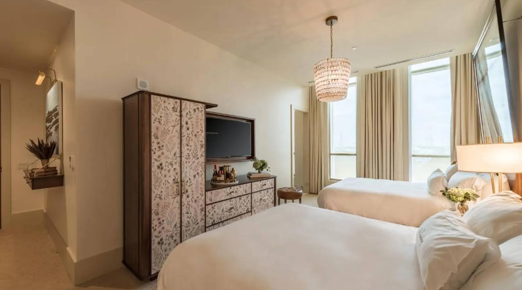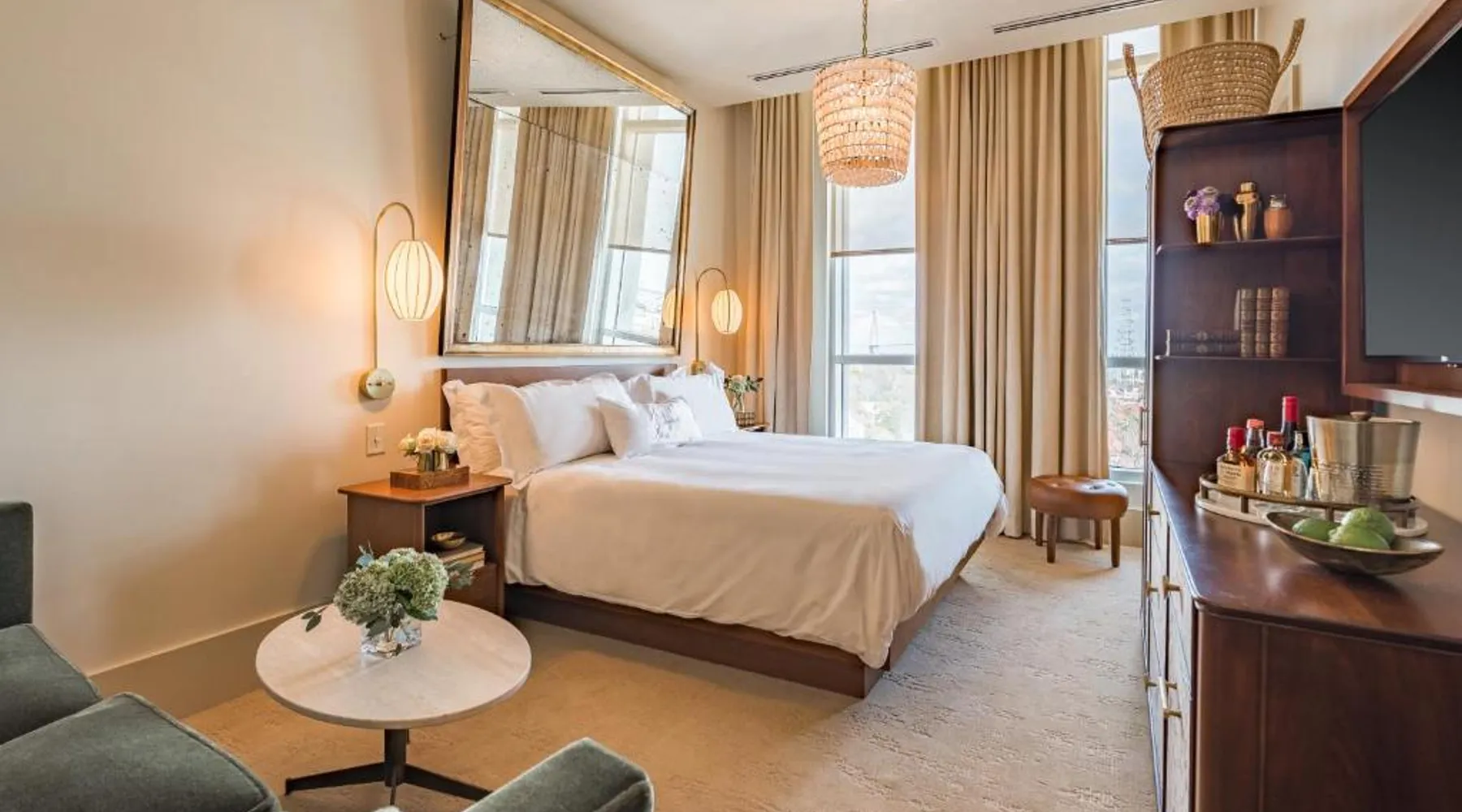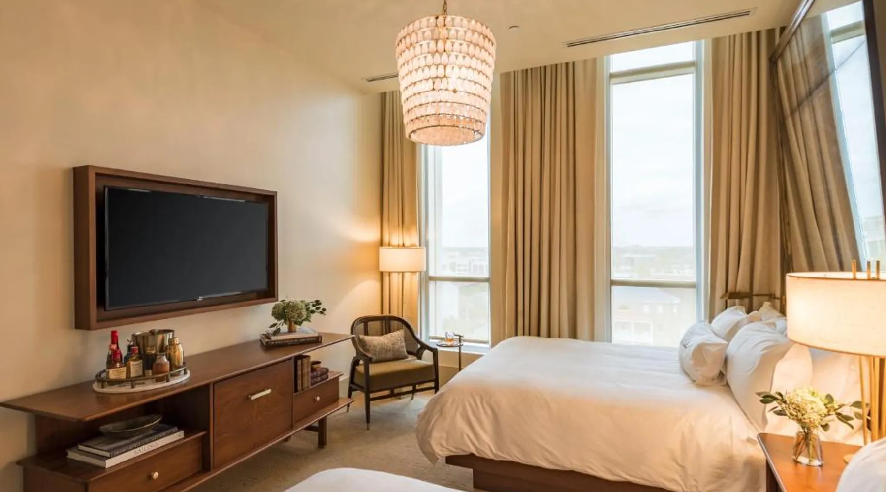 The historic Dewberry Charleston is a mid-20th century boutique hotel is located in the in the Mendell Rivers Federal building and features an American Southern brasserie-style restaurant and a craft cocktail bar. Spa at the Dewberry, a fitness center, and library are available as well as the Fieldshop from Garden & Gun on-site shop. The 2283 feet of indoor and outdoor event space includes a glass-enclosed rooftop venue. Floor-to-ceiling windows, flat-screen TV, and mini-bar are standard in every room at the Dewberry Charleston. Extras include an en suite with Vermont marble accents, free toiletries, and slippers. The Charleston Museum, American Theater, and Charleston Farmers Market are 3 minutes’ walk from the Charleston Dewberry hotel. The South Carolina Aquarium is 0.6 mi away. Overlooking historic Marion Square Park, this suite offers a separate living area, handcrafted bed frame, custom armoire, and marble-tiled bathroom with 2 sinks.