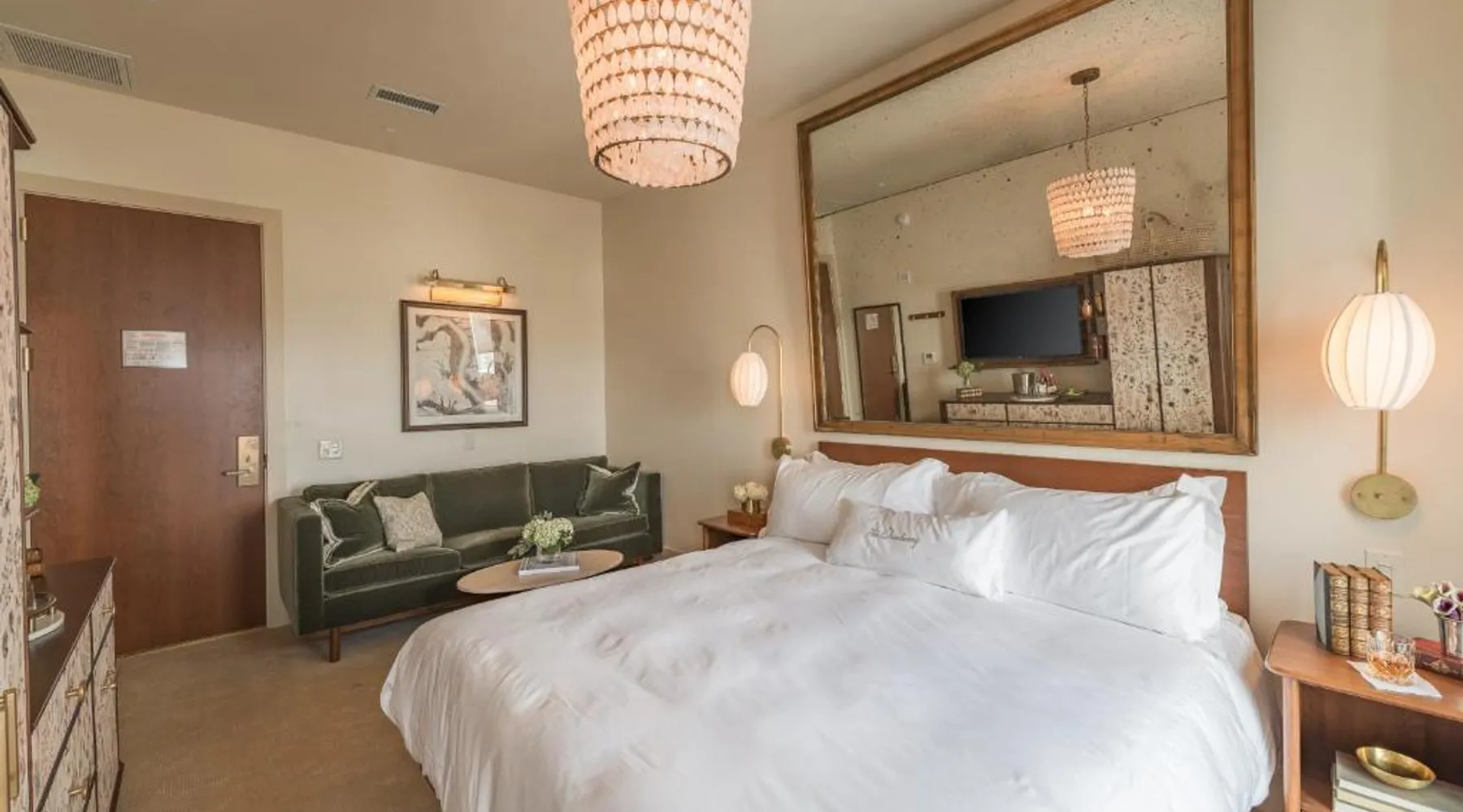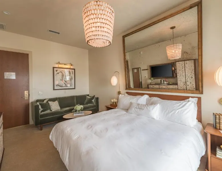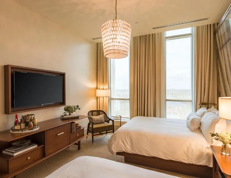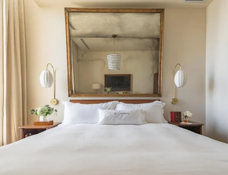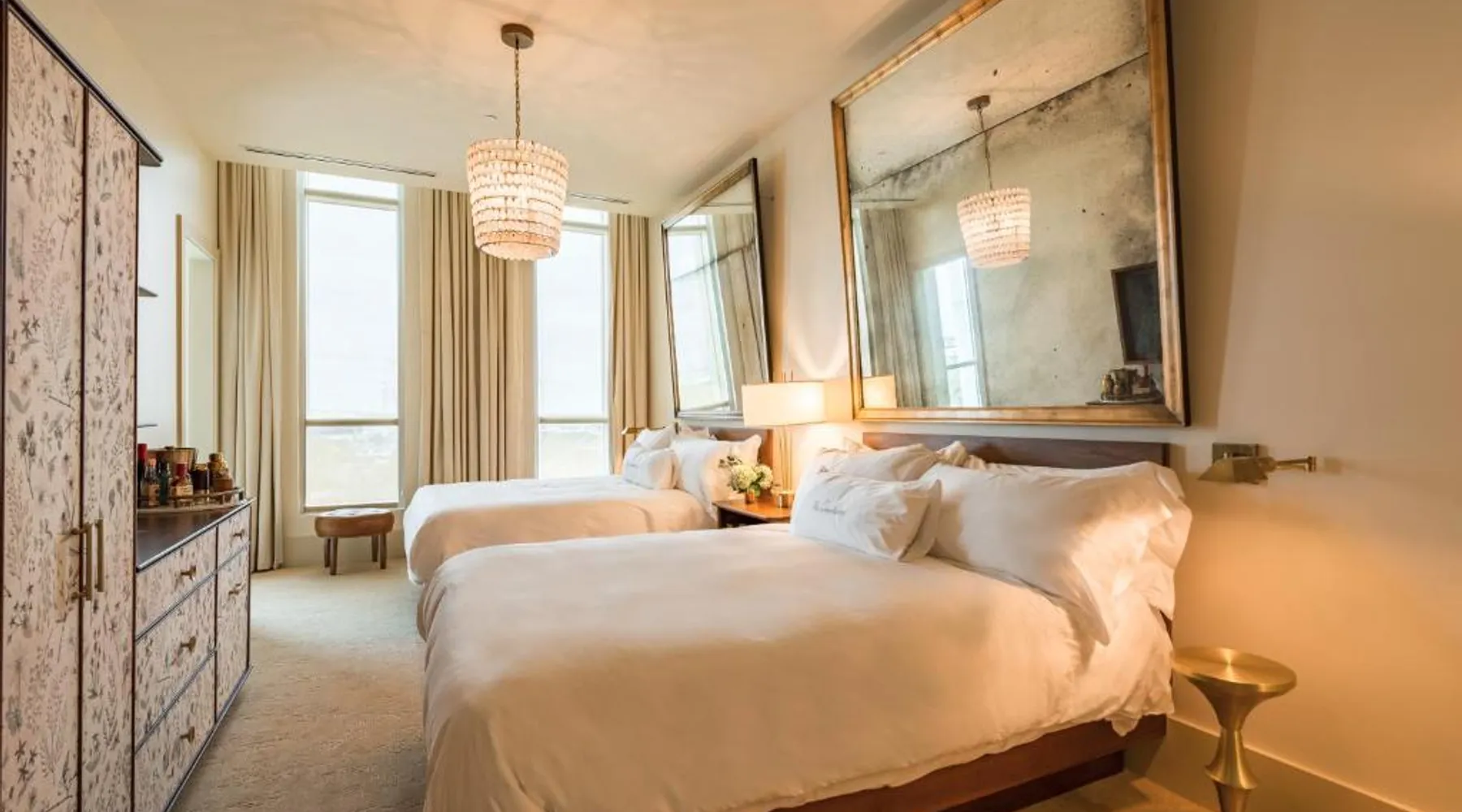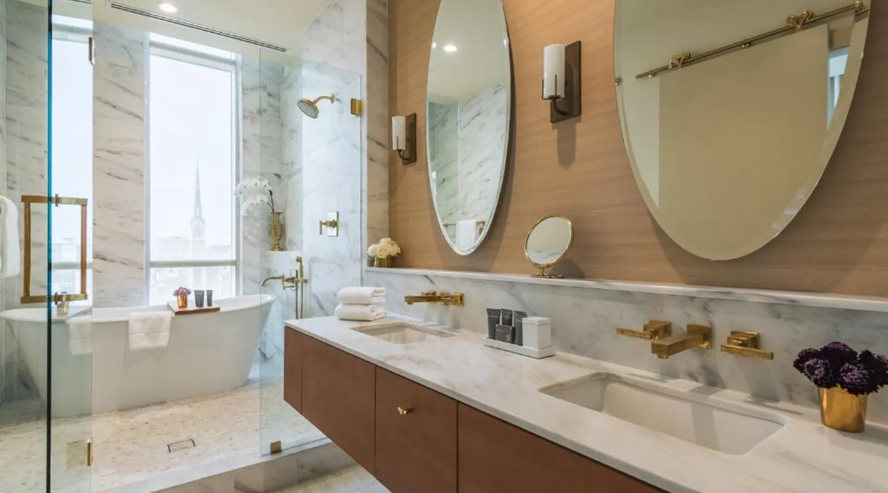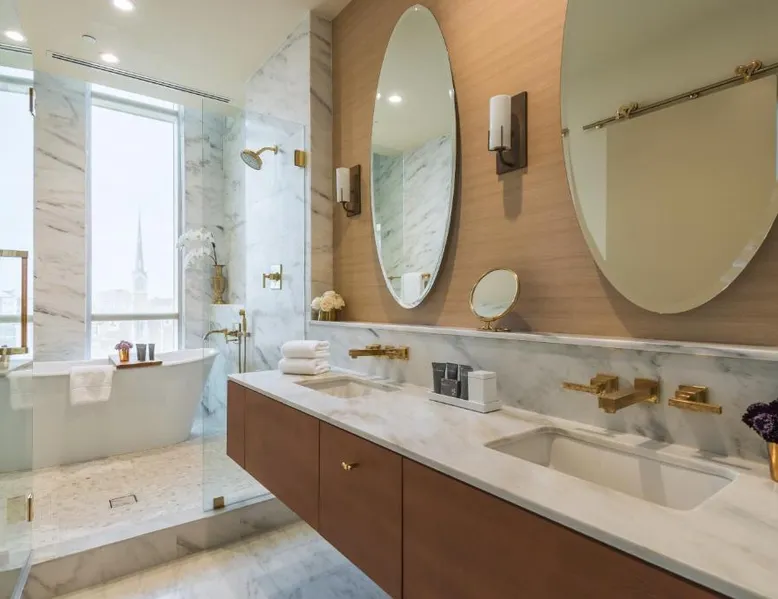 The historic Dewberry Charleston is a mid-20th century boutique hotel is located in the in the Mendell Rivers Federal building and features an American Southern brasserie-style restaurant and a craft cocktail bar. Spa at the Dewberry, a fitness center, and library are available as well as the Fieldshop from Garden & Gun on-site shop. The 2283 feet of indoor and outdoor event space includes a glass-enclosed rooftop venue. Floor-to-ceiling windows, flat-screen TV, and mini-bar are standard in every room at the Dewberry Charleston. Extras include an en suite with Vermont marble accents, free toiletries, and slippers. The Charleston Museum, American Theater, and Charleston Farmers Market are 3 minutes’ walk from the Charleston Dewberry hotel. The South Carolina Aquarium is 0.6 mi away. Overlooking historic Marion Square Park, this suite offers a separate living area, handcrafted bed frame, custom armoire, and marble-tiled bathroom with 2 sinks.