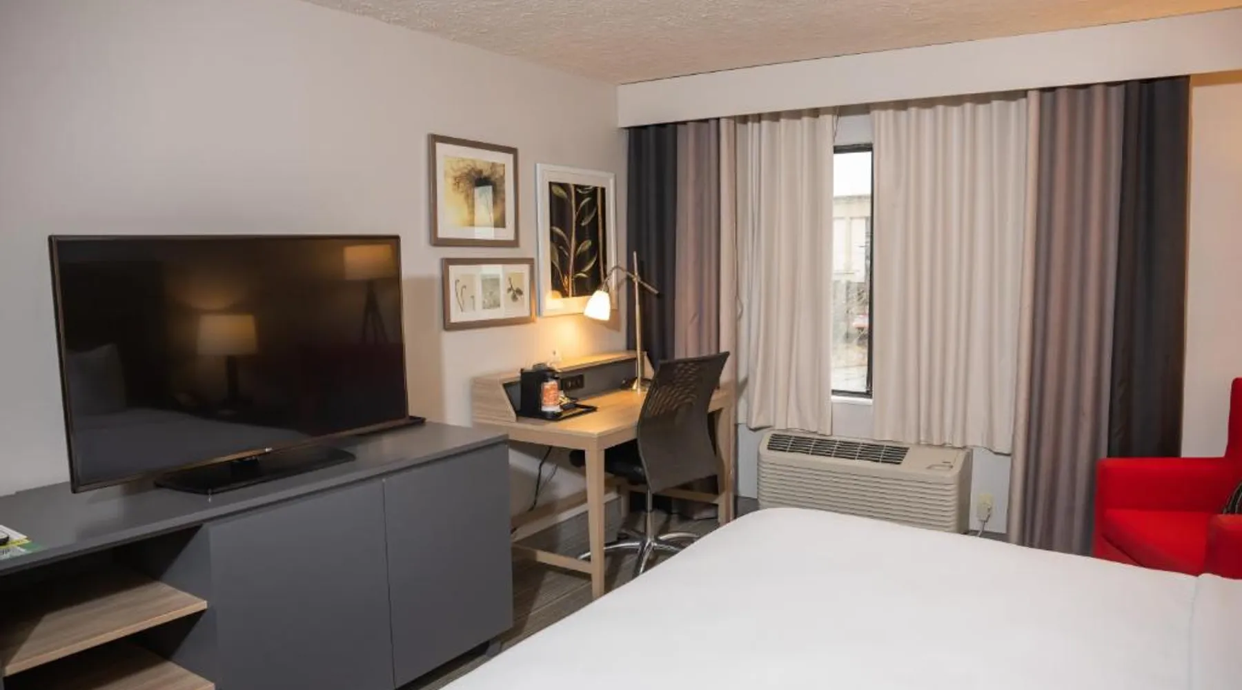 Comfortable Accommodations: Country Inn & Suites by Radisson in Erie offers family rooms with private bathrooms, refrigerators, and TVs. Each room includes a hairdryer and shower facilities. Exceptional Facilities: Guests enjoy a fitness center, indoor swimming pool, and free WiFi. Additional amenities include a hot tub, outdoor fireplace, and outdoor seating area. Convenient Services: The hotel provides a shuttle service, lounge, 24-hour front desk, and free on-site private parking. Breakfast options include continental, American, buffet, and vegetarian. Local Attractions: Erie International Airport is 7.5 mi away. Nearby attractions include Erie Zoo (4.3 mi), Presque Isle Downs and Casino (3.7 mi), and Erie Art Museum (6.8 mi). The spacious double room features a private bathroom equipped with a bath and a shower. This double room offers a TV with cable channels. The unit offers 2 beds.