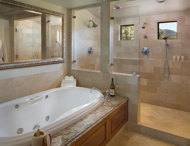 Nestled in the heart of Napa Valley, Napa Valley Lodge offers on-site spa treatments and a continental Champagne breakfast. A heated outdoor pool and hot tub are featured. Each luxurious room includes free WiFi. A flat-screen TV with cable is included in each spacious room at Napa Valley Lodge. All rooms boast tea and coffee-making facilities, and a mini-bar. A bathrobe and slippers are provided. A deluxe continental breakfast featuring pastries, fresh fruit and cheese is served daily. Bagels, yogurt and waffles are available. Tea, juice, and coffee is included. Afternoon tea and biscuits are served in lounge. Guests can relax on the outdoor terrace complete with garden views and lounge chairs. Boccie ball offers entertainment. Robert Mondavi and Domaine Chandon wineries are 3.5 miles from this hotel. Restaurants, shops and hot air balloon rides are available in Yountville city center 15 minutes’ walk away. This room offers a fireplace, a private balcony, a flat screen TV with cable channels, a deluxe coffee machine, a desk, complimentary bottled water, ironing facilities, an alarm clock, and an private bathroom with a walk-in shower, two robes, complimentary slippers, and a hairdryer.