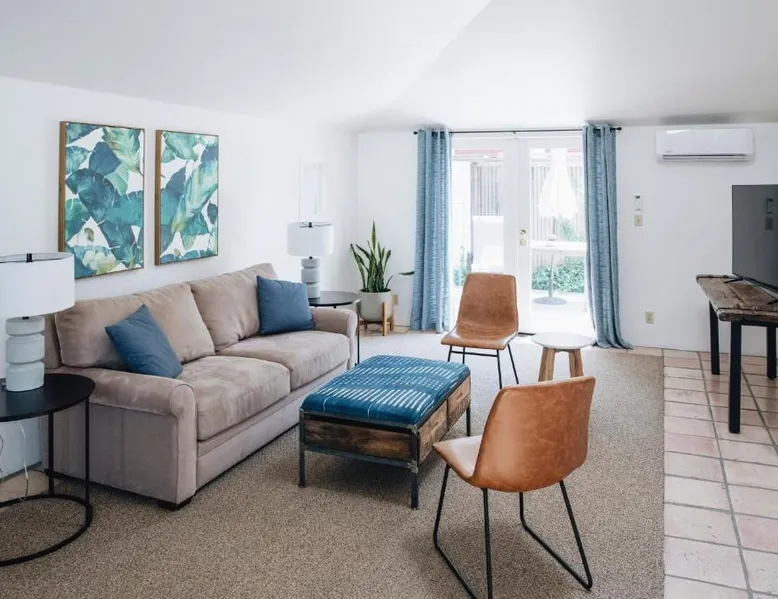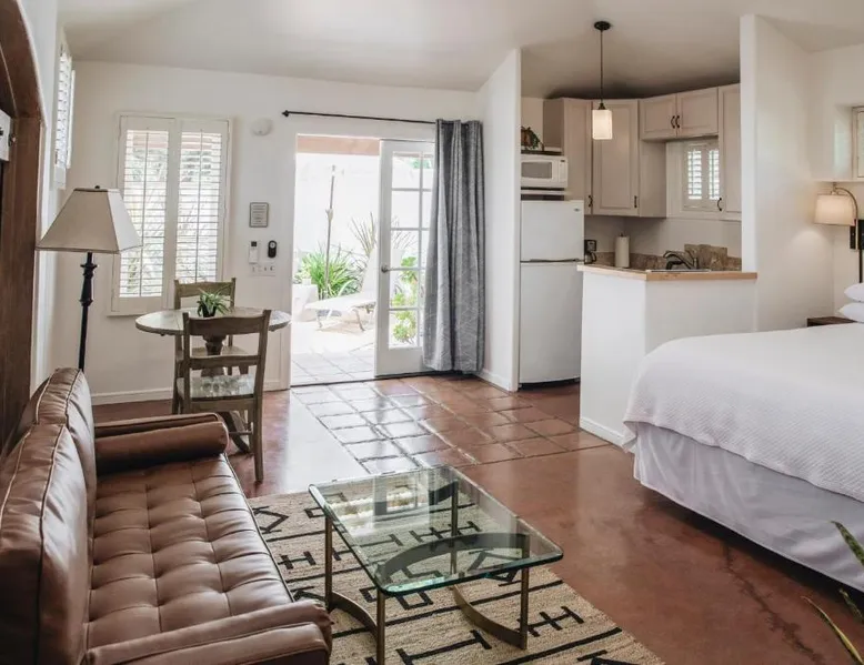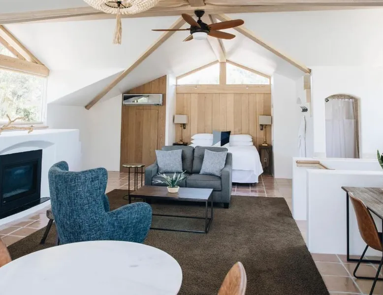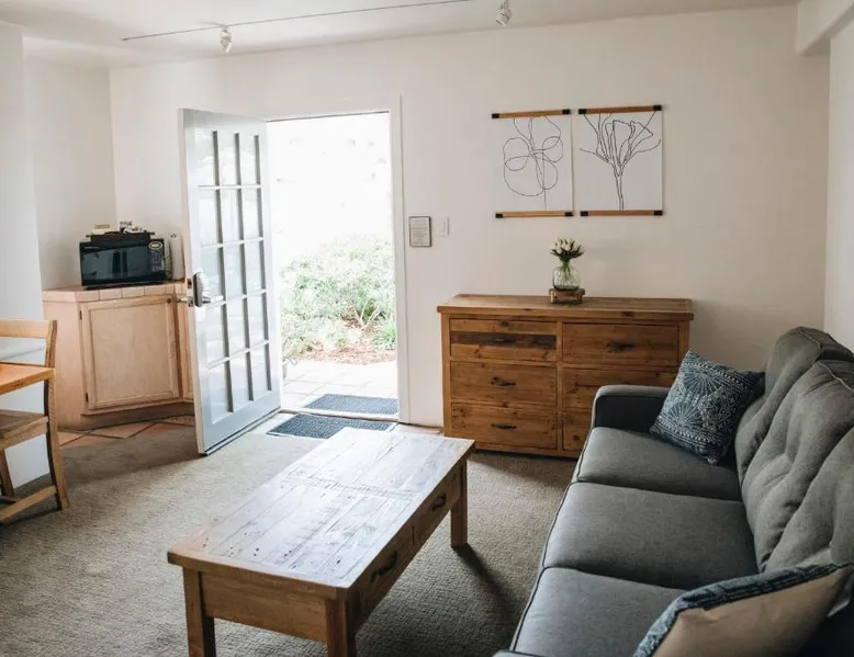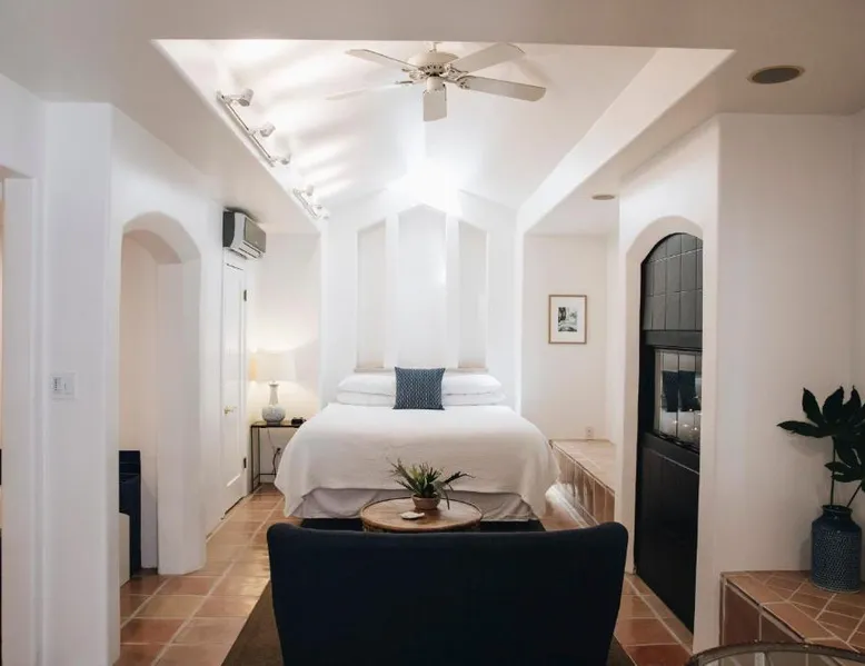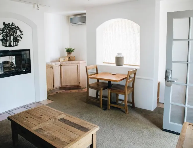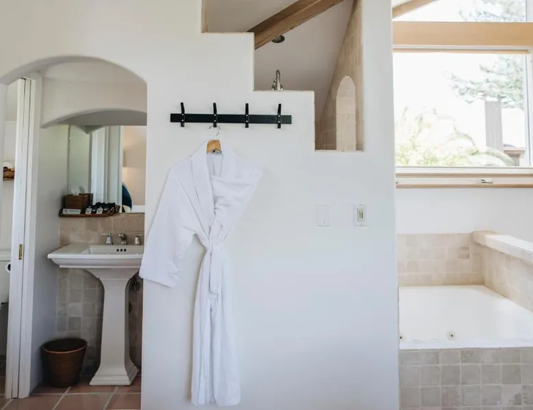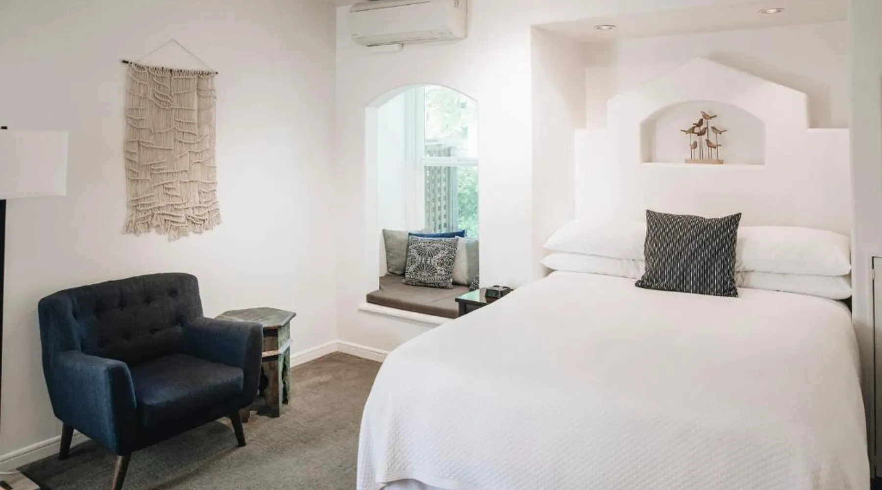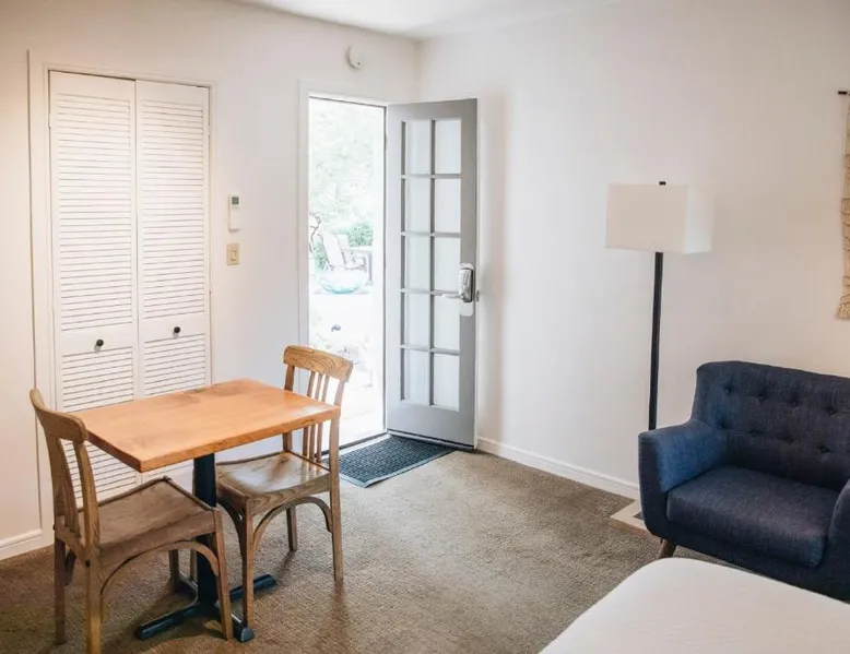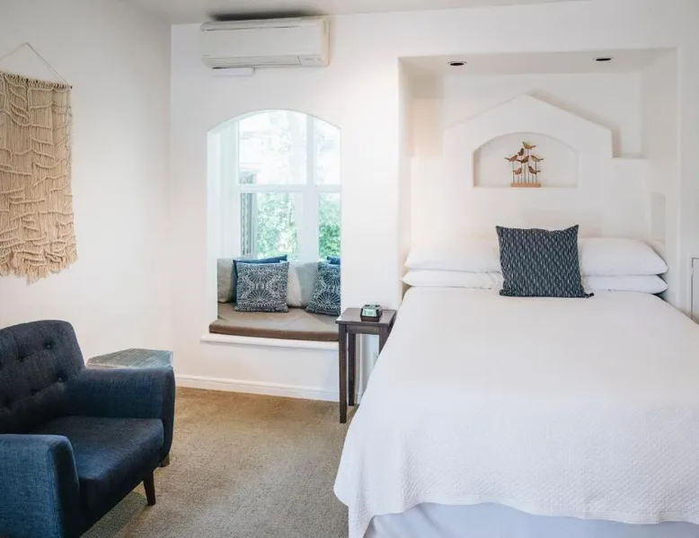 Just a five-minute walk from the historic Sonoma Plaza, Cottage Inn & Spa offers a peaceful and luxurious escape in the heart of Wine Country. This charming inn is set within a serene courtyard featuring graceful fountains, creating an ideal setting for rest and relaxation. Each air-conditioned room features a private entrance and is thoughtfully appointed with a microwave, mini refrigerator, and coffee-making facilities for your comfort and convenience. Unwind at the on-site spa with a curated selection of massage treatments, including a deep tissue massage (firm pressure), a wellness massage (medium pressure), and a traditional Swedish massage (light pressure). Whether you're seeking a romantic getaway or a quiet personal retreat, Cottage Inn & Spa offers a welcoming and restorative atmosphere. Guests enjoy complimentary WiFi throughout the property, and the world-renowned Napa Valley is just a scenic 20-minute drive away. This intimate 250 sq. ft. guestroom features a queen-size bed and a cozy window seat. The bathroom includes a walk-in shower. For your convenience, luxurious robes, a hairdryer, and a garment steamer are provided.