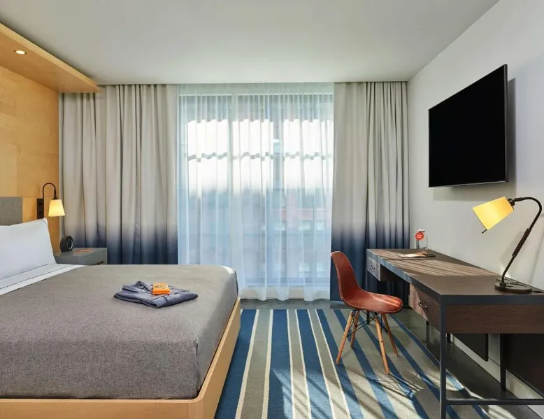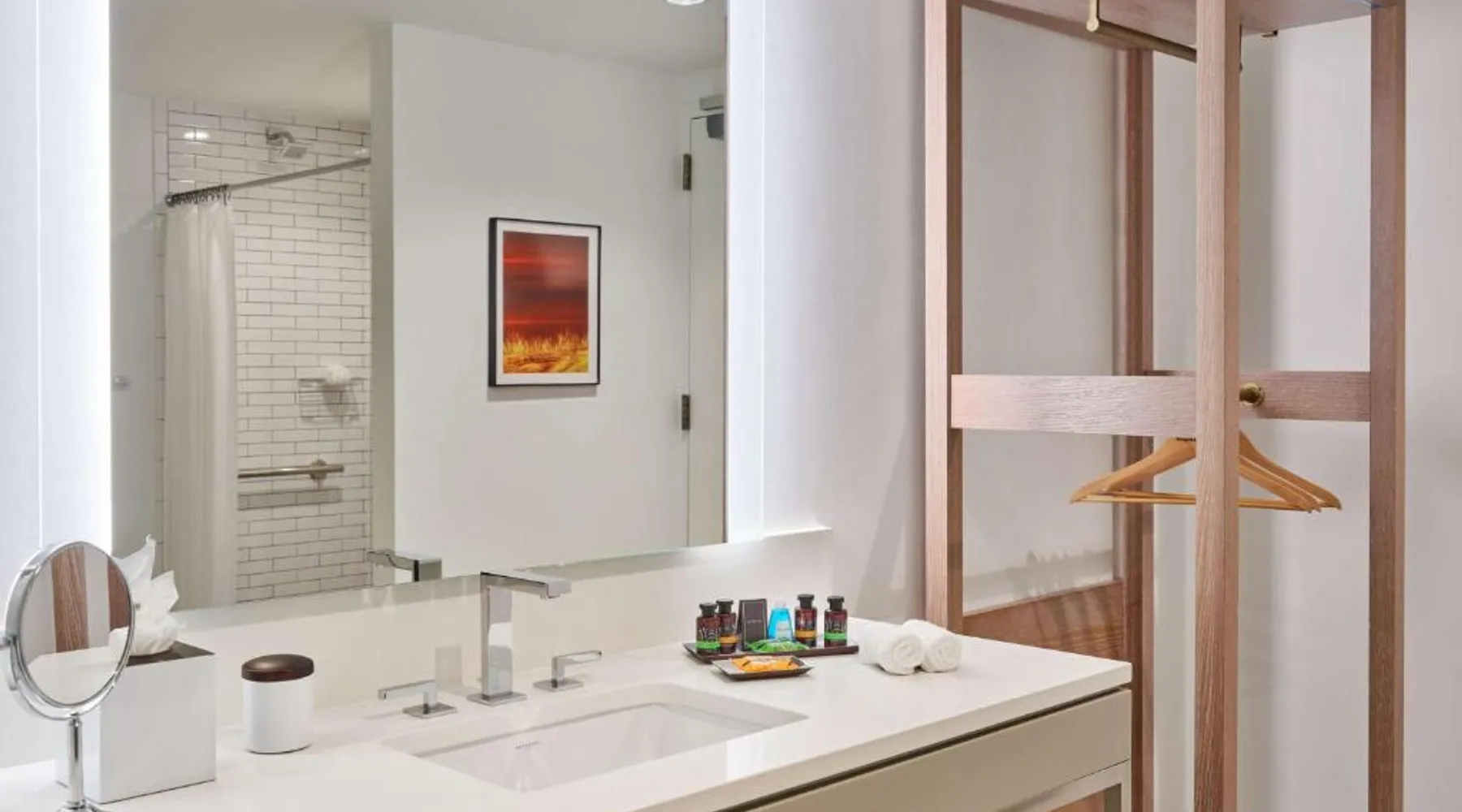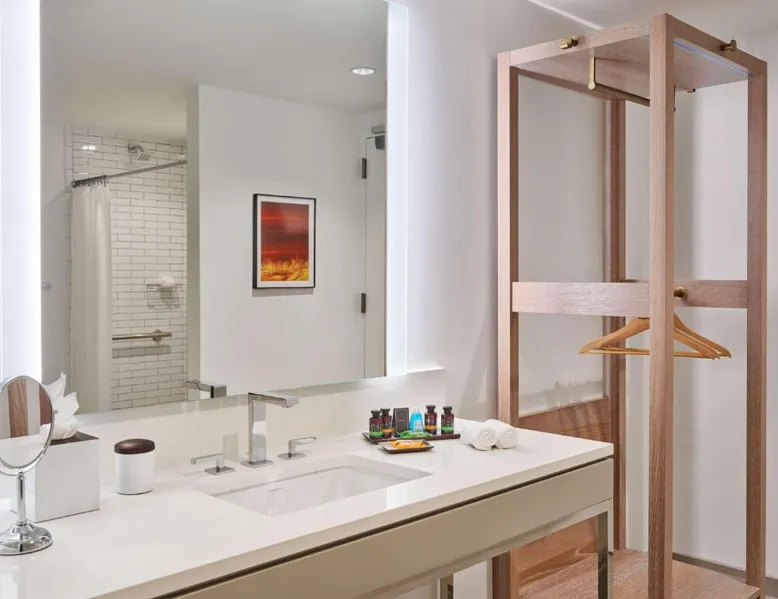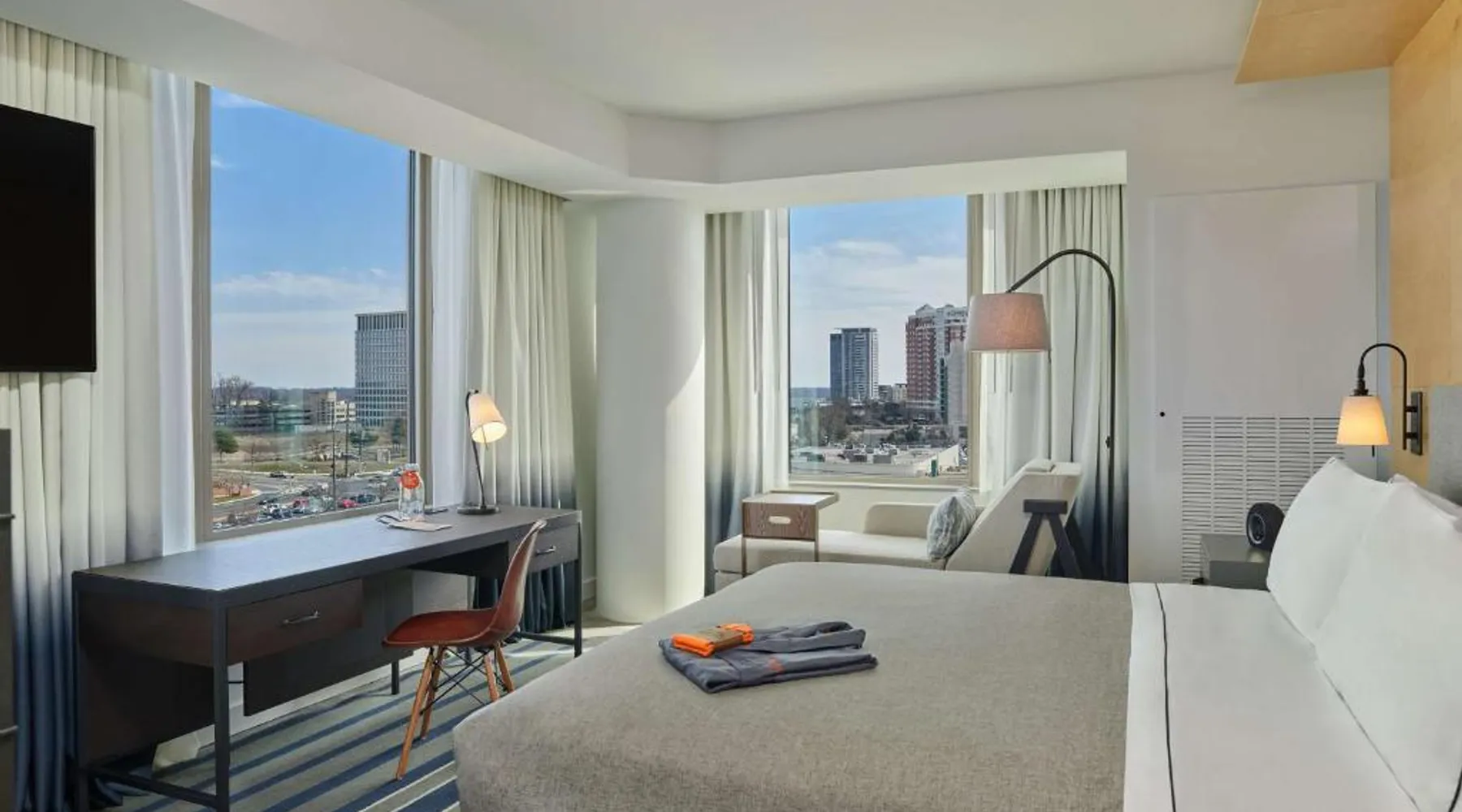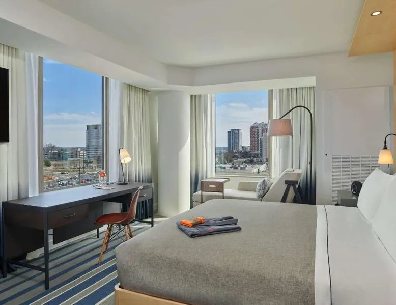 Comfortable Accommodations: Canopy By Hilton Washington DC Bethesda North in North Bethesda offers family rooms with air-conditioning, free WiFi, and modern amenities. Each room includes a refrigerator, tea and coffee maker, and a work desk. Dining and Leisure: The modern, family-friendly restaurant serves American and seafood cuisines with vegetarian, vegan, and gluten-free options. Guests can enjoy brunch, dinner, and cocktails in a relaxed setting. Additional facilities include a fitness center, sun terrace, and free bicycles. Convenient Location: Located 17 mi from Ronald Reagan Washington National Airport, the hotel is near attractions such as the Phillips Collection (11 mi) and the White House (12 mi). An ice-skating rink is also nearby. Highly rated for its convenient location, room comfort, and attentive staff. The spacious double room offers air conditioning, a tea and coffee maker, a seating area, a safe deposit box, as well as a flat-screen TV with cable channels. The unit offers 1 bed.
