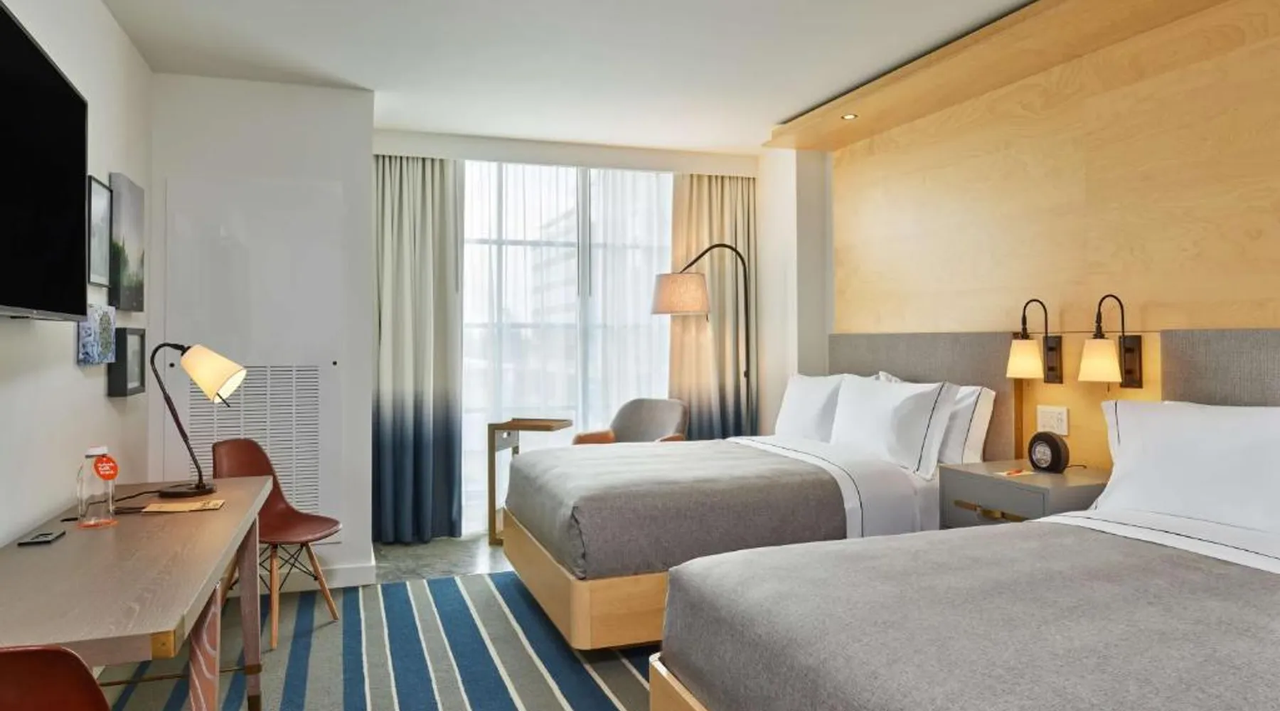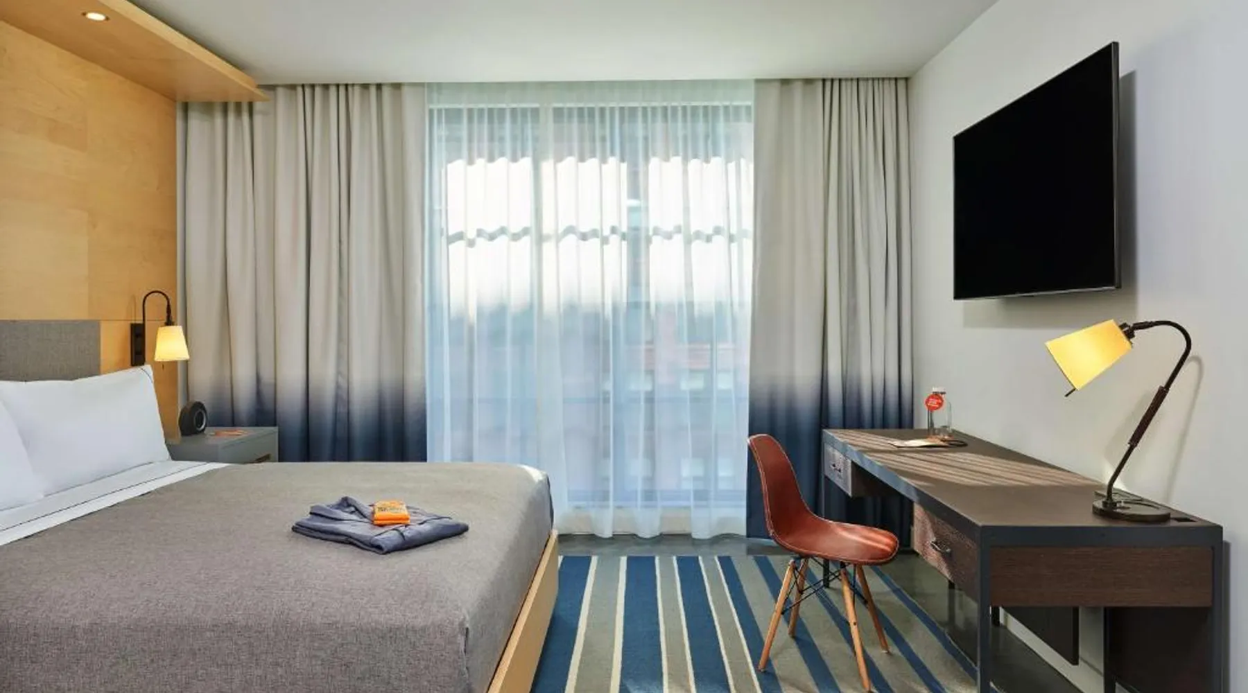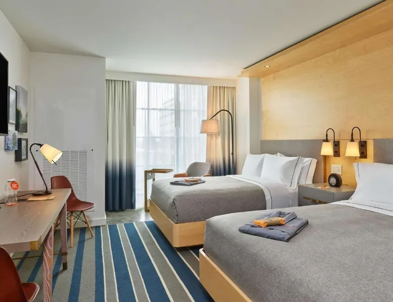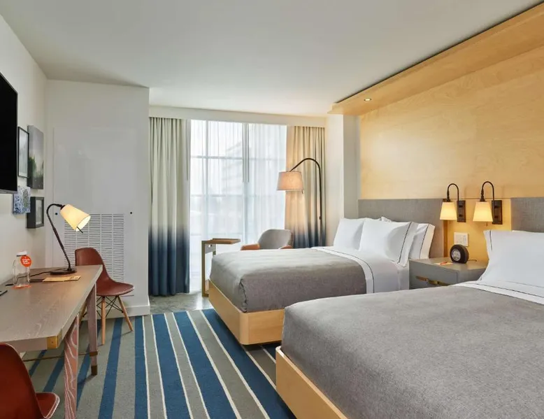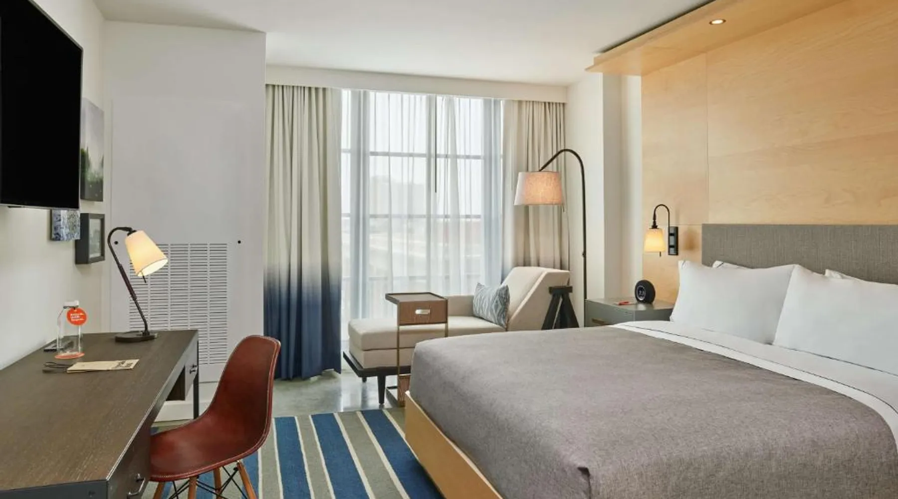 Comfortable Accommodations: Canopy By Hilton Washington DC Bethesda North in North Bethesda offers family rooms with air-conditioning, free WiFi, and modern amenities. Each room includes a refrigerator, tea and coffee maker, and a work desk. Dining and Leisure: The modern, family-friendly restaurant serves American and seafood cuisines with vegetarian, vegan, and gluten-free options. Guests can enjoy brunch, dinner, and cocktails in a relaxed setting. Additional facilities include a fitness center, sun terrace, and free bicycles. Convenient Location: Located 17 mi from Ronald Reagan Washington National Airport, the hotel is near attractions such as the Phillips Collection (11 mi) and the White House (12 mi). An ice-skating rink is also nearby. Highly rated for its convenient location, room comfort, and attentive staff. The spacious double room offers air conditioning, a tea and coffee maker, a seating area, a safe deposit box, as well as a flat-screen TV with cable channels. The unit offers 1 bed.