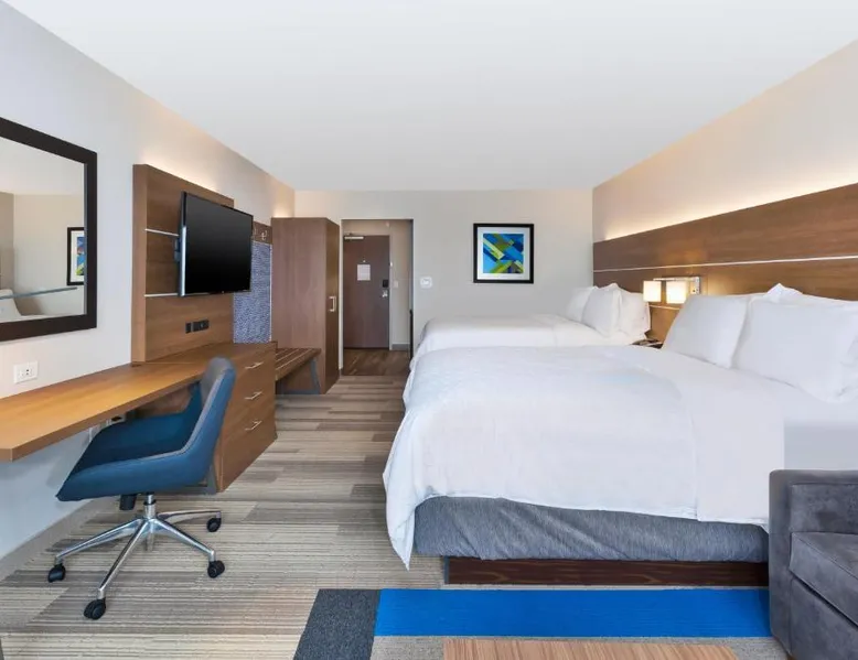 Comfortable Accommodations: Holiday Inn Express- Eau Claire West I-94 by IHG in Eau Claire offers clean rooms with modern amenities. Guests enjoy free WiFi, a fitness center, sun terrace, and indoor swimming pool. Convenient Facilities: The hotel features a lounge, outdoor fireplace, fitness room, hot tub, 24-hour front desk, minimarket, housekeeping, child-friendly buffet, outdoor seating, picnic area, barbecue facilities, and free on-site private parking. Prime Location: Located 8.1 mi from Chippewa Valley Regional Airport, the property is near University Of Wisconsin-Eau Claire (2.5 mi), Colfax Railroad Museum (24 mi), and University Of Wisconsin-Stout (27 mi). An ice-skating rink is in the surroundings. Guest Satisfaction: Guests highly rate the room cleanliness, breakfast provided by the property, and the attentive staff and service support. The unit has 2 beds.