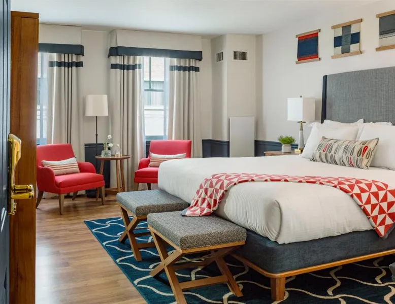 Offering a restaurant and a fitness center, Portland Harbor Hotel is located near the Portland Waterfront. Free WiFi access is available in this hotel. Old Orchard Beach is just 9.9 mi away. A flat-screen TVs are included in every guestroom at the Harbor Hotel of Portland. A refrigerator is availablr. Select rooms include a sofa, spa bath and a view. Other facilities offered at the property include meeting facilities and luggage storage. A private garage with valet parking is also available. The hotel is 1312 feet from Wadsworth Longfellow House, 1640 feet from Portland Downtown Historic District and 1969 feet from Victoria Mansion. Portland International Jetport Airport is 2.5 mi away. The spacious double room features air conditioning, a wardrobe, as well as a private bathroom boasting a walk-in shower and a bath. This double room has parquet floors, heating, a flat-screen TV with cable channels and a patio. The unit has 1 bed.