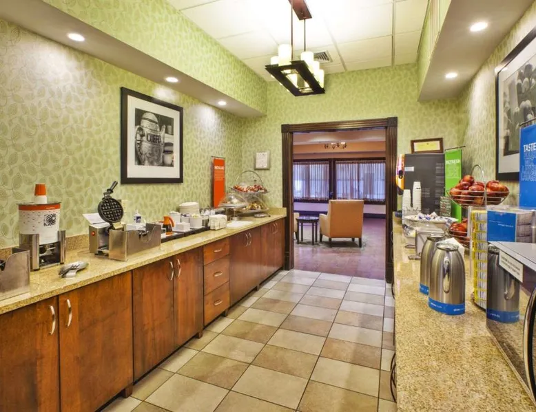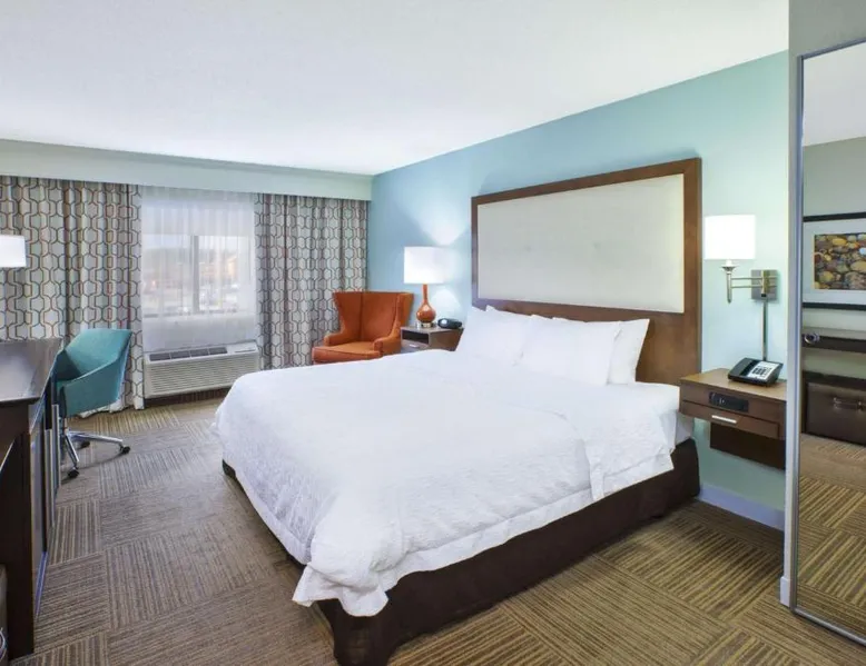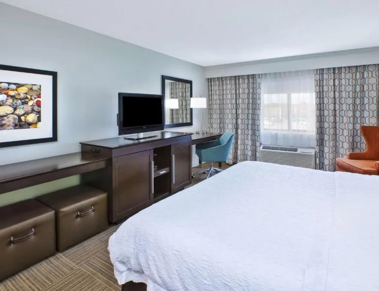 Comfortable Accommodations: Hampton Inn Gaylord in Gaylord offers family rooms with free WiFi, air-conditioning, and modern amenities. Each room includes a tea and coffee maker, hairdryer, free toiletries, shower, and TV. Leisure Facilities: Guests can enjoy a fitness center, indoor swimming pool, and a beautiful garden. Additional facilities include a lounge, fitness room, elevator, 24-hour front desk, electric vehicle charging station, and outdoor seating area. Dining Options: A continental buffet breakfast is served daily, featuring warm dishes, fresh pastries, and juice. Special diet menus are available, and daily housekeeping ensures room cleanliness. Location and Attractions: Located 50 mi from Pellston Regional Airport and 22 mi from Monument Golf Course, the hotel provides easy access to skiing and cycling activities. Guests appreciate the attentive staff and convenient location. This air conditioned room includes a flat-screen TV with premium channel. desk and coffee maker.
