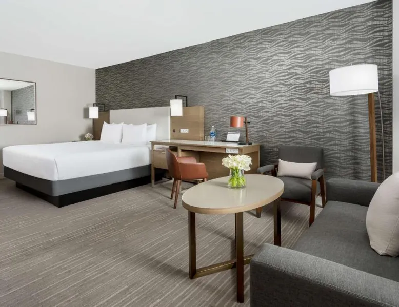 This 12-story atrium hotel is located directly above the Bethesda metro station and the Washington, D.C. city center is 7 miles away. The hotel provides free Wi-Fi and a 24-hour fitness center. A 55-inch HD flat-screen TV, Hyatt Grand Bed, and work desk are included in every contemporary guest room at the Hyatt Regency Bethesda near Washington D.C. They are decorated in light neutral tones. Each room also comes with a refrigerator and a safe. Guests can also enjoy the convenience of a concierge service at the Hyatt Regency Bethesda near Washington D.C. Morton’s the Steakhouse serves dinner, while the Daily Grill offers breakfast, brunch, lunch and dinner. A Starbucks® is featured in the lobby of the property. The National Institutes of Health are 1 mile away. The National Zoo is 13 minutes’ train ride from the hotel. The spacious suite offers air conditioning, a tea and coffee maker, as well as a private bathroom featuring a bath or a shower and a hairdryer. The unit offers 2 beds.