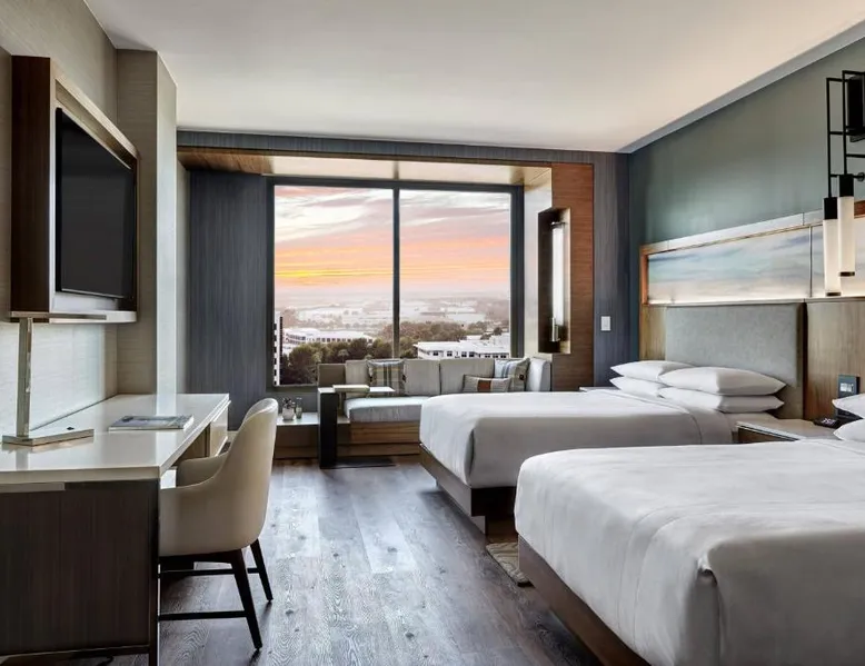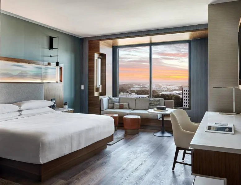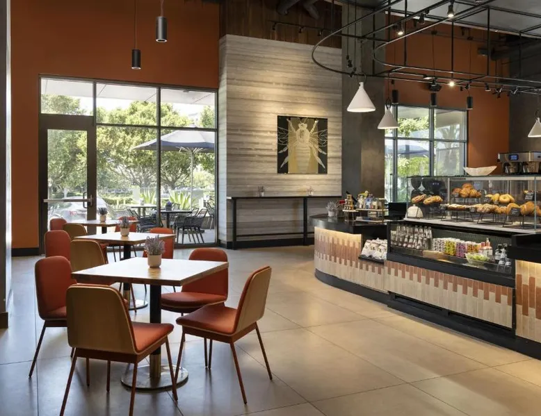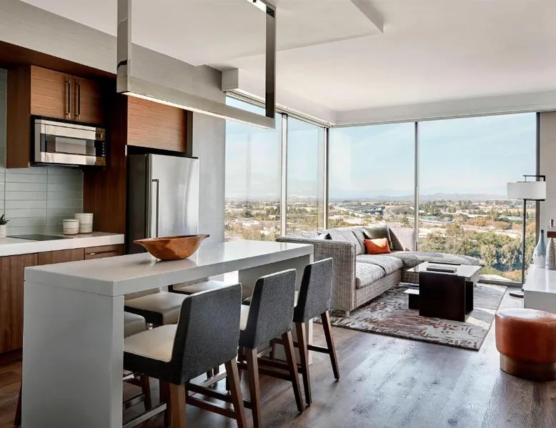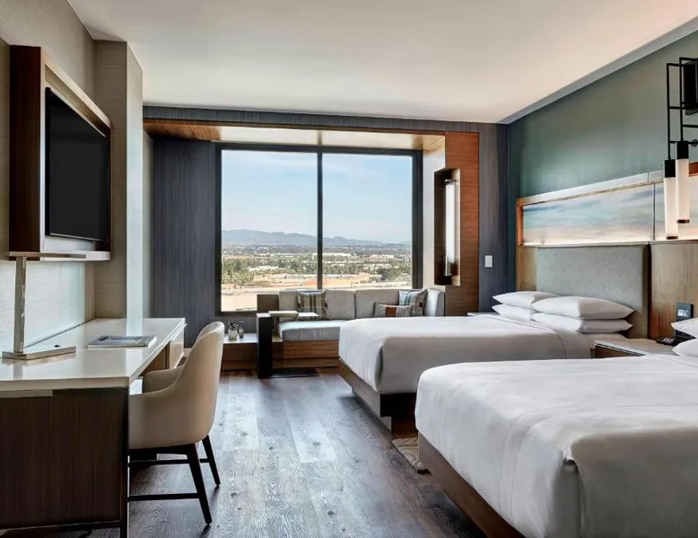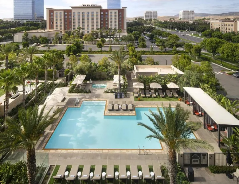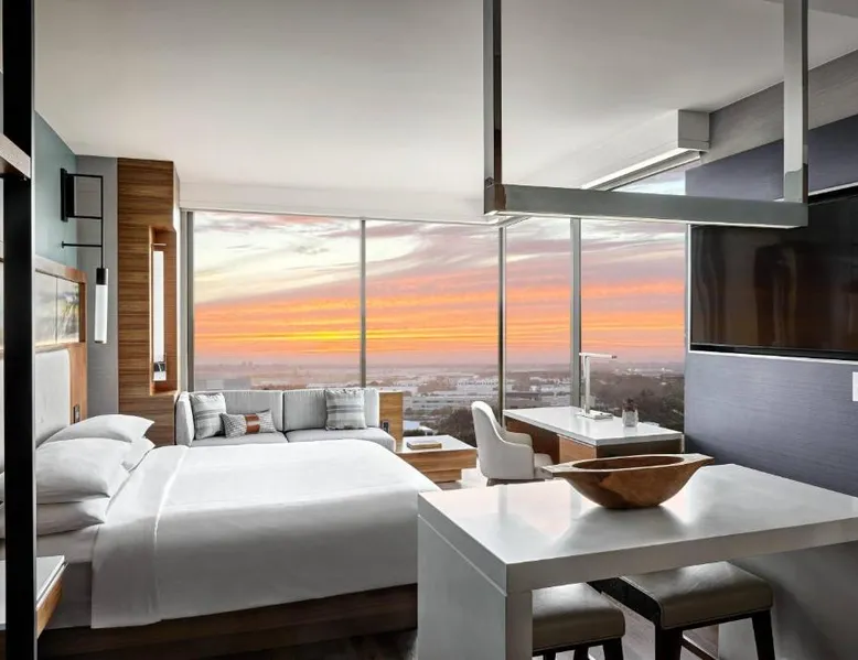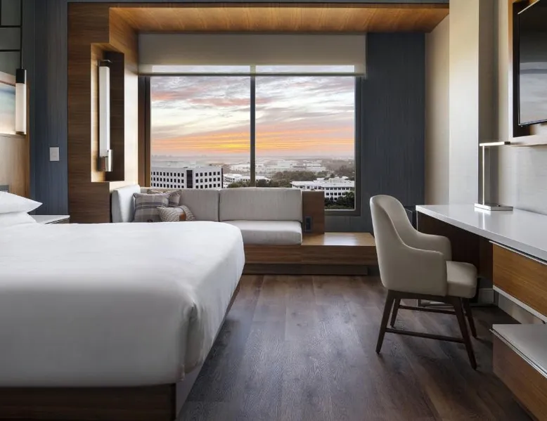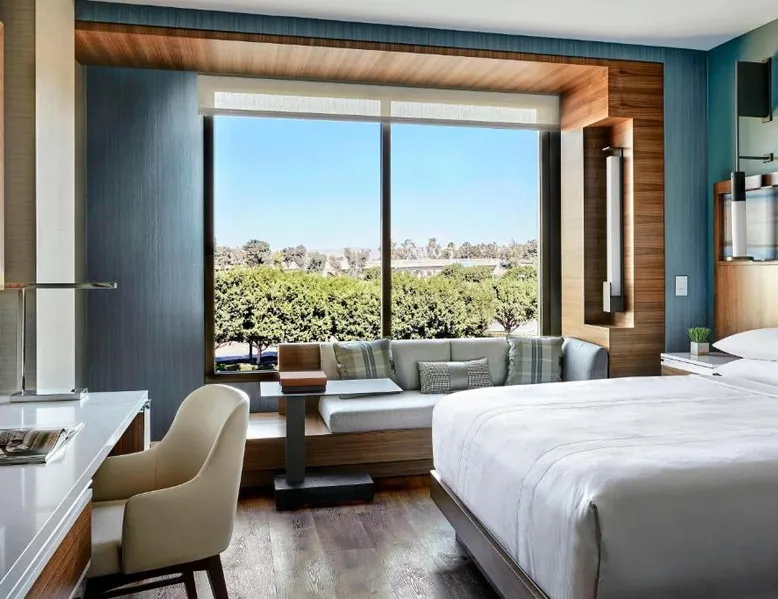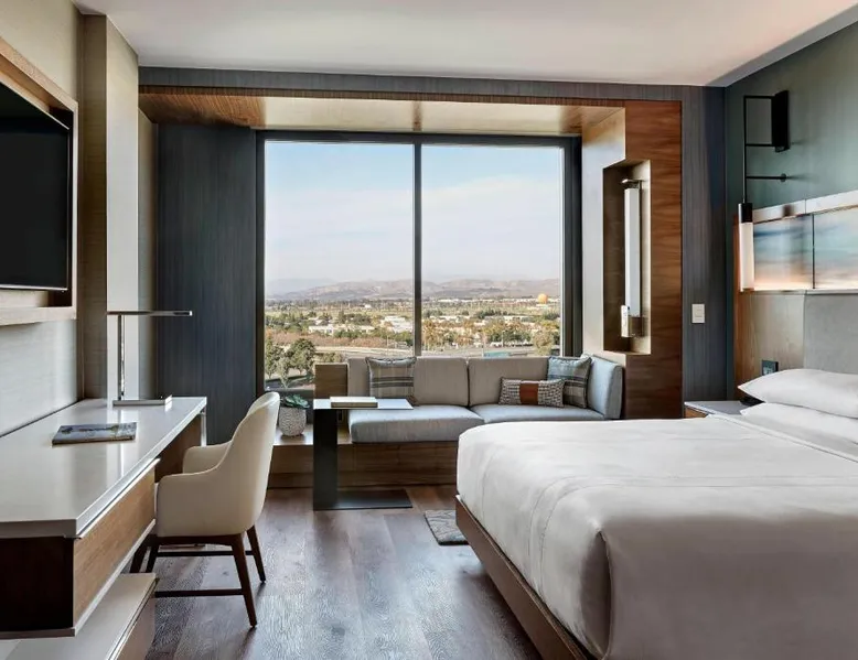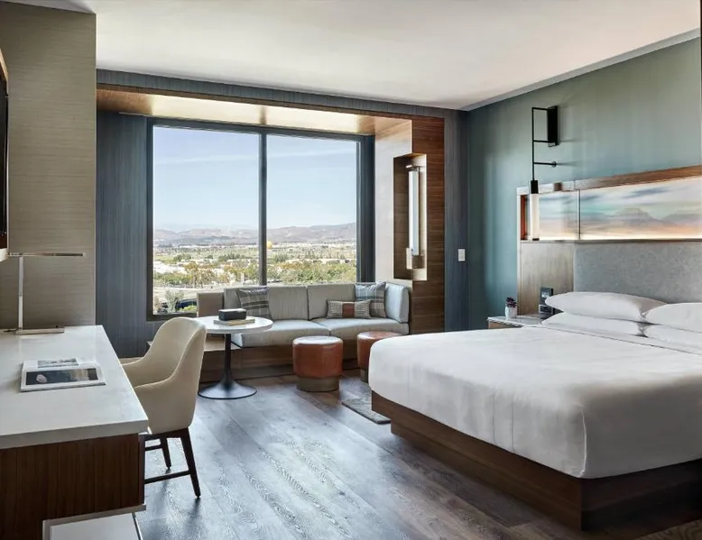 Comfortable Accommodations: Rooms feature air-conditioning, private bathrooms, kitchen facilities, and modern amenities. Guests enjoy free WiFi, flat-screen TVs, and parquet floors. Dining and Leisure: The modern restaurant serves American cuisine for lunch and dinner, alongside cocktails. A bar offers a relaxing atmosphere. A year-round outdoor swimming pool, garden, and fitness room enhance the stay. Convenient Location: Located in Irvine, the hotel is 7.5 mi from John Wayne Airport and 1.2 mi from Irvine Transportation Center. Nearby attractions include Old Town Irvine (2.4 mi) and Concordia University Irvine (5 mi). Guests appreciate the convenient location and attentive staff. This room features a cable satellite TV, guest bathrobes and M Club access.