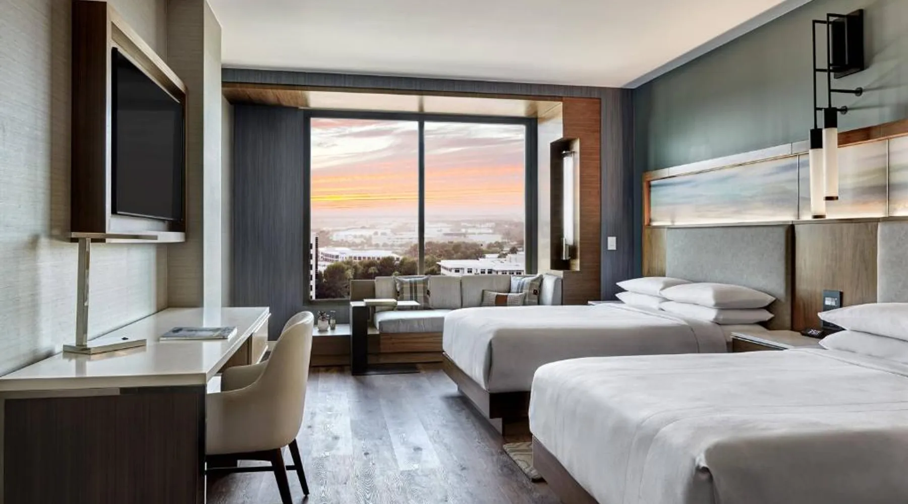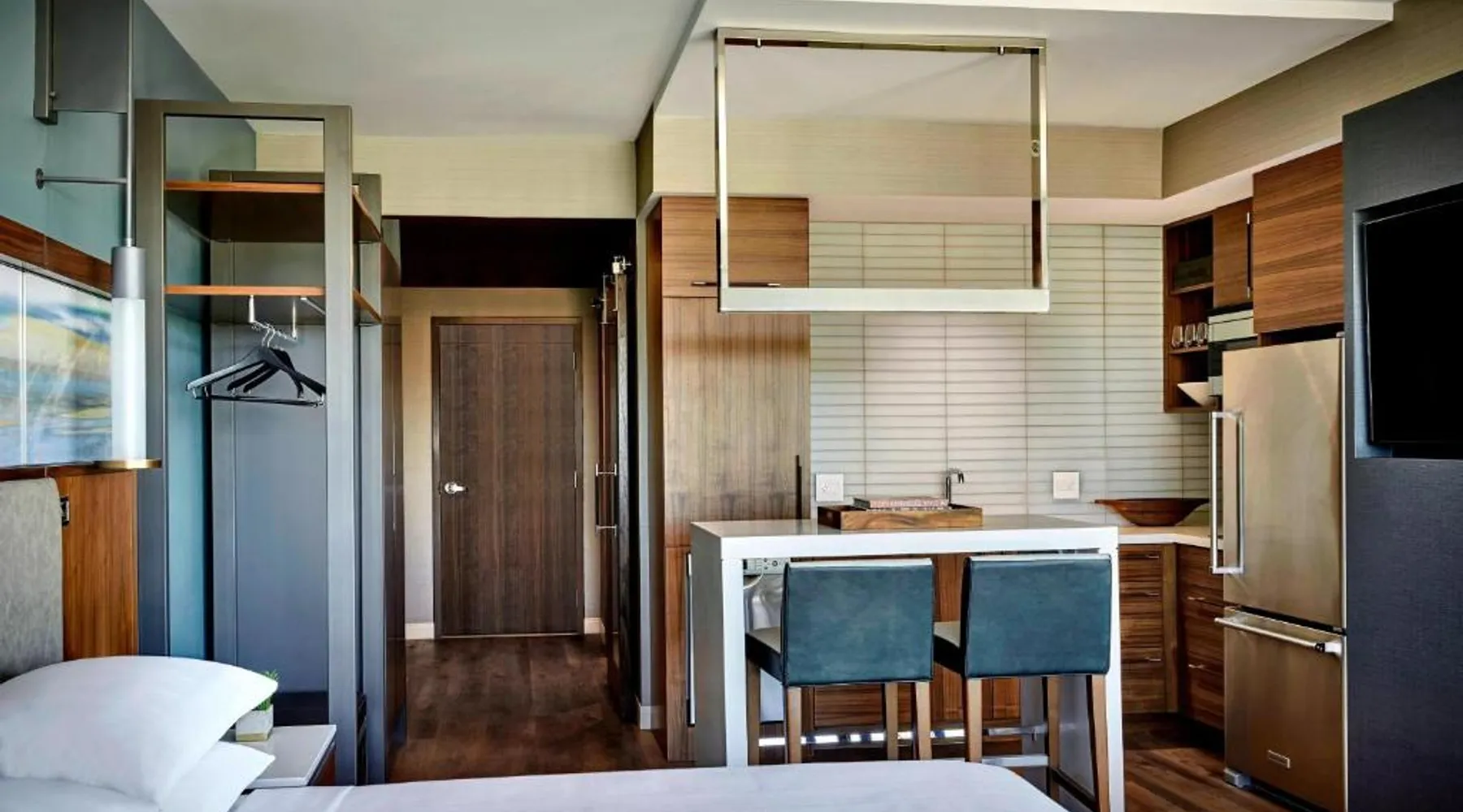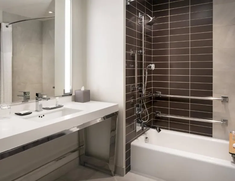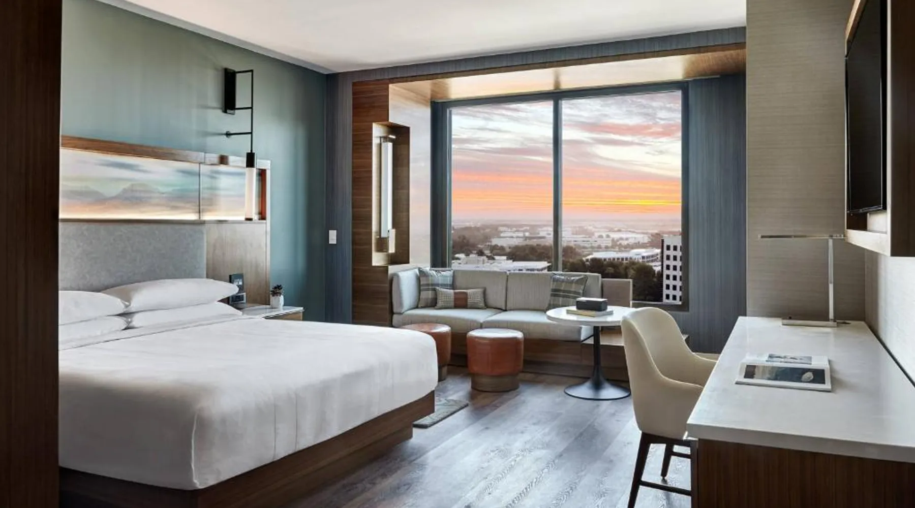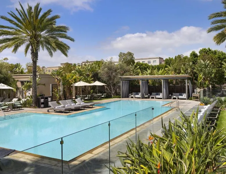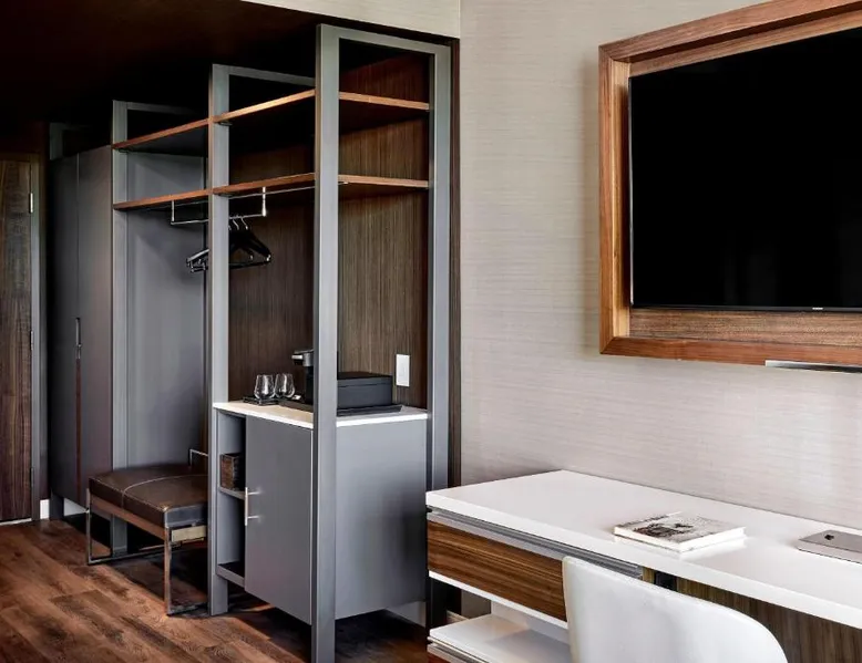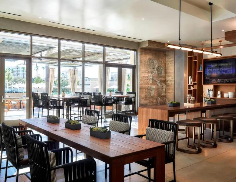 Comfortable Accommodations: Rooms feature air-conditioning, private bathrooms, kitchen facilities, and modern amenities. Guests enjoy free WiFi, flat-screen TVs, and parquet floors. Dining and Leisure: The modern restaurant serves American cuisine for lunch and dinner, alongside cocktails. A bar offers a relaxing atmosphere. A year-round outdoor swimming pool, garden, and fitness room enhance the stay. Convenient Location: Located in Irvine, the hotel is 7.5 mi from John Wayne Airport and 1.2 mi from Irvine Transportation Center. Nearby attractions include Old Town Irvine (2.4 mi) and Concordia University Irvine (5 mi). Guests appreciate the convenient location and attentive staff. This room features a cable satellite TV, guest bathrobes and M Club access.