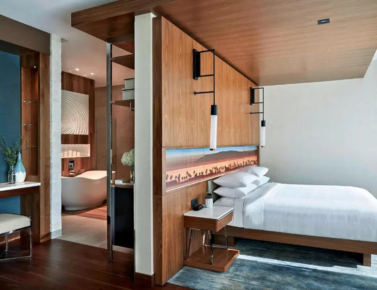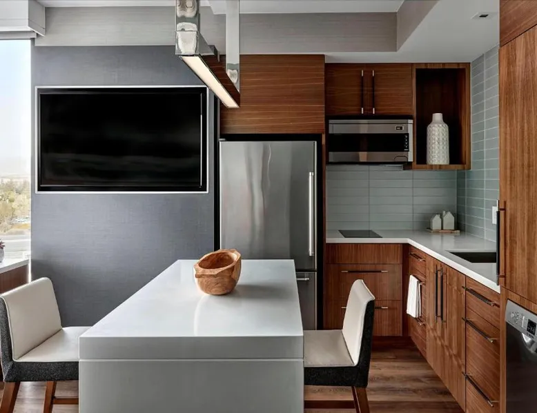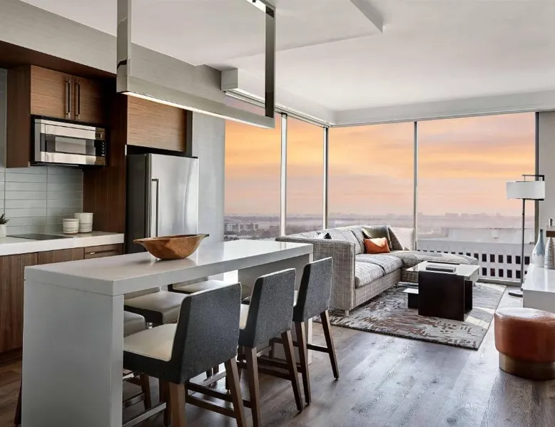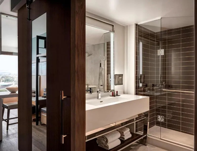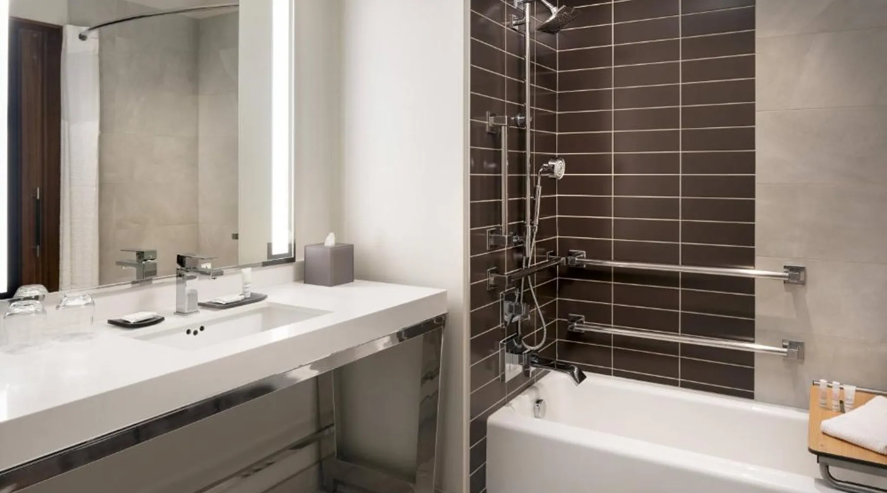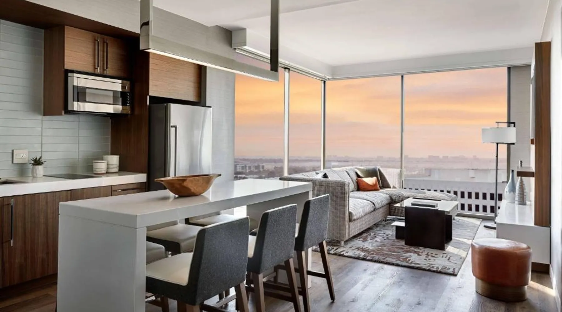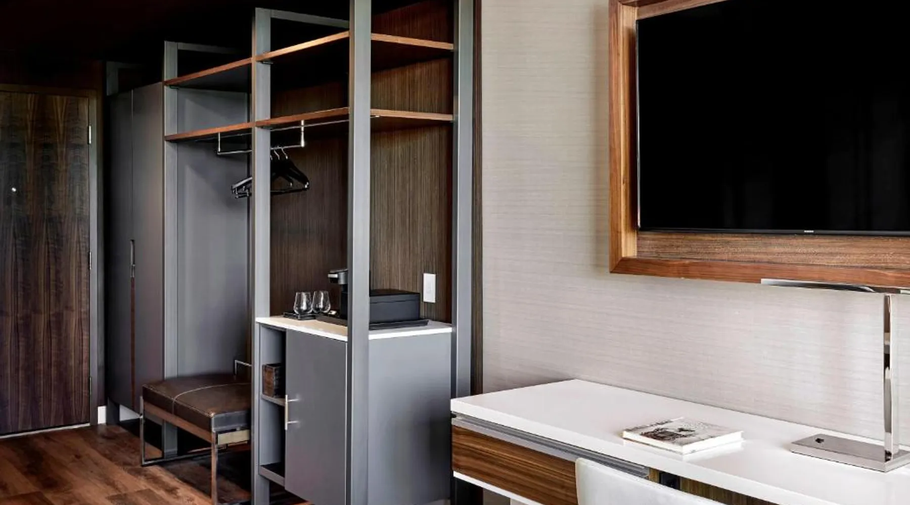 Comfortable Accommodations: Rooms feature air-conditioning, private bathrooms, kitchen facilities, and modern amenities. Guests enjoy free WiFi, flat-screen TVs, and parquet floors. Dining and Leisure: The modern restaurant serves American cuisine for lunch and dinner, alongside cocktails. A bar offers a relaxing atmosphere. A year-round outdoor swimming pool, garden, and fitness room enhance the stay. Convenient Location: Located in Irvine, the hotel is 7.5 mi from John Wayne Airport and 1.2 mi from Irvine Transportation Center. Nearby attractions include Old Town Irvine (2.4 mi) and Concordia University Irvine (5 mi). Guests appreciate the convenient location and attentive staff. This room features a cable satellite TV, guest bathrobes and M Club access.