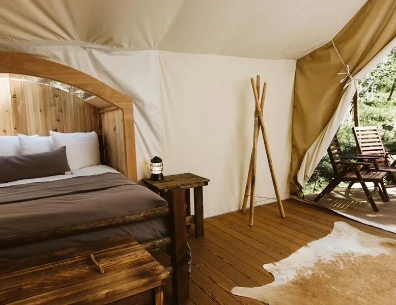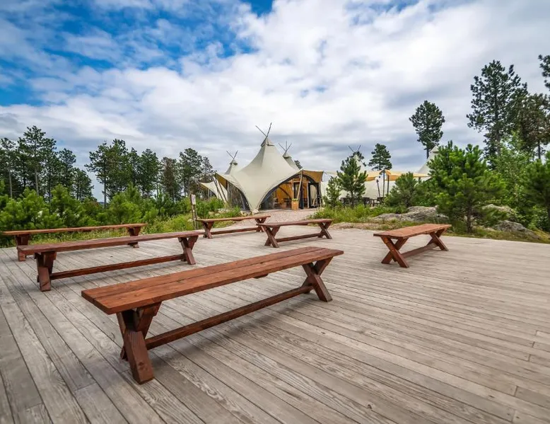 Comfortable Accommodations: Under Canvas Mount Rushmore in Keystone offers 3-star luxury tents with private bathrooms, balconies, and parquet floors. Each tent includes free toiletries, a fireplace, and outdoor furniture. Dining and Amenities: The family-friendly restaurant serves American cuisine for dinner. Guests can also enjoy an outdoor fireplace, coffee shop, and picnic area. Additional facilities include a 24-hour front desk, concierge service, and live music. Activities and Location: Located 3.1 mi from Mount Rushmore and 29 mi from Rapid City Regional Airport, the property offers yoga classes, walking tours, hiking, cycling, and bicycle parking. Guests appreciate the scenic views and excellent service. The unit has 1 bed.