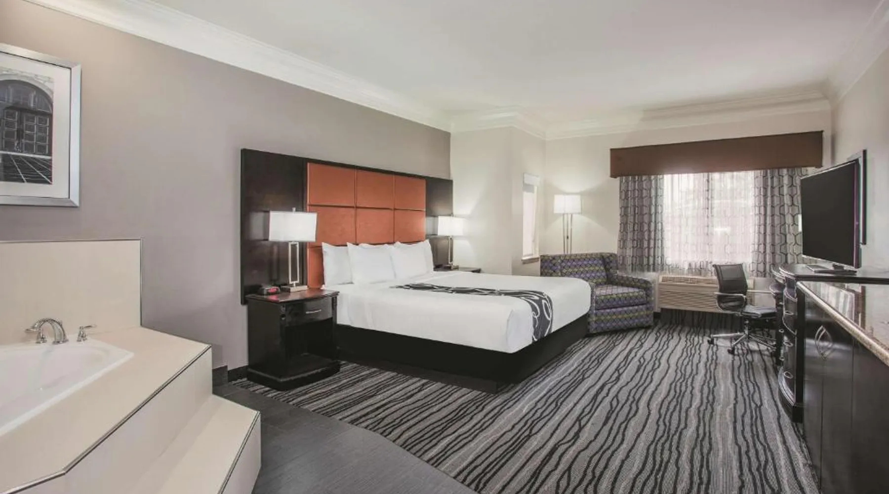 Located adjacent to the Camp Parks Reserve Forces Training Area and 18 mi from the Oakland Zoo, La Quinta Inn & Suites Dublin - Pleasanton features rooms with 42-inch flat-screen TVs. Each accommodations includes white linens and large windows with blackout curtains. They are equipped with free WiFi, a flat-screen TV with cable channels, a microwave, and a refrigerator. An outdoor pool, a hot tub, and a fitness center are part of the facilities at La Quinta Inn & Suites Dublin - Pleasanton. A business center is located in the lobby. A hot continental breakfast with waffles and fruit is served every morning. Laundry facilities are available. San Francisco is 34 mi from La Quinta Inn & Suites Dublin - Pleasanton. Oakland International Airport is 20 mi from the hotel. Featuring WiFi and a flat-screen TV with cable channels, this room includes air conditioning, a coffee machine, a refrigerator, and a microwave. A continental breakfast is provided.