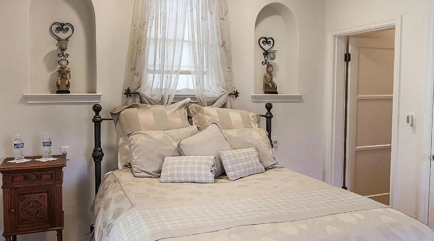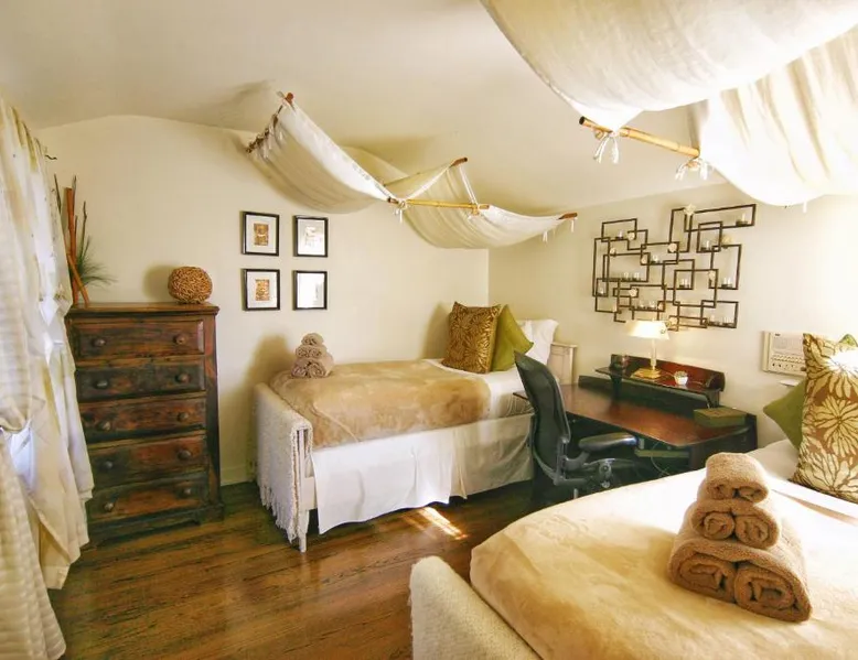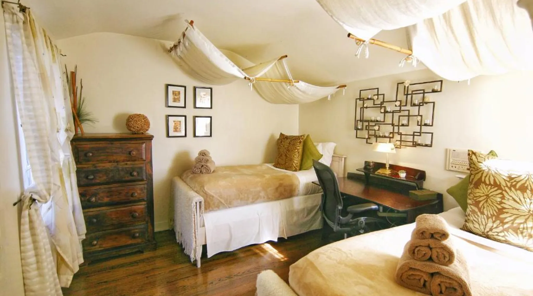 Elegant Accommodations: The Patrician Hollywood Universal in Pasadena offers an adults-only guest house with a sun terrace, garden, bar, and free WiFi. Private check-in and check-out services ensure a seamless arrival and departure. Comfortable Amenities: Guests can enjoy air-conditioning, streaming services, and a continental breakfast. Additional facilities include an outdoor fireplace, lounge, shared kitchen, and outdoor seating areas. Prime Location: Located 14 mi from Hollywood Burbank Airport, the property is near Rose Bowl Stadium (3.1 mi), California Institute of Technology (5 mi), and Griffith Observatory (13 mi). Guests appreciate the scenic views and proximity to attractions. This air-conditioned deluxe room has soundproofing and a shared bathroom. Room provides access to a shared kitchen.