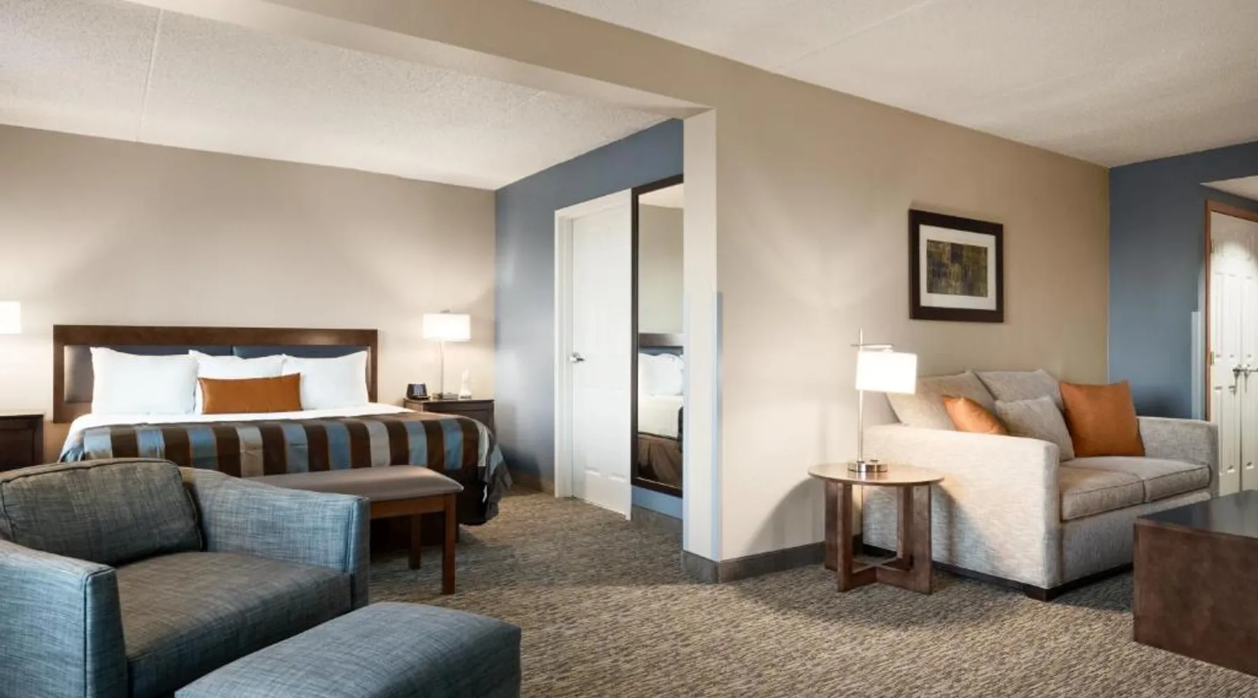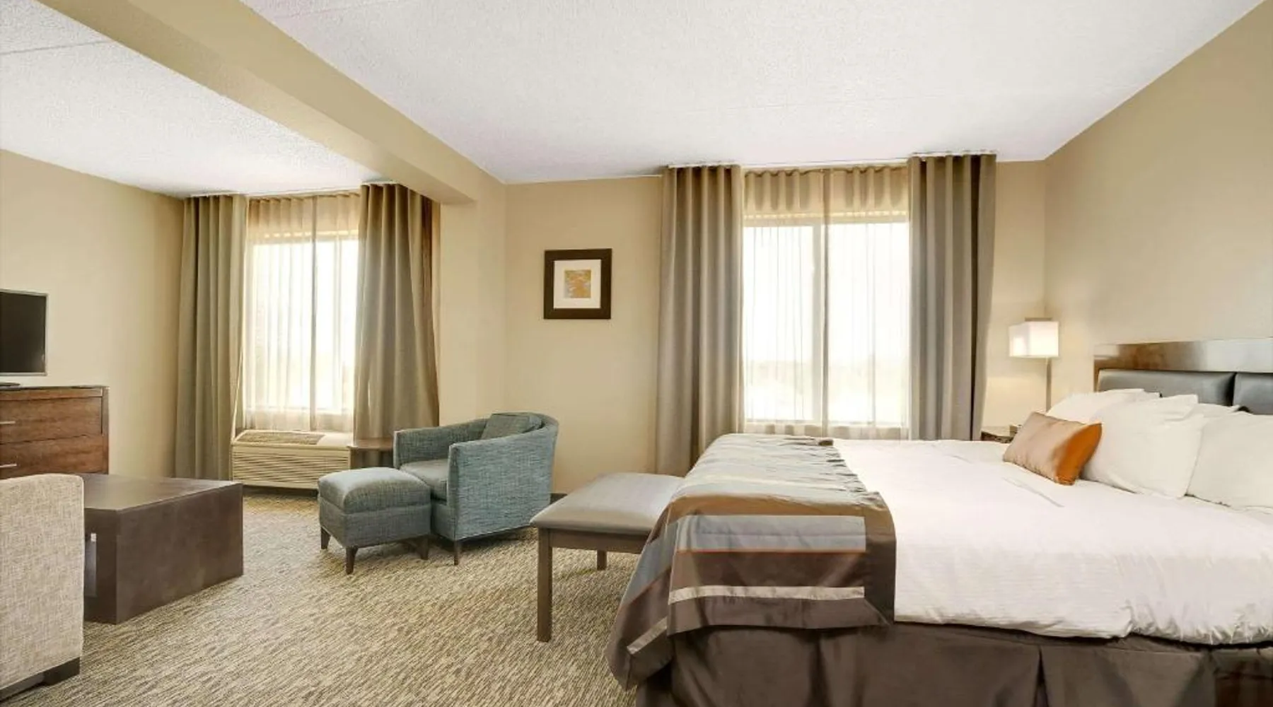 This North Dakota hotel, an 8-minute drive from Hector International Airport, features an indoor pool. Guest rooms at Wingate by Wyndham Fargo boast free Wi-Fi. Rooms provide microwaves and refrigerators. They also include cable TV, desks and arm chairs. Rooms with sofa beds are available. During their stay, guests can enjoy a continental breakfast. They can also workout in the gym. For added convenience, the hotel offers a business center and meeting facilities. Fargo Wingate by Wyndham is less than one mile from West Acres Shopping Center. It is 2 miles from Prairiewood Golf Course and 6 miles from North Dakota State University in Fargo. This air-conditioned suite includes a flat-screen TV with cable channels and a private bathroom. The unit offers 1 bed.