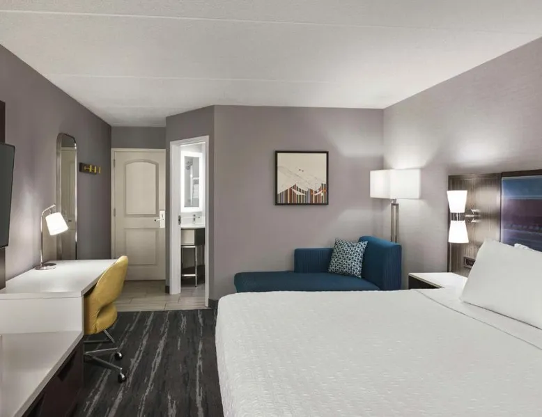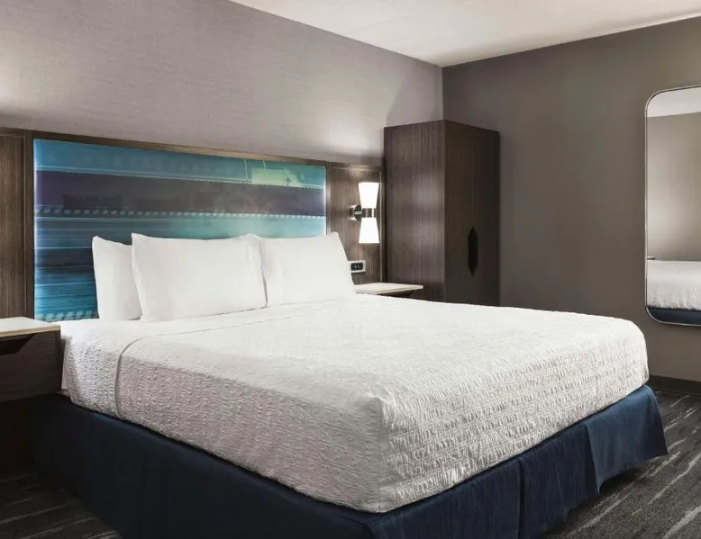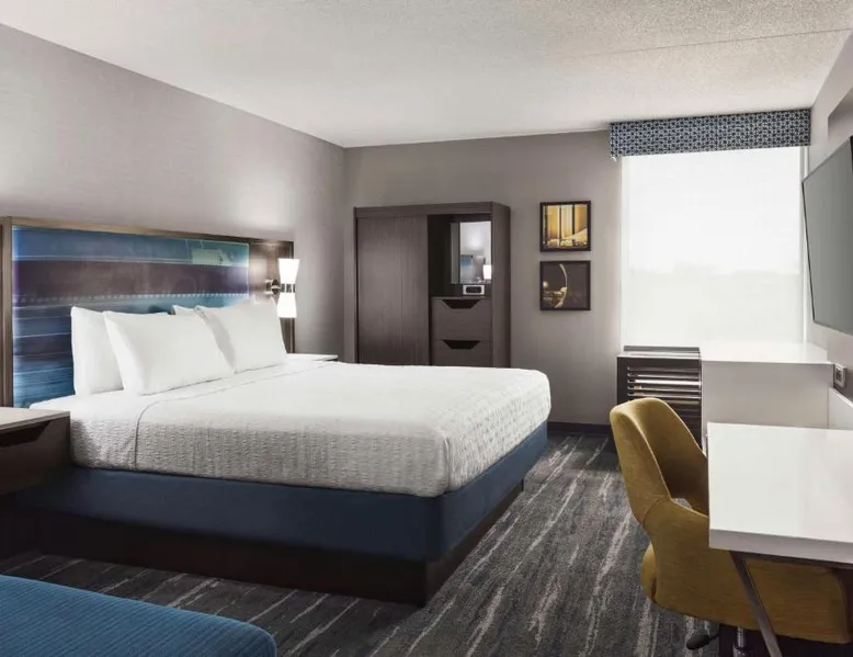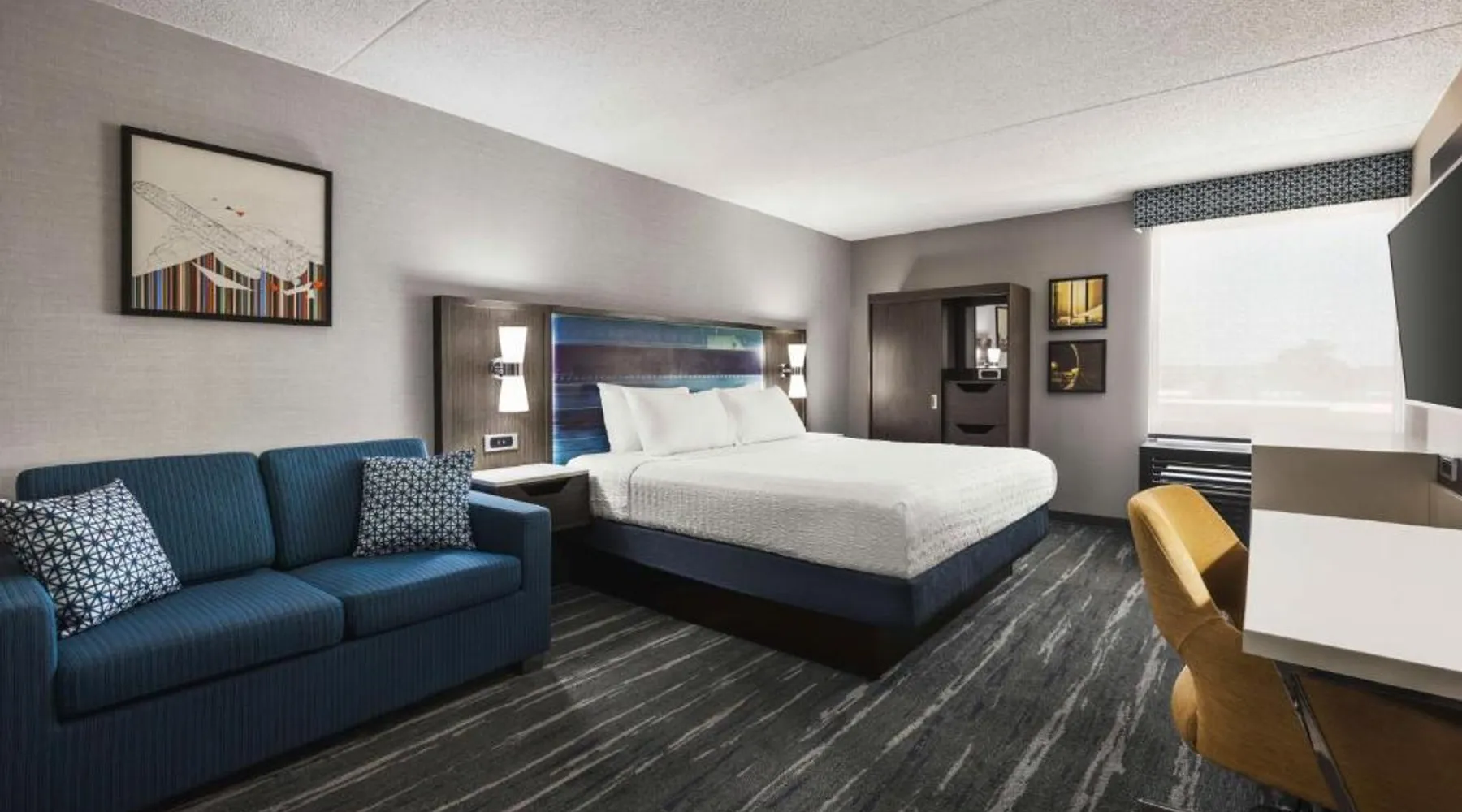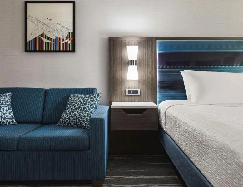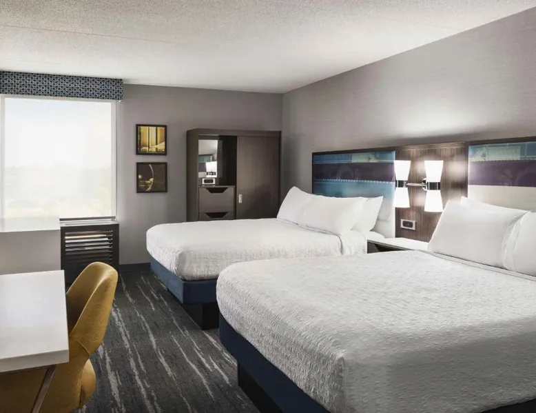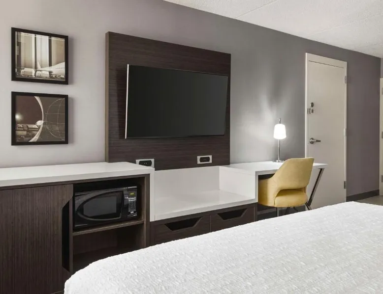 Just 1 mile from O’Hare International Airport, this hotel offers free 24-hour airport shuttle services, complimentary daily breakfast and free WiFi. Every room at Hampton Inn Chicago-O’Hare International Airport offers a 49-inch HDTV with on-demand movies and a desk. All rooms furnished with a microwave and refrigerator for guest convenience. Premium rooms offer a pull out sofa bed. Guests can enjoy a swim in the indoor pool and hot tub or work out at the on-site fitness center. There is also a gift shop and meeting facilities available at the hotel. Free parking is offered to all guests for the duration of their hotel stay. Fashion Outlets of Chicago, Allstate Arena and Donald E. Stevenson Convention Center are all less than 5 miles from the hotel. The O’Hare Blue Line subway station is 3 miles away, offering easy access to downtown Chicago. This room offers handicap-accessible amenities, including a raised toilet seat and visual alarm system.