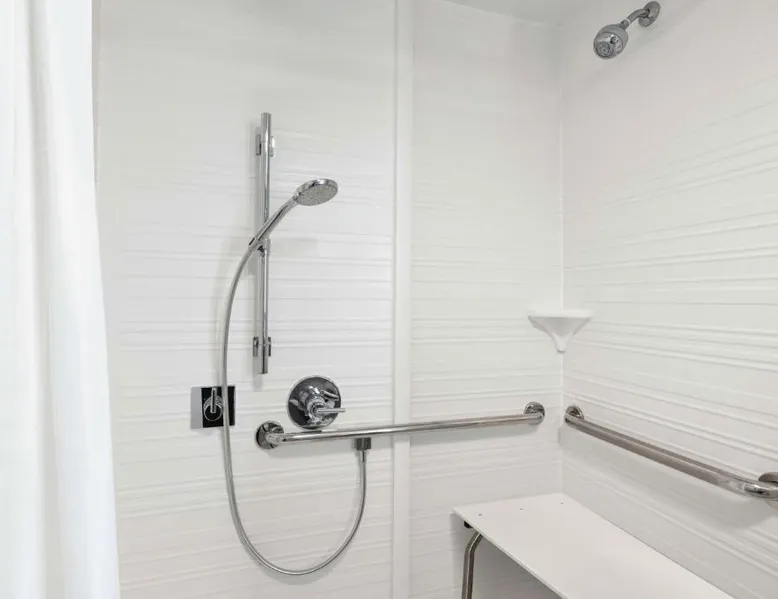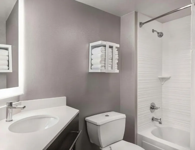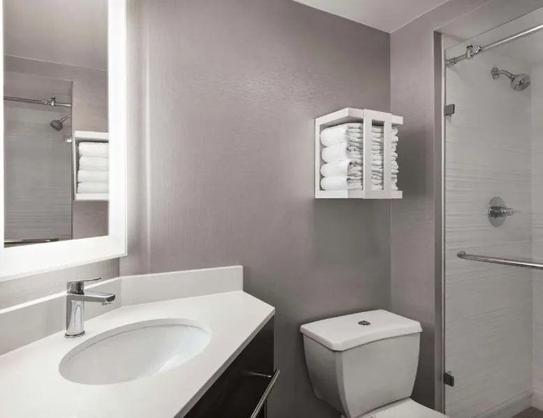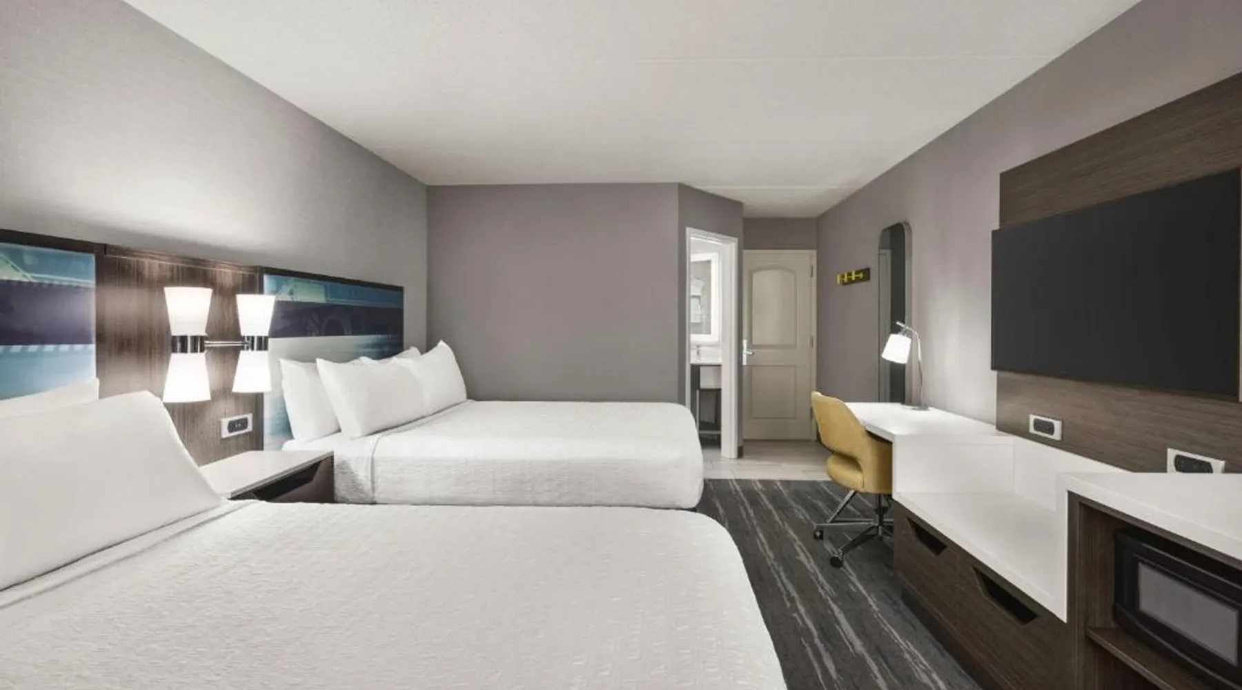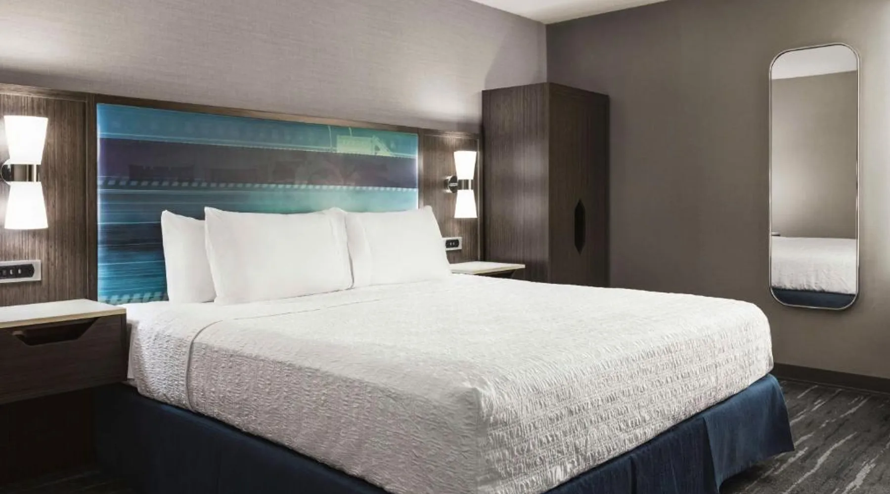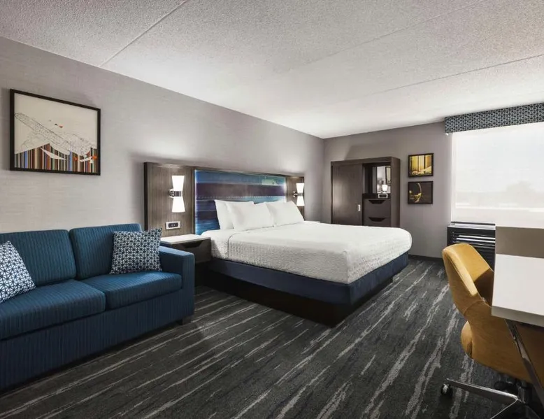 Just 1 mile from O’Hare International Airport, this hotel offers free 24-hour airport shuttle services, complimentary daily breakfast and free WiFi. Every room at Hampton Inn Chicago-O’Hare International Airport offers a 49-inch HDTV with on-demand movies and a desk. All rooms furnished with a microwave and refrigerator for guest convenience. Premium rooms offer a pull out sofa bed. Guests can enjoy a swim in the indoor pool and hot tub or work out at the on-site fitness center. There is also a gift shop and meeting facilities available at the hotel. Free parking is offered to all guests for the duration of their hotel stay. Fashion Outlets of Chicago, Allstate Arena and Donald E. Stevenson Convention Center are all less than 5 miles from the hotel. The O’Hare Blue Line subway station is 3 miles away, offering easy access to downtown Chicago. This room offers handicap-accessible amenities, including a raised toilet seat and visual alarm system.