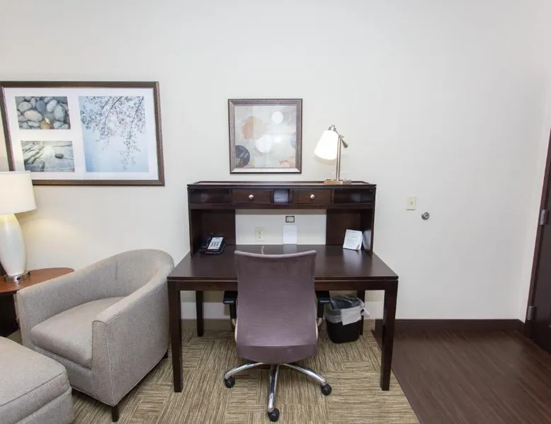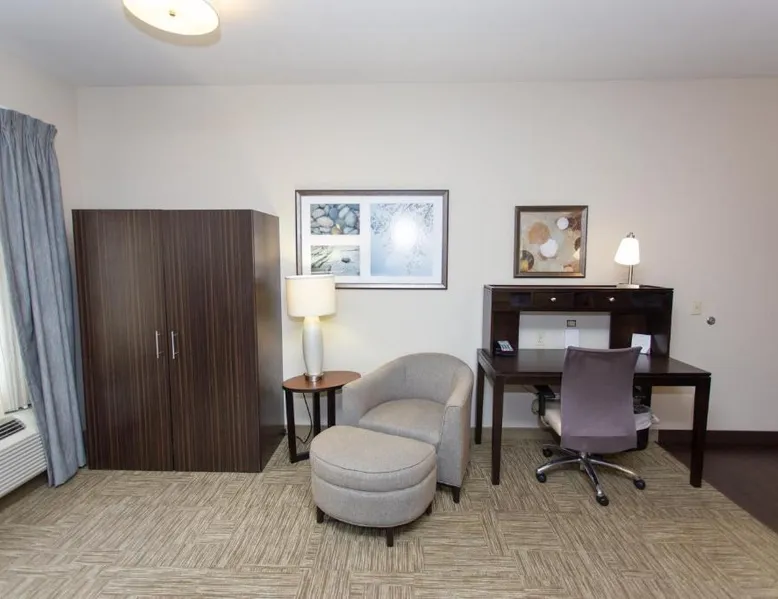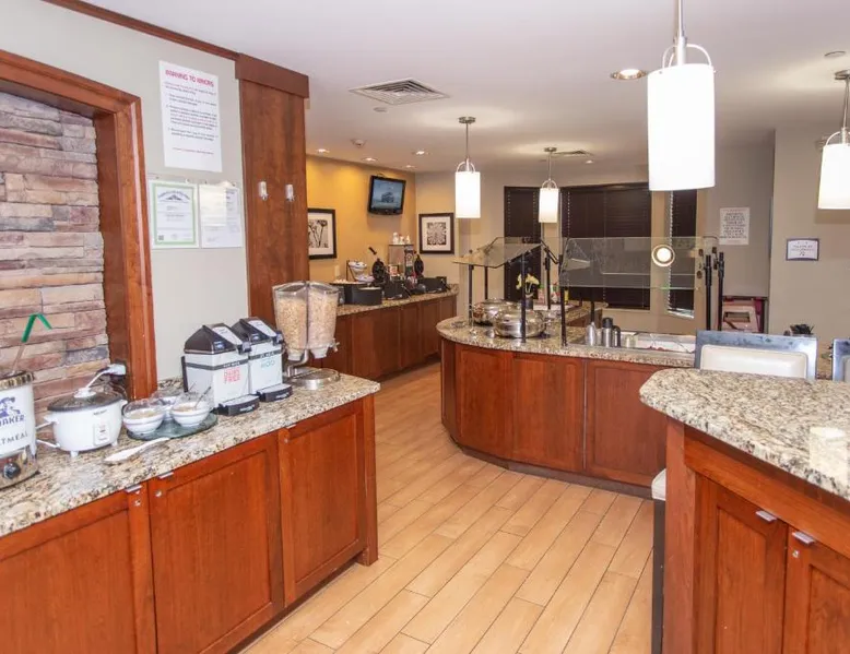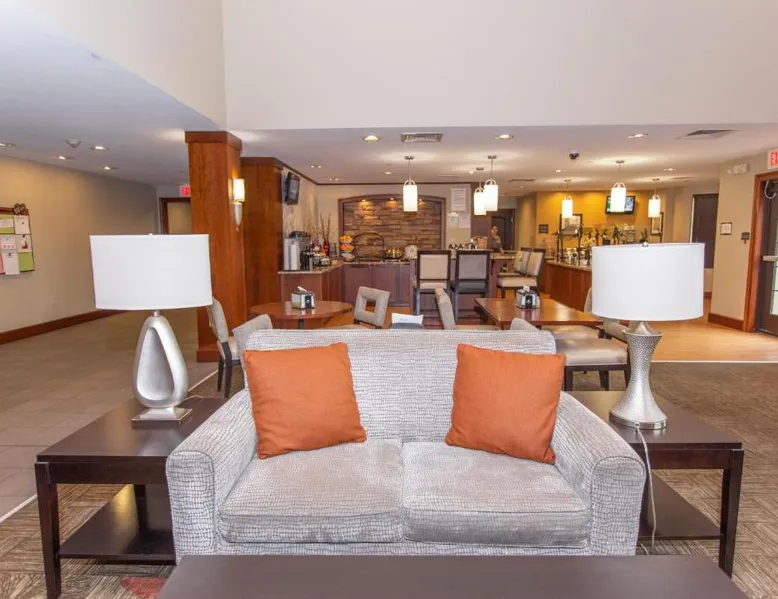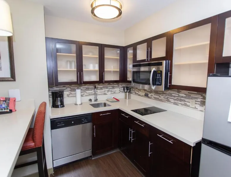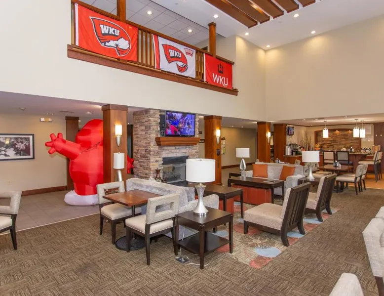 This Bowling Green, Kentucky hotel is 4 minutes’ drive from the Western Kentucky University and 6 miles from Interstate 65. The hotel has free WiFi and serves a daily breakfast buffet. Each room at the Staybridge Suites Bowling Green has a kitchen complete with an oven, stove and refrigerator. A flat-screen cable TV with also provided with a DVD player. Guests staying at the Bowling Green Staybridge Suites can enjoy swimming in the outdoor pool or exercising in the fitness center. There is also an on-site business center. Beech Bend Park Splash Lagoon is 15 minutes’ drive from the property. National Corvette Museum is 8 miles away. Downtown Nashville is just a 1 hour drive away from Bowling Green. A kitchen and a flat-screen cable TV with a DVD player is provided.
