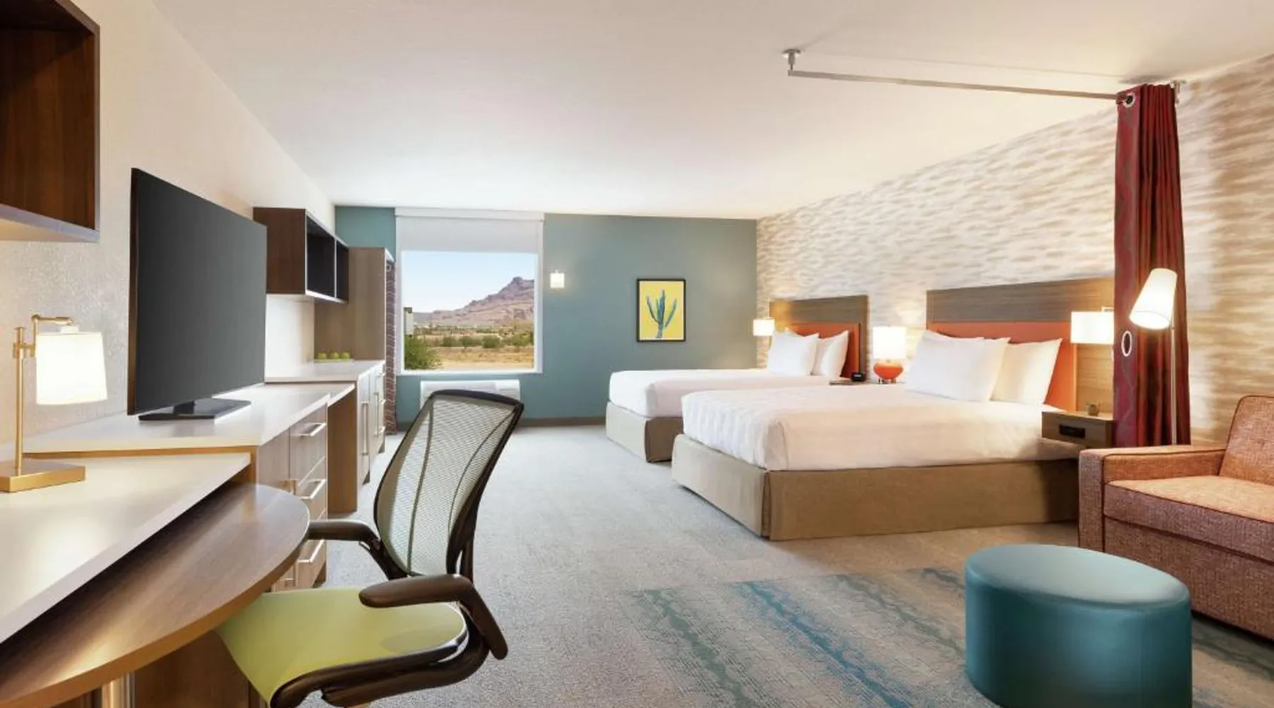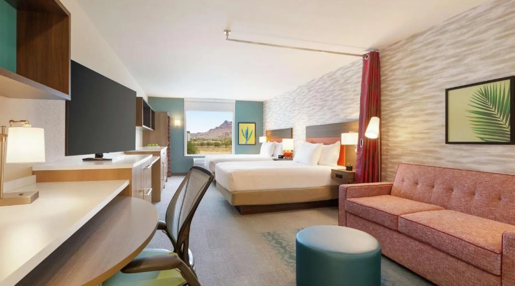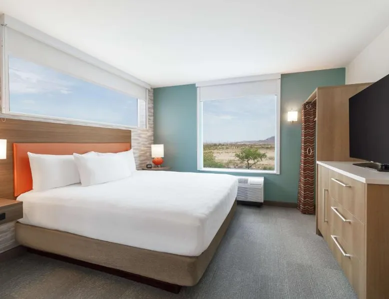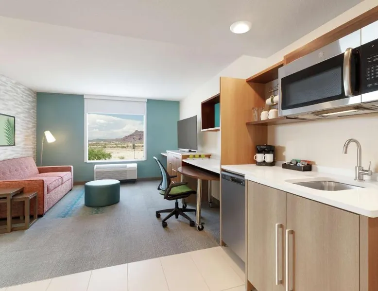 Comfortable Accommodations: Home2 Suites By Hilton Mesa Longbow, Az in Mesa offers spacious rooms with air-conditioning, free WiFi, and modern amenities. Guests enjoy amenities such as a fitness center, sun terrace, and a year-round outdoor swimming pool. Convenient Facilities: The hotel features a lounge, outdoor fireplace, fitness room, and a 24-hour front desk. Additional services include a minimarket, electric vehicle charging station, business area, laundry service, and barbecue facilities. Prime Location: Located 16 mi from Phenix-Mesa Gateway Airport, the hotel is near attractions like Phenix Convention Center (25 mi) and Phenix Zoo (17 mi). Guests appreciate the attentive staff and excellent service support. The suite offers air conditioning, a tea and coffee maker, a seating area, heating and a flat-screen TV with cable channels. The unit offers 1 bed.