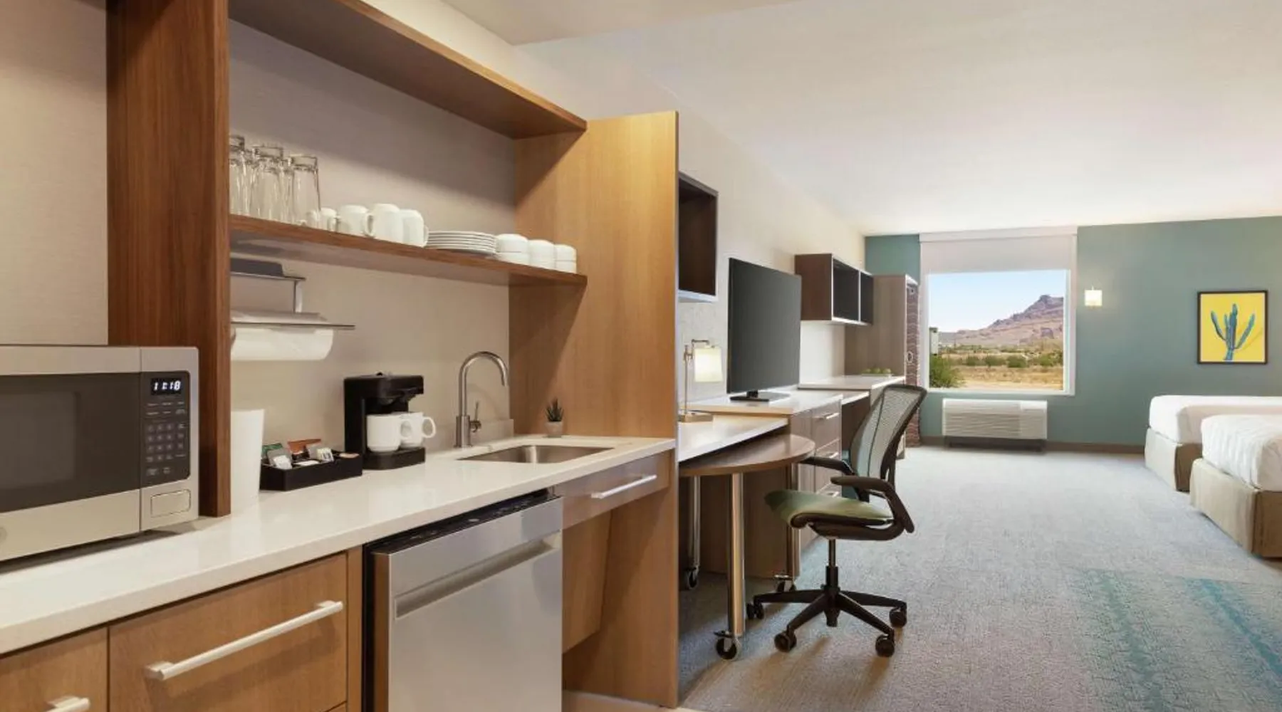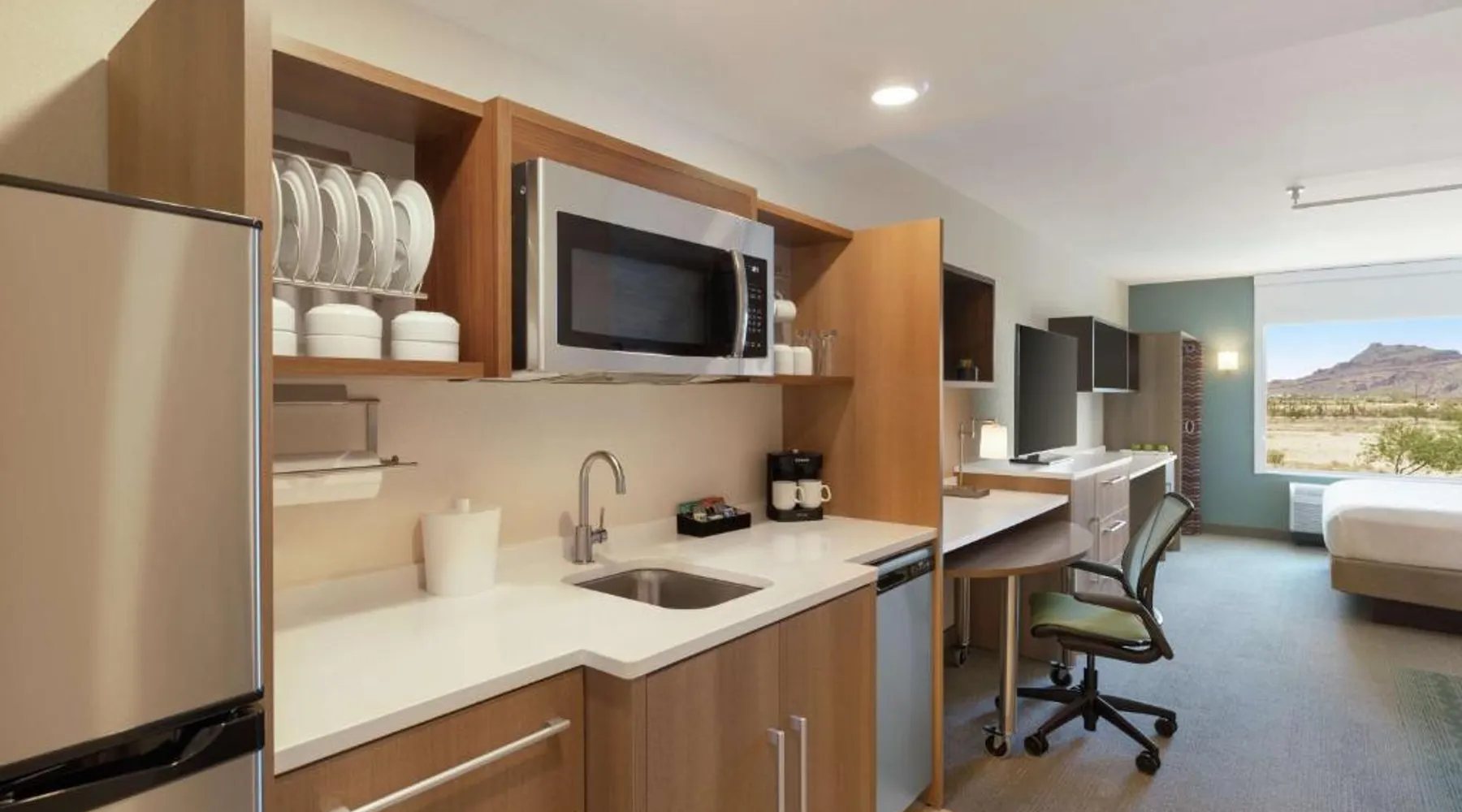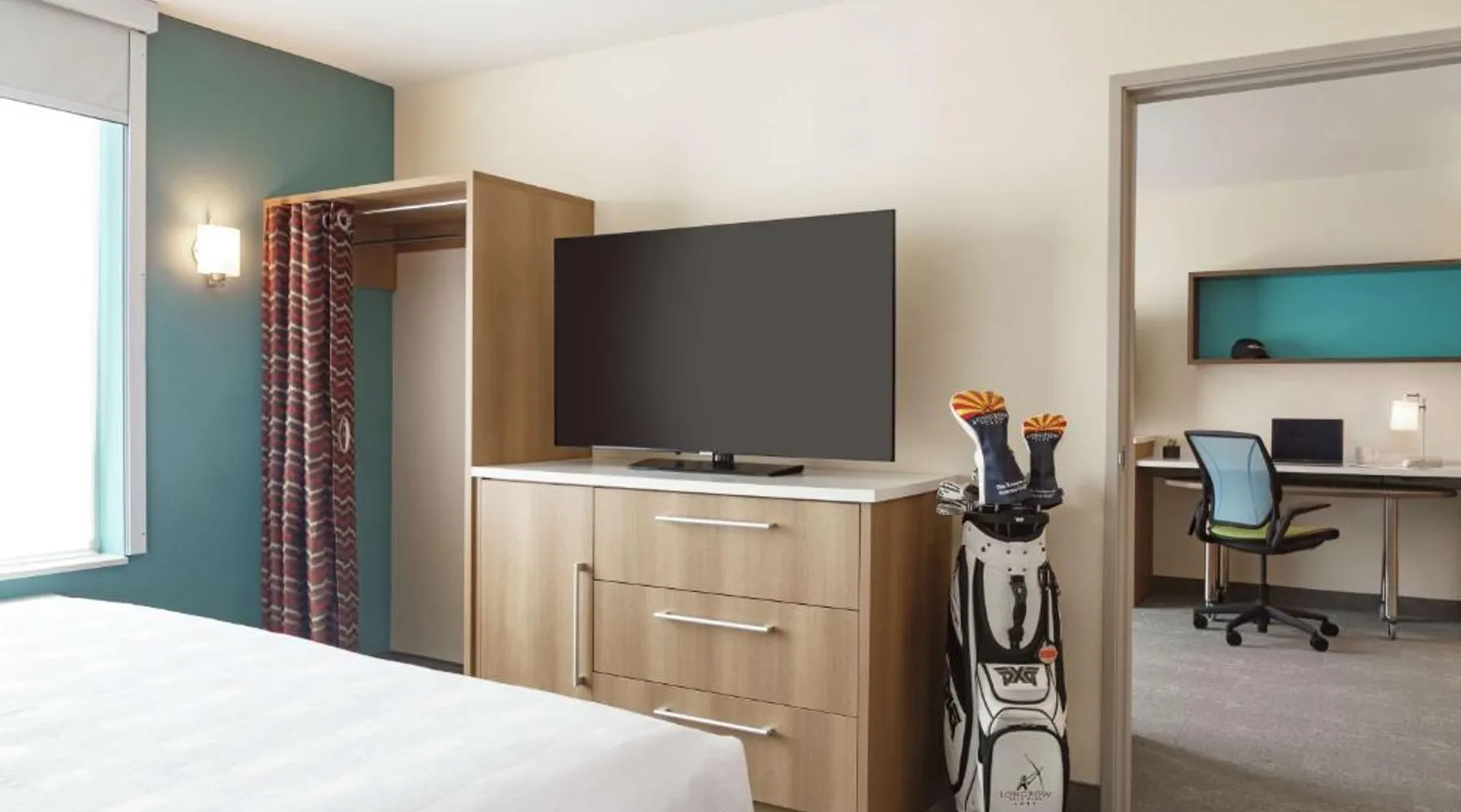 Comfortable Accommodations: Home2 Suites By Hilton Mesa Longbow, Az in Mesa offers spacious rooms with air-conditioning, free WiFi, and modern amenities. Guests enjoy amenities such as a fitness center, sun terrace, and a year-round outdoor swimming pool. Convenient Facilities: The hotel features a lounge, outdoor fireplace, fitness room, and a 24-hour front desk. Additional services include a minimarket, electric vehicle charging station, business area, laundry service, and barbecue facilities. Prime Location: Located 16 mi from Phenix-Mesa Gateway Airport, the hotel is near attractions like Phenix Convention Center (25 mi) and Phenix Zoo (17 mi). Guests appreciate the attentive staff and excellent service support. The suite offers air conditioning, a tea and coffee maker, a seating area, heating and a flat-screen TV with cable channels. The unit offers 1 bed.