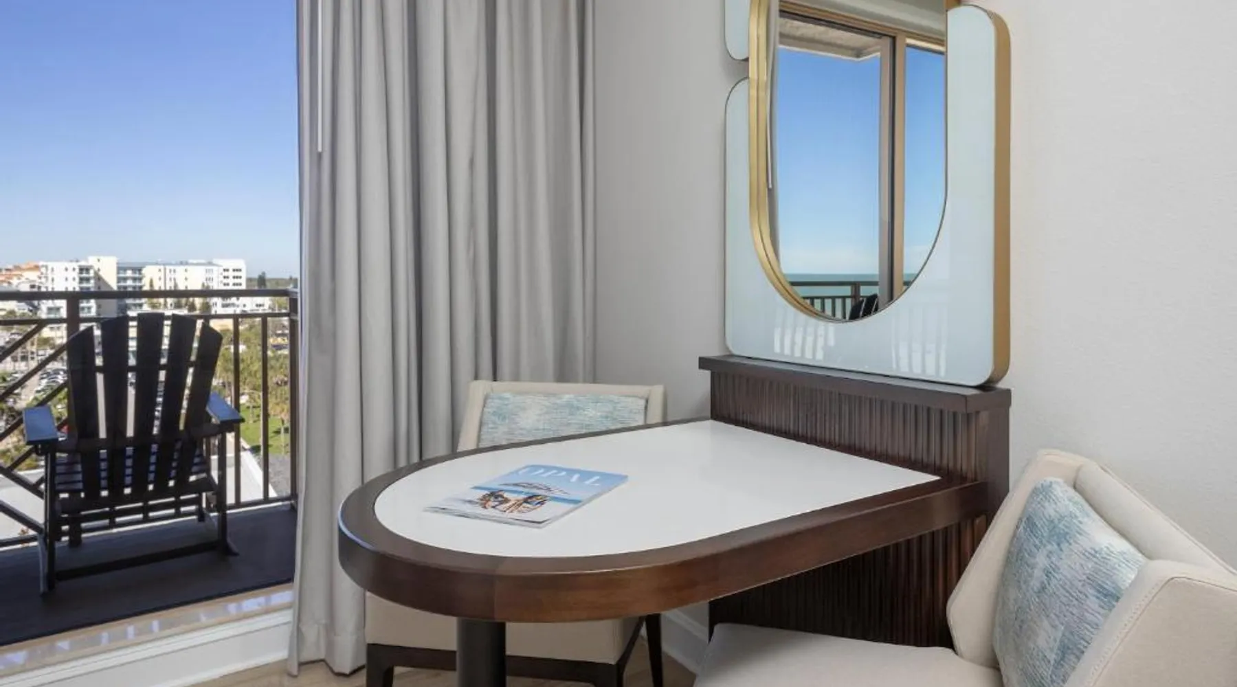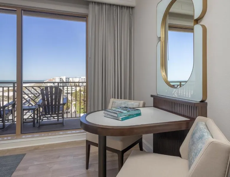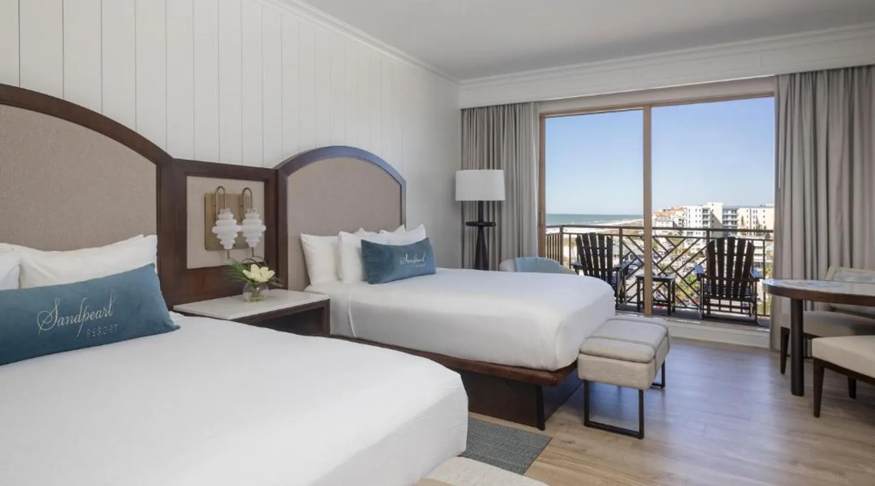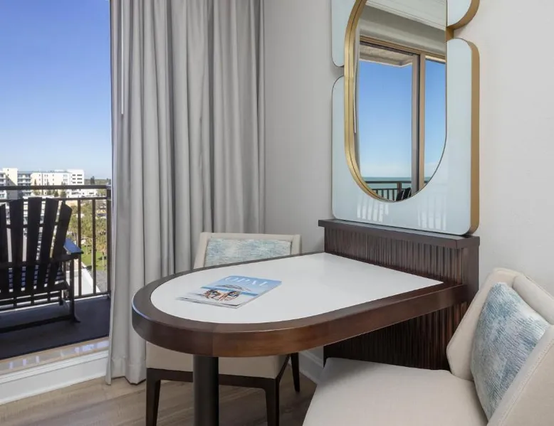 Sandpearl Resort, a 4-star beachfront resort, is within 4 minutes’ drive of Clearwater Beach Marina and the Clearwater Marine Aquarium. It features a lagoon-style outdoor pool, a full-service spa, on-site dining, and elegant guest rooms with free WiFi. A 32-inch flat-screen TV and an iPod docking station are provided for each room at Sandpearl Resort. The rooms feature warm colors and boast views of Mandalay Bay, pool, or the Gulf of Mexico. A mini-bar and luxury bathrobes are provided. Recreation options at Sandpearl Resort include parasailing, beach volleyball, and cycling with free bicycle hires. A state-of-the-art fitness center and daily children’s programs are also available. Guests can enjoy exploring the resort’s boutique or the fine art gallery. Dolphin encounters can be arranged, and a variety of meeting and banquet rooms are also available on site. Fine dining with beachfront views, premium meat selections, and an extensive wine list are offered at Caretta on the Gulf. Casual beachfront and poolside dining is featured at the Tate Island Grill. The Marketplace offers grocery items and Starbucks® coffee. Located near Highway 20, this resort is just 0.6 mi from Pier 60 and 2.1 mi from Sand Key Park. Caladesi Island State Park is 6 minutes' drive from the Clearwater Beach resort. This room features a view of the surrounding neighborhood island and a partial view of Mandalay Bay.