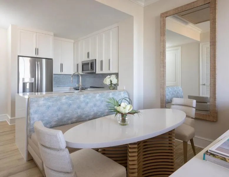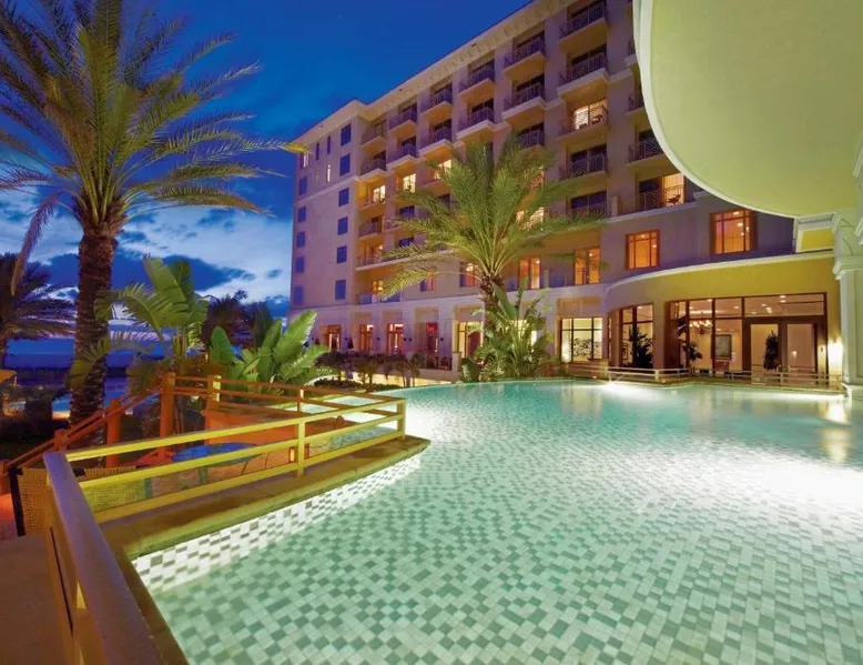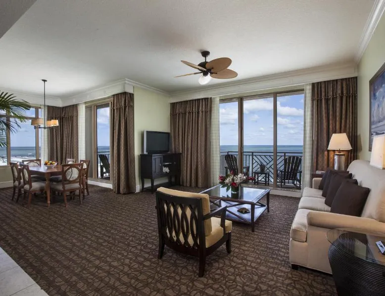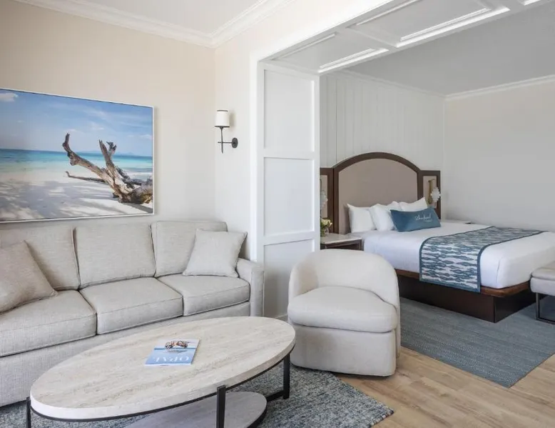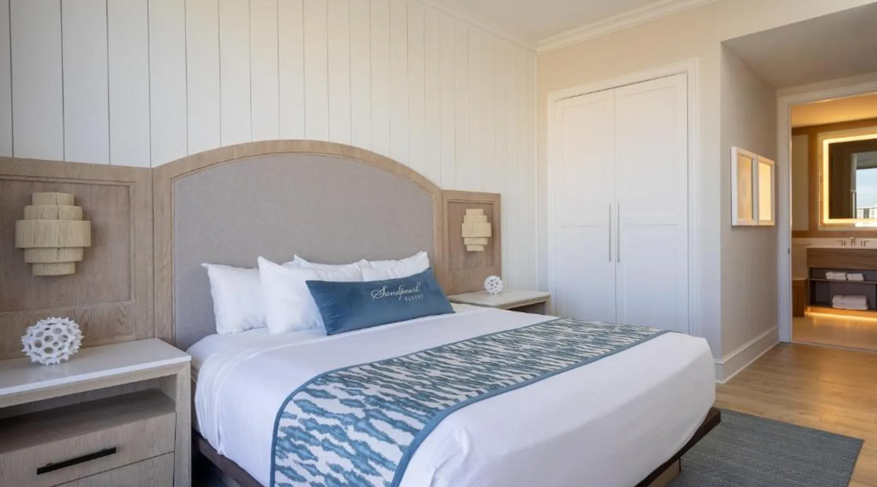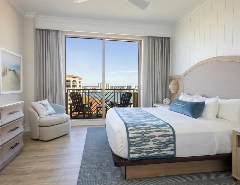 Sandpearl Resort, a 4-star beachfront resort, is within 4 minutes’ drive of Clearwater Beach Marina and the Clearwater Marine Aquarium. It features a lagoon-style outdoor pool, a full-service spa, on-site dining, and elegant guest rooms with free WiFi. A 32-inch flat-screen TV and an iPod docking station are provided for each room at Sandpearl Resort. The rooms feature warm colors and boast views of Mandalay Bay, pool, or the Gulf of Mexico. A mini-bar and luxury bathrobes are provided. Recreation options at Sandpearl Resort include parasailing, beach volleyball, and cycling with free bicycle hires. A state-of-the-art fitness center and daily children’s programs are also available. Guests can enjoy exploring the resort’s boutique or the fine art gallery. Dolphin encounters can be arranged, and a variety of meeting and banquet rooms are also available on site. Fine dining with beachfront views, premium meat selections, and an extensive wine list are offered at Caretta on the Gulf. Casual beachfront and poolside dining is featured at the Tate Island Grill. The Marketplace offers grocery items and Starbucks® coffee. Located near Highway 20, this resort is just 0.6 mi from Pier 60 and 2.1 mi from Sand Key Park. Caladesi Island State Park is 6 minutes' drive from the Clearwater Beach resort. This room features a view of the surrounding neighborhood island and a partial view of Mandalay Bay.