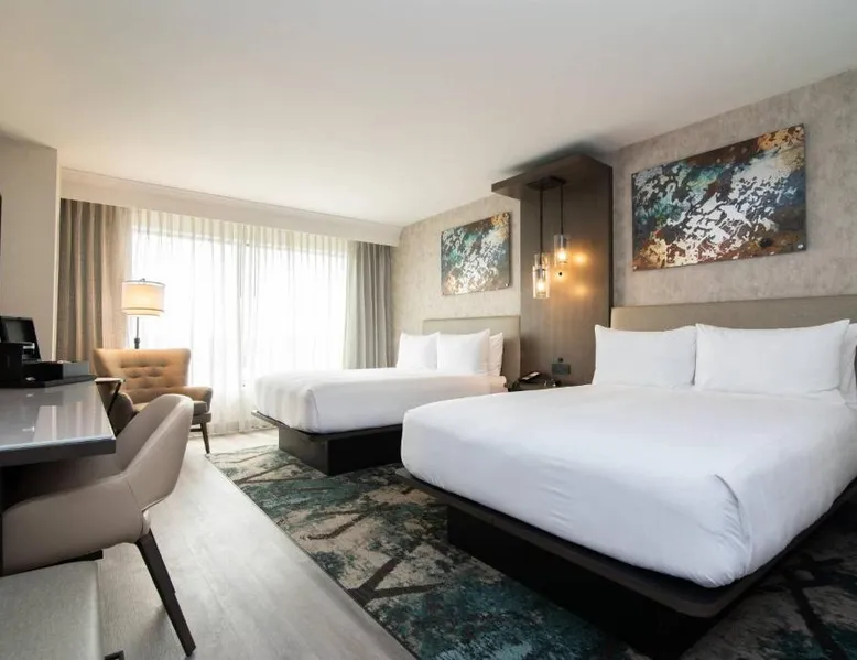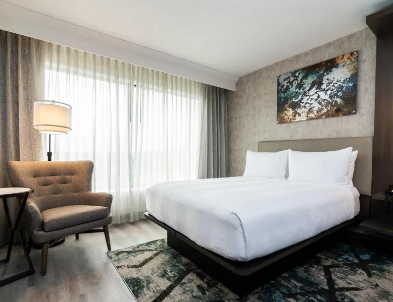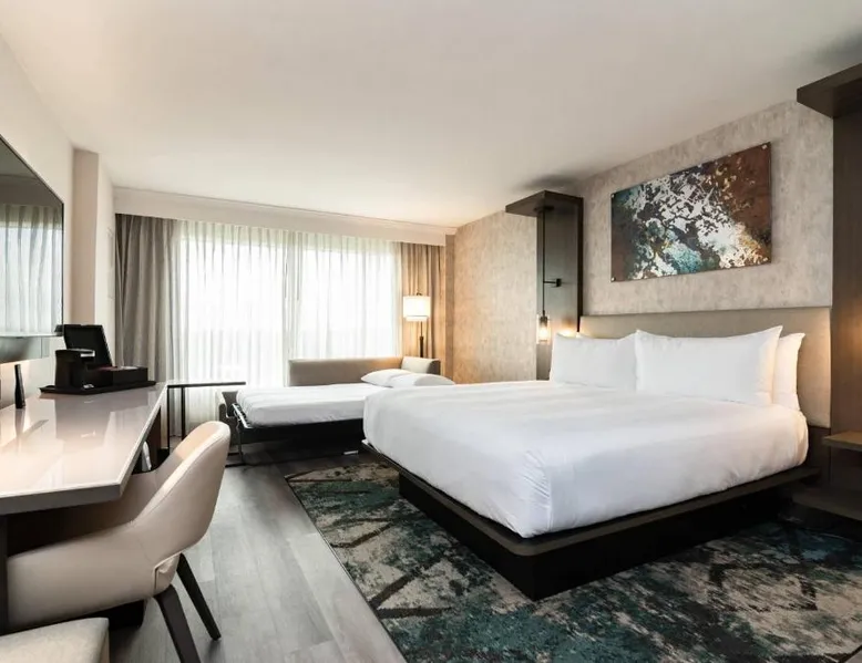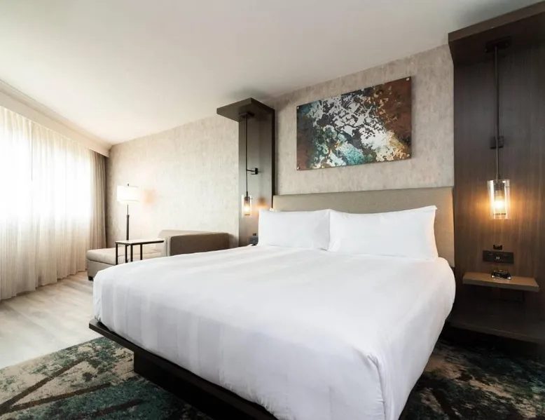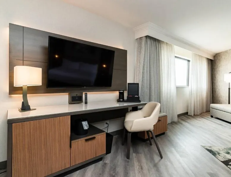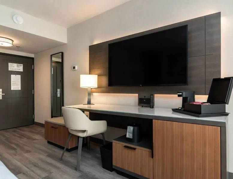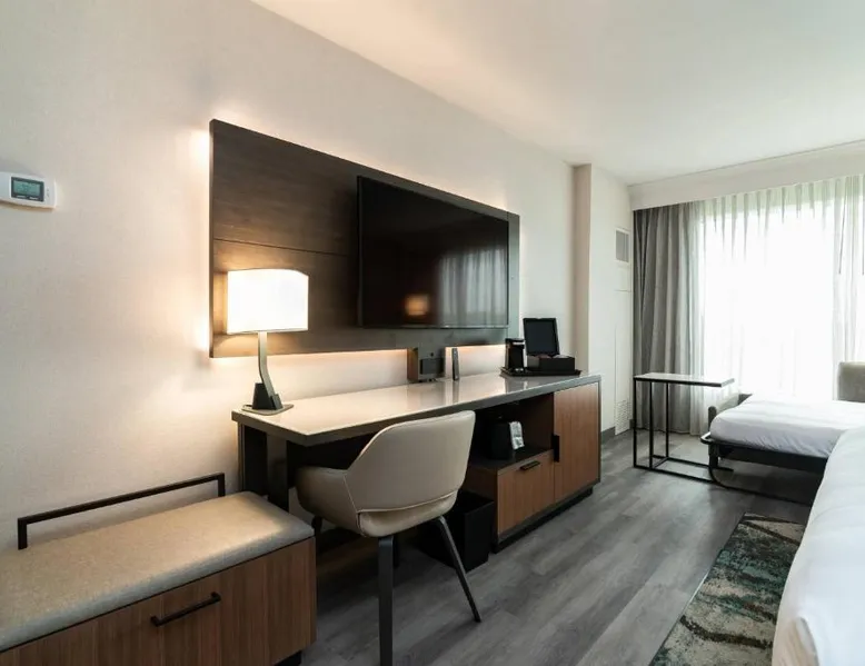 Comfortable Accommodations: Columbus Marriott in Columbus offers air-conditioned rooms with private bathrooms, free WiFi, and modern amenities. Each room includes a tea and coffee maker, work desk, and flat-screen TV. Exceptional Facilities: Guests can enjoy a fitness center, free airport shuttle service, terrace, and a year-round outdoor swimming pool. Additional facilities include a lounge, business area, and electric vehicle charging station. Dining Experience: The family-friendly restaurant serves American cuisine with brunch, lunch, and dinner options. Breakfast includes warm dishes, fresh pastries, pancakes, cheese, and fruits. Prime Location: Located 5 mi from Columbus Airport, the hotel is near attractions such as The Gallery on Railroad (27 mi) and offers easy access to local dining and entertainment. This air conditioned room features a flat-screen TV, refrigerator, microwave and desk. An iPod dock, tile/marble floor and microwave are also provided.