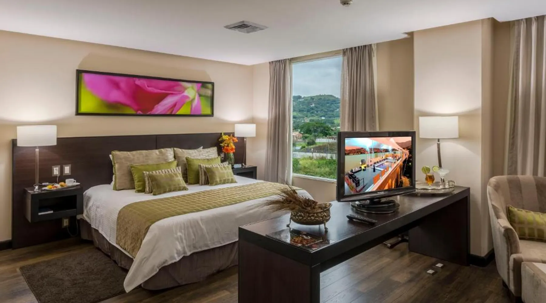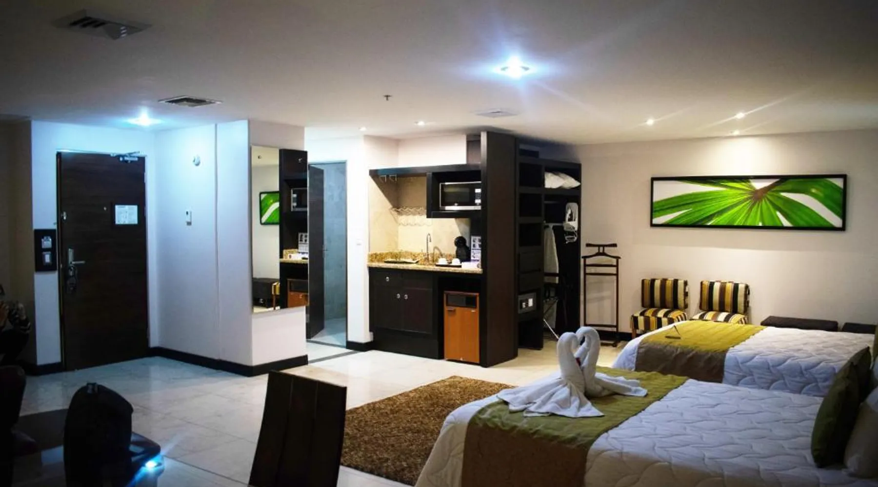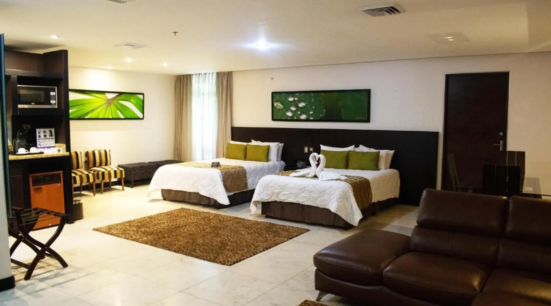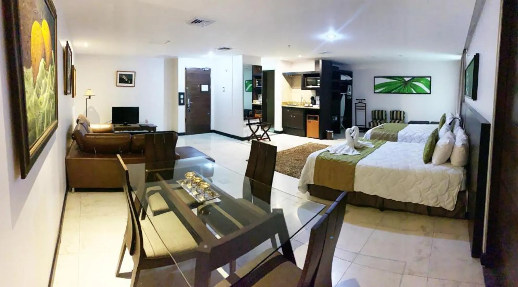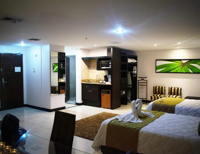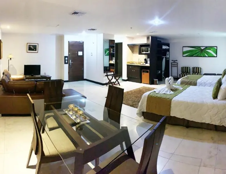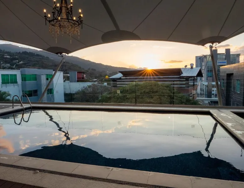 Featuring a rooftop swimming pool, Studio Hotel offers rooms with free high-speed WiFi and views of the surrounding Central Valley. Set in the center of Santa Ana, this eco-friendly hotel has an à la carte restaurant. Each air-conditioned room at the Studio Hotel has simple, attractive décor. All rooms have an iPod docking station, and tea and coffee making facilities. Solar panels heat the water. Guests can enjoy a buffet breakfast in the Studio’s restaurant or on the terrace. A range of international cuisine is available for dinner. The center of San José is 7.5 mi from the hotel, while the nearby CR-27 Próspero Fernández Motorway connects guests to Caldera and the coast within 1 hour. Forum I Business Center is 2461 feet away, and you can drive to the airport in 15 minutes. This air-conditioned suite is consisted of of 1 living room, 1 separate bedroom and 1 bathroom with a shower. The suite offers a flat-screen TV with cable channels, soundproof walls, a coffee machine, a safe deposit box as well as city views. The unit offers 2 beds.