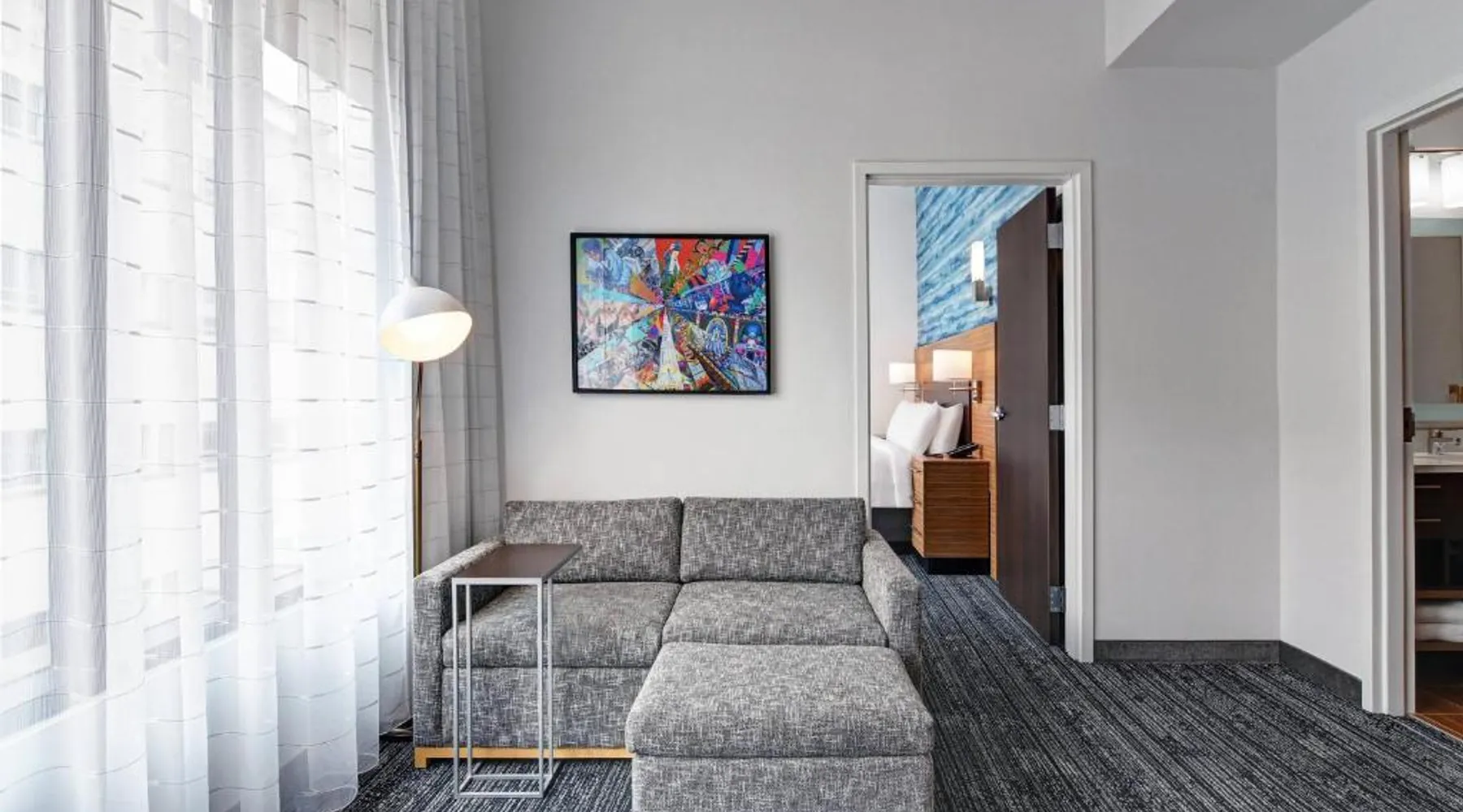 Comfortable Accommodations: TownePlace Suites by Marriott Cincinnati Downtown in Cincinnati offers family rooms with air-conditioning, private bathrooms, sofa beds, work desks, and free toiletries. Each room includes a sofa, shower, and free WiFi. Exceptional Facilities: Guests can enjoy an indoor swimming pool and a bar. The hotel provides a 24-hour front desk, continental and buffet breakfasts with vegetarian options, and paid parking. Prime Location: Located in the city center, the hotel is less than 0.6 mi from the Freedom Center and 0.6 mi from Great American Ball Park. Paul Brown Stadium is a 13-minute walk away. An ice-skating rink is nearby. Guest Satisfaction: Highly rated for its attentive staff, room cleanliness, and convenient location. Offering free toiletries, this studio includes a private bathroom with a shower. The studio offers air conditioning and a sofa. The unit offers 2 beds.