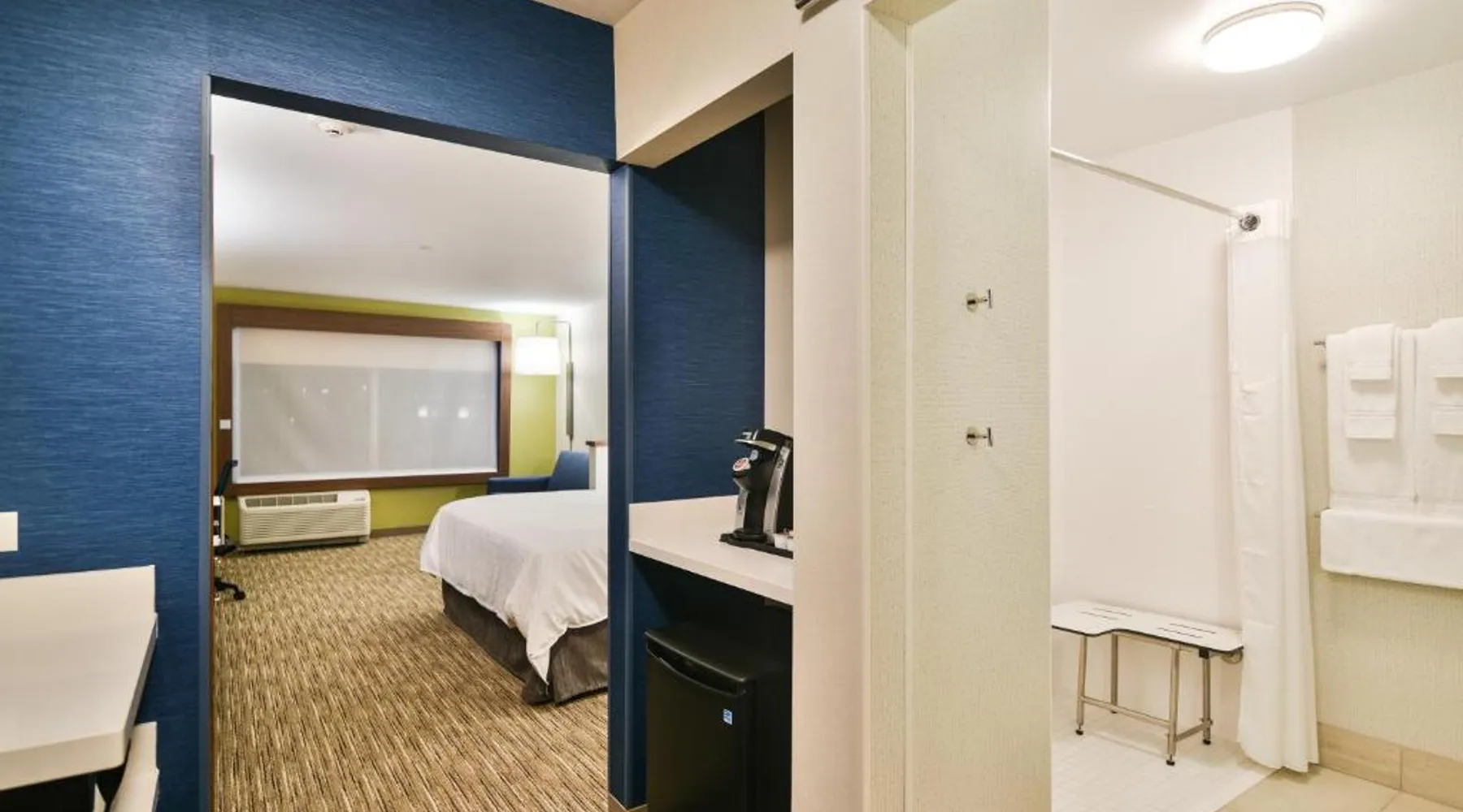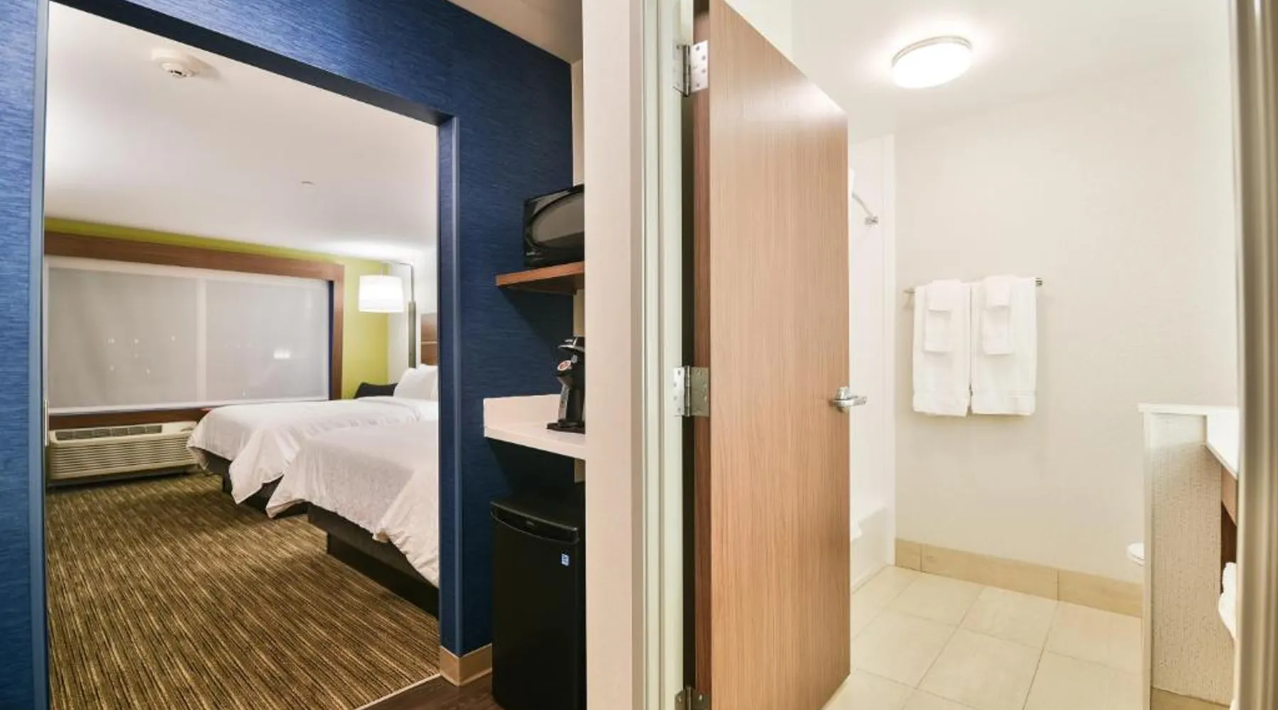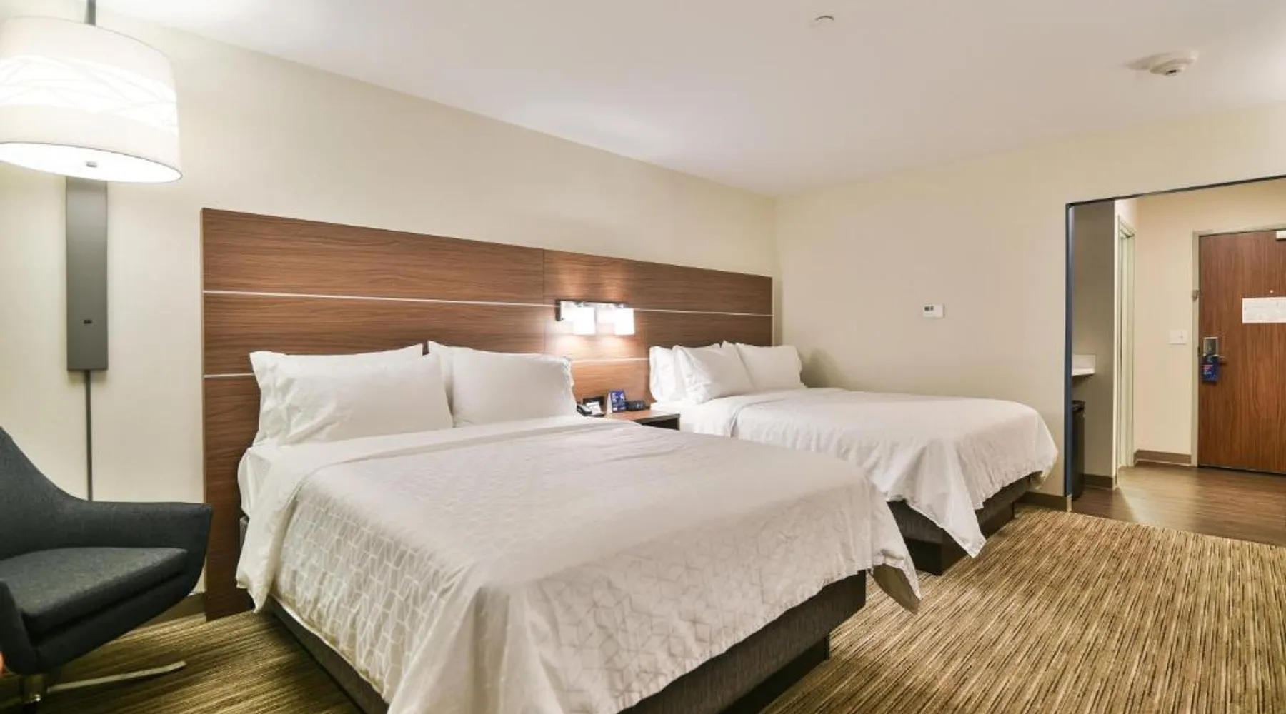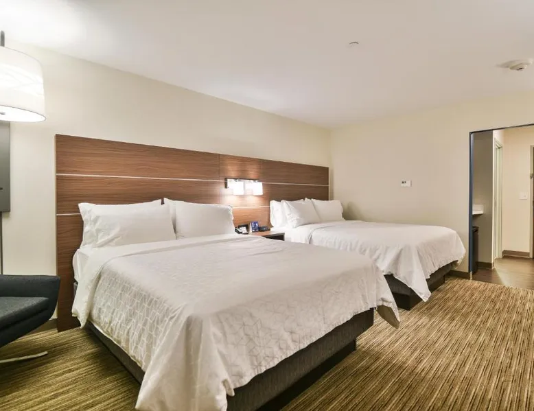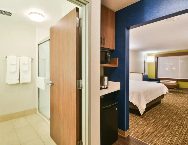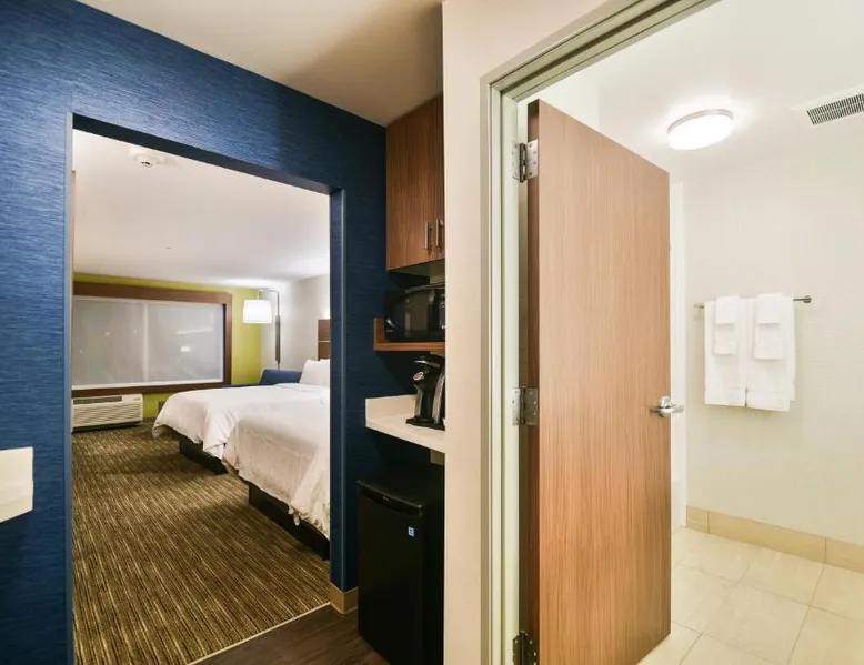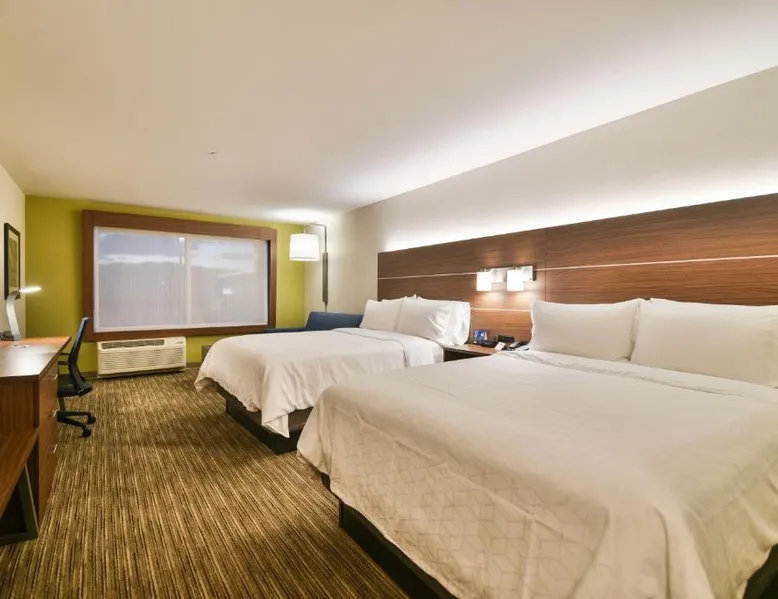 Comfortable Accommodations: Holiday Inn Express & Suites Lehi - Thanksgiving Point by IHG in Lehi offers family rooms with private bathrooms, air-conditioning, and free WiFi. Each room includes a tea and coffee maker, refrigerator, work desk, and TV. Facilities and Amenities: Guests can enjoy a fitness center, indoor swimming pool, and hot tub. Additional facilities include a elevator, 24-hour front desk, full-day security, and free on-site private parking. Dining and Breakfast: A buffet breakfast is served daily, featuring fresh pastries, pancakes, fruits, and juice. The property also offers a variety of dining options nearby. Location and Attractions: Located 22 mi from Provo Municipal Airport, the hotel is a 15-minute walk from Thanksgiving Point. Nearby attractions include Salt Lake Tabernacle and Temple Square. Hiking trails are available in the surroundings. Featuring free toiletries, this double room includes a private bathroom with a bath or a shower and a hairdryer. The spacious double room features air conditioning, a tea and coffee maker, a wardrobe, a safe deposit box and a flat-screen TV with cable channels. The unit has 2 beds.