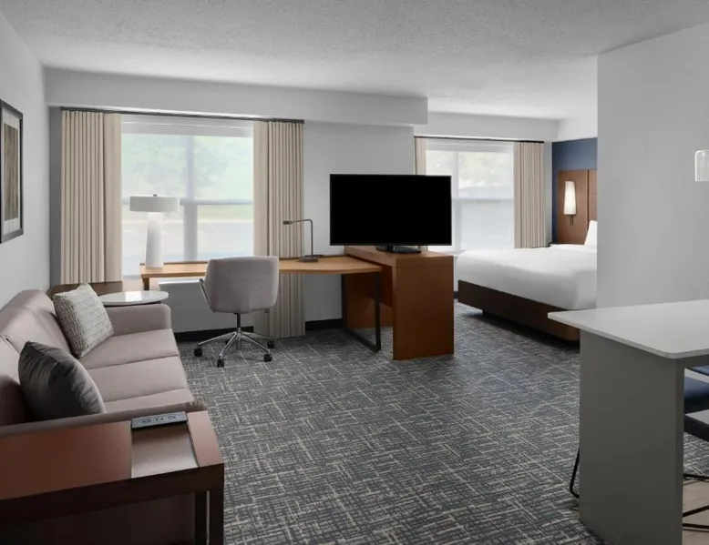 Comfortable Accommodations: Residence Inn by Marriott Holland in Holland offers family rooms with air-conditioning, kitchenettes, and private bathrooms. Each room includes a work desk, sofa bed, and free WiFi. Exceptional Facilities: Guests can enjoy a fitness center, indoor swimming pool, terrace, and bar. Additional amenities include a lounge, outdoor fireplace, and outdoor seating area. Delicious Breakfast: A variety of breakfast options are available, including American, buffet, and à la carte. Fresh pastries, pancakes, fruits, and warm dishes enhance the morning experience. Convenient Location: Located 31 mi from Muskegon County Airport, the hotel is near Grand Valley State University (29 mi) and Gerald R. Ford Presidential Museum (29 mi). Free on-site parking and a minimarket are provided. Featuring a full kitchen and dining area, the separate living room offers cable TV. Please note that the room rate is based on 4 guests. Maximum occupancy is 4 guests (see Hotel Policies).