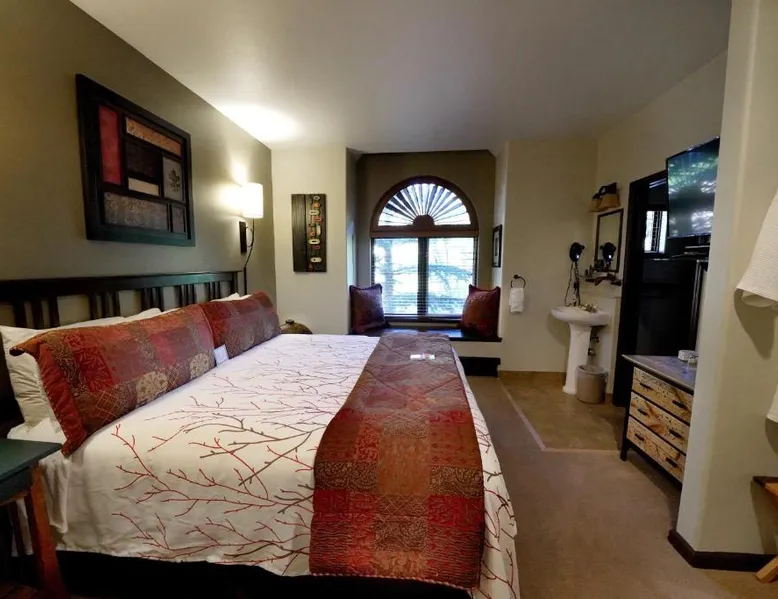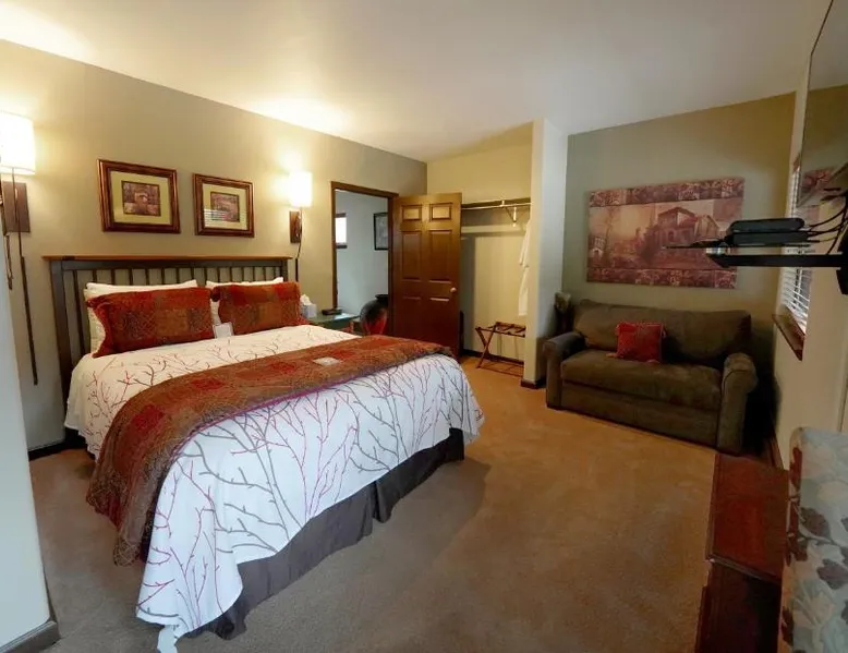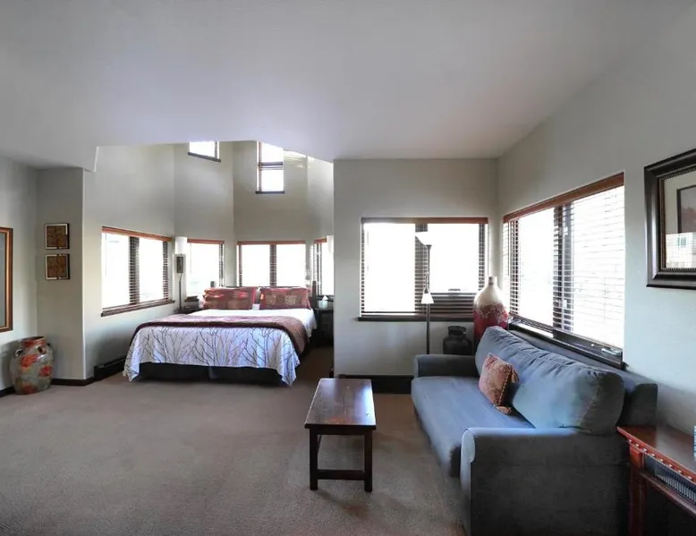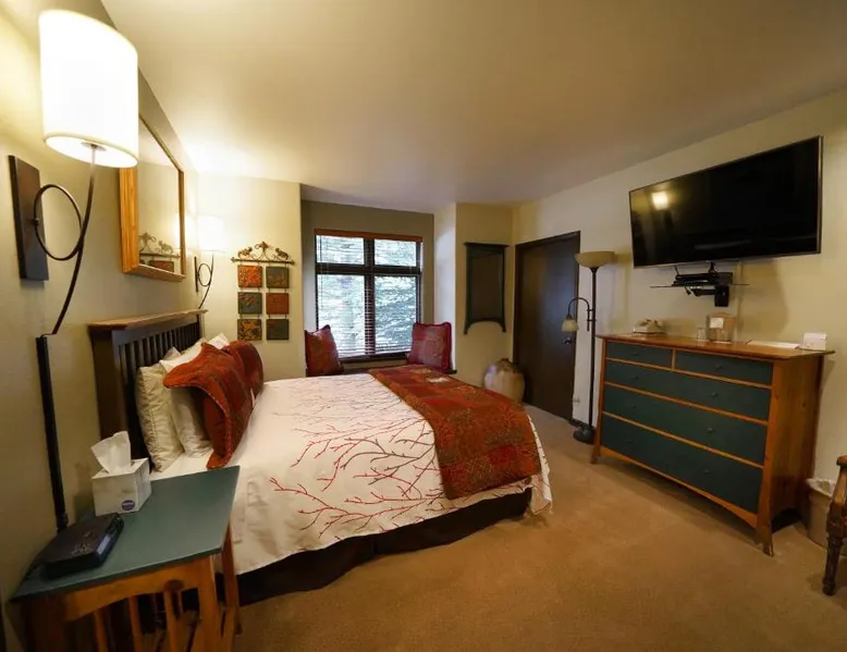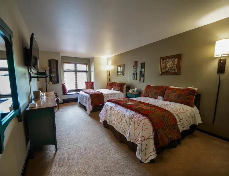 Comfortable Accommodations: Frisco Inn on Galena in Frisco offers family rooms with private bathrooms, balconies, and garden or mountain views. Each room includes air-conditioning, a TV, and free WiFi. Exceptional Facilities: Guests enjoy spa facilities, a sauna, fitness center, sun terrace, and free bicycles. Additional amenities include a hot tub, outdoor fireplace, and games room. Dining Experience: The on-site restaurant serves American cuisine with breakfast options including full English, vegetarian, and gluten-free. Dining areas feature local specialties and fresh pastries. Activities and Location: Located 60 mi from Eagle County Regional Airport, the inn is a short walk from Frisco Historic Park. Nearby attractions include Vail Nordic Center and Vail Golf Club, each 25 mi away. Hiking trails surround the property. Offering free Wi-Fi, this spacious family room offers features 2 flat-screen TVs, living room with a desk, an additional seating area and 360 degree mountain views. A free gourmet breakfast with cappuccino and espresso service is offered daily with this rate. This room type has a max capacity of 7 people.