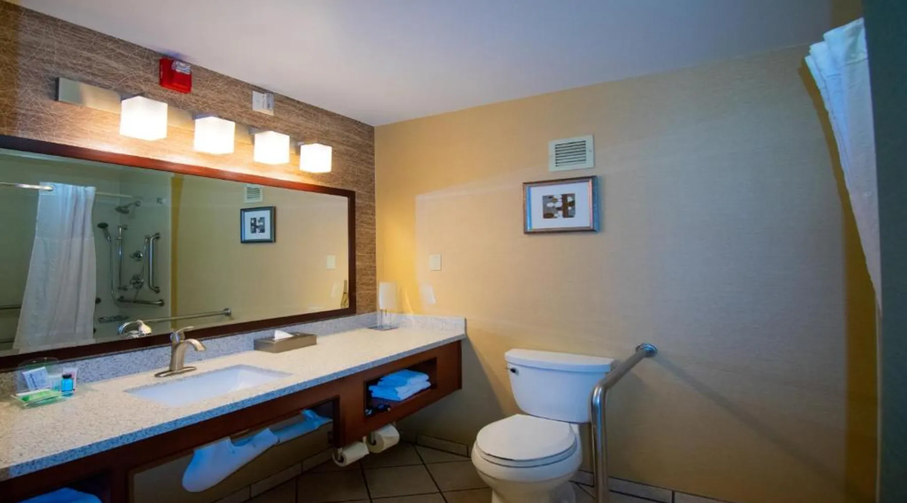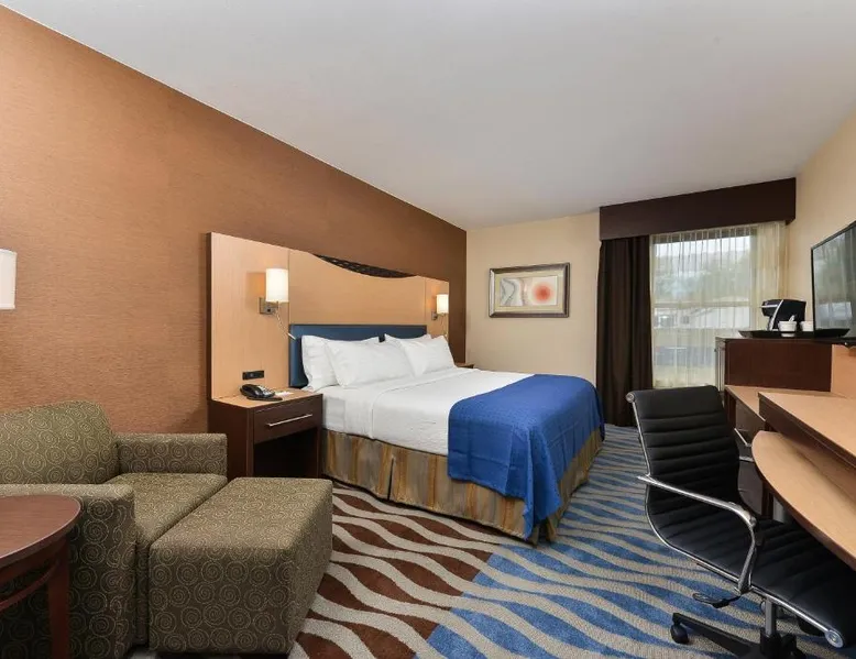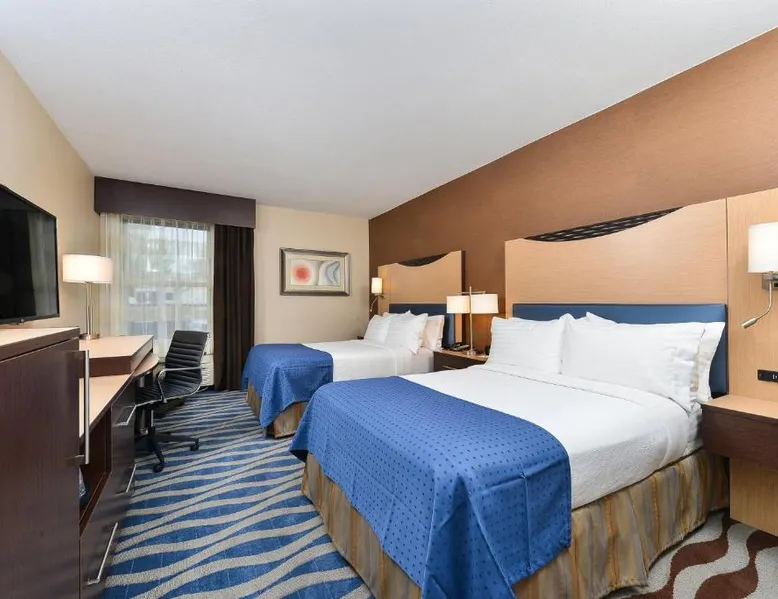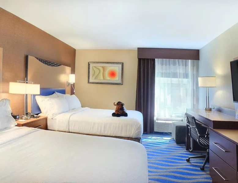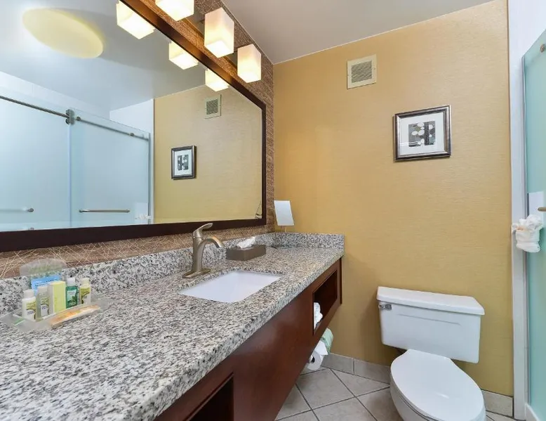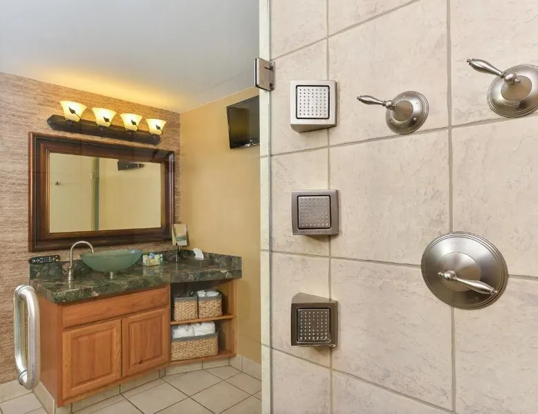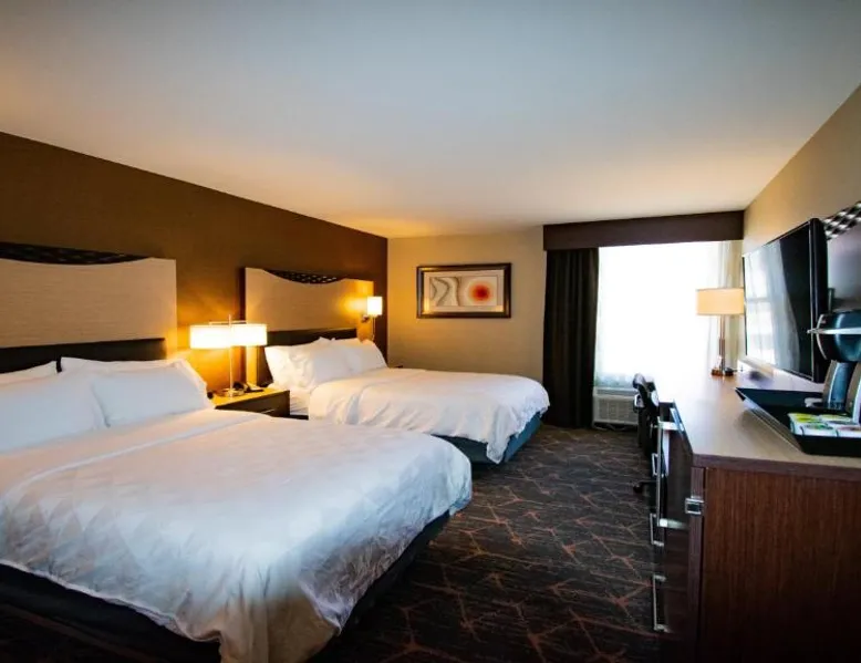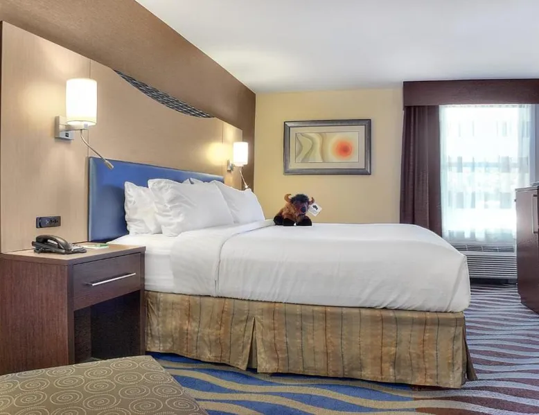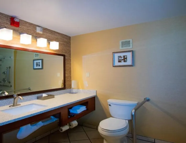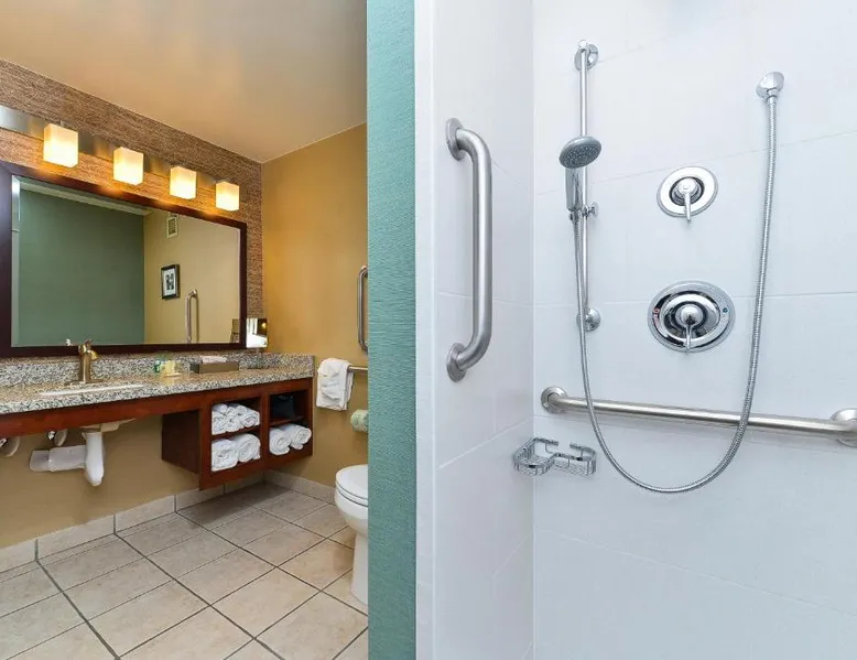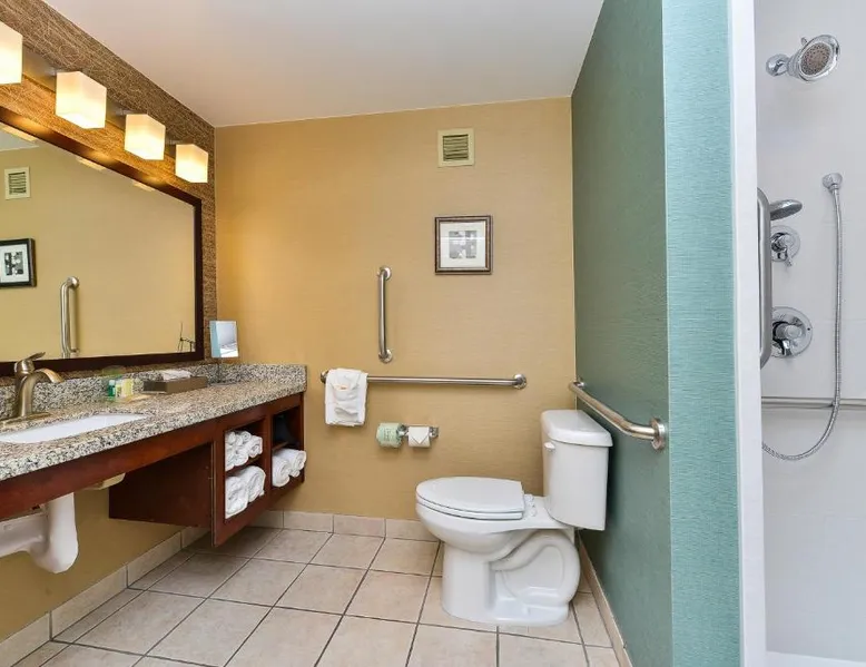 Just 5 minutes' drive from the Buffalo Bill Historical Center, this Cody hotel features an on-site lounge, a large outdoor pool, and rooms with free WiFi. Each of the classic rooms at the Buffalo Bill Village Holiday Inn offers large windows with blackout curtains. They include satellite TV, pay-per-view movie channels, and video games. Cardio equipment, a mounted TV, and full-length mirrors are part of the hotel gym. The business center, located off of the lobby, includes 2 computers and printers. For guest convenience an ATM is available. Breakfast is available every morning at this Cody Holiday Inn. Bottoms Up Lounge is located on site and open in the evenings. The breakfast only covers 1-2 guests and any additional guests will need to be paid for in the restaurant. Old Trail Town, a collection of historic western buildings, is 10 minutes' drive from Holiday Inn Cody - Convention Center, an IHG Hotel Village. Buffalo Bill State Park is 11 mi from the hotel. This room features a roll-in shower.