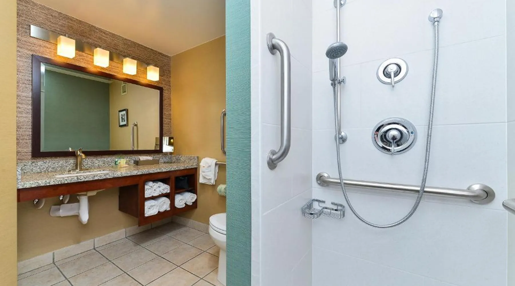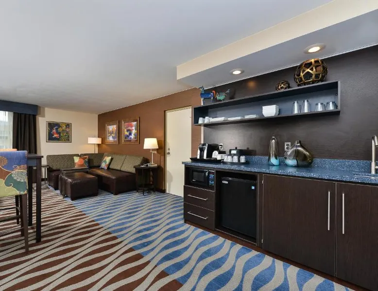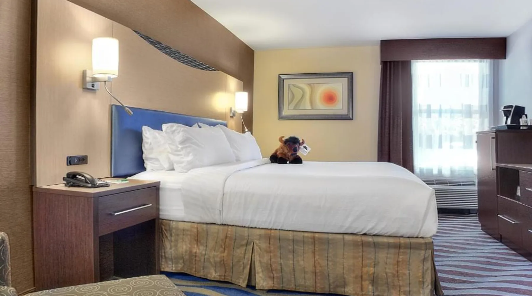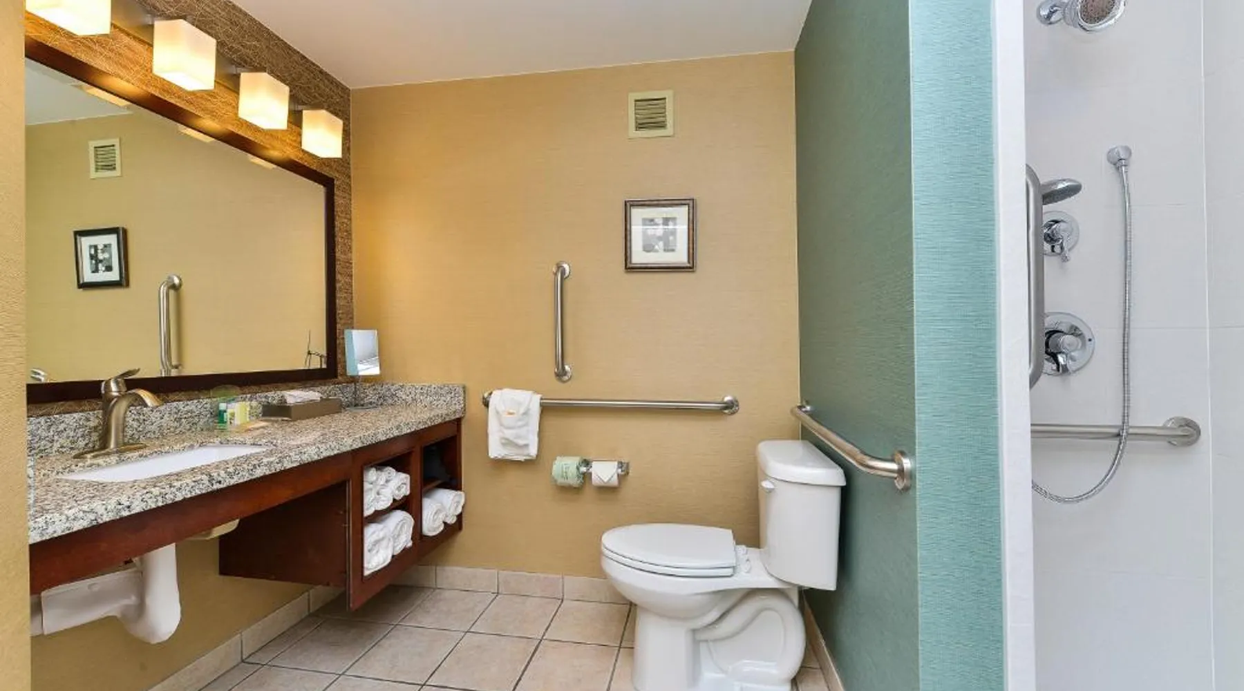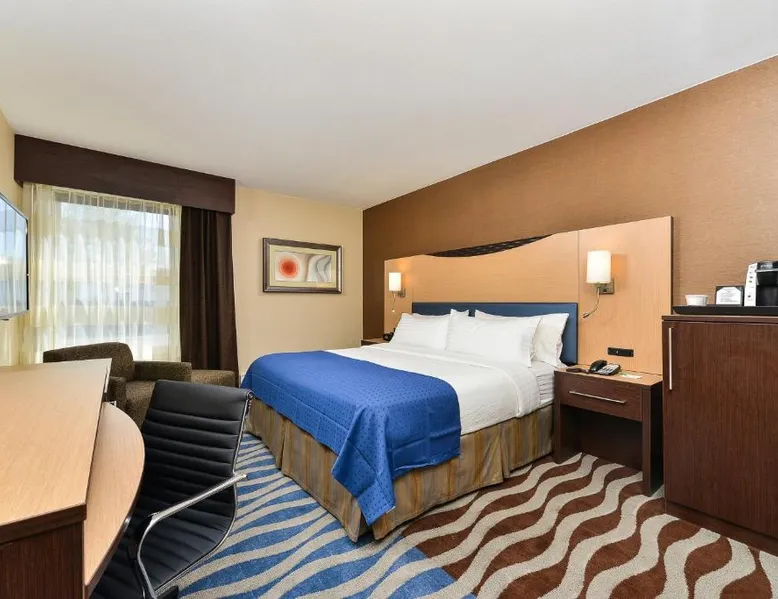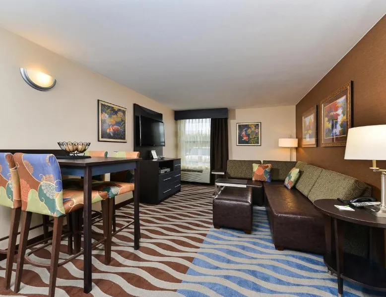 Just 5 minutes' drive from the Buffalo Bill Historical Center, this Cody hotel features an on-site lounge, a large outdoor pool, and rooms with free WiFi. Each of the classic rooms at the Buffalo Bill Village Holiday Inn offers large windows with blackout curtains. They include satellite TV, pay-per-view movie channels, and video games. Cardio equipment, a mounted TV, and full-length mirrors are part of the hotel gym. The business center, located off of the lobby, includes 2 computers and printers. For guest convenience an ATM is available. Breakfast is available every morning at this Cody Holiday Inn. Bottoms Up Lounge is located on site and open in the evenings. The breakfast only covers 1-2 guests and any additional guests will need to be paid for in the restaurant. Old Trail Town, a collection of historic western buildings, is 10 minutes' drive from Holiday Inn Cody - Convention Center, an IHG Hotel Village. Buffalo Bill State Park is 11 mi from the hotel. This room features a roll-in shower.