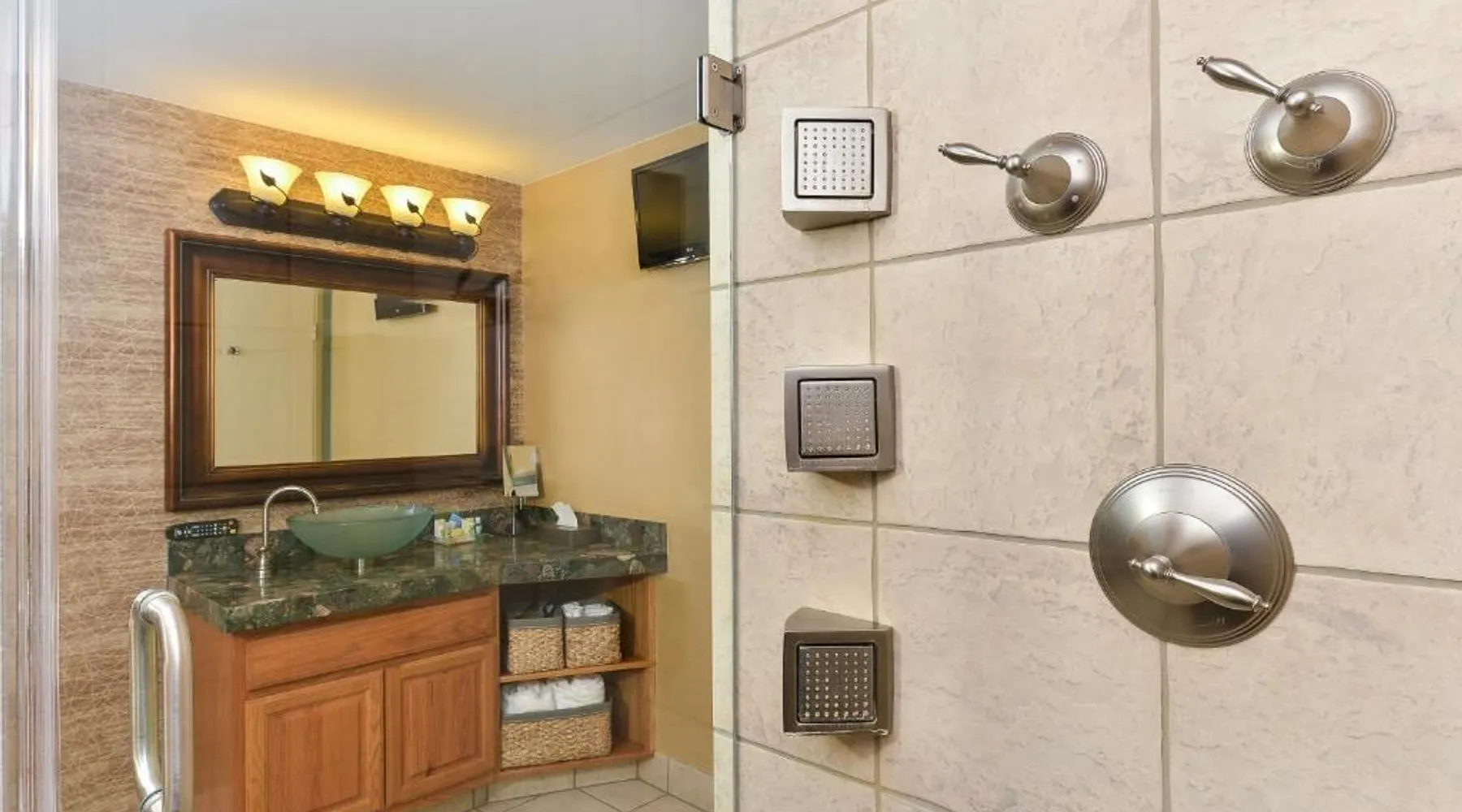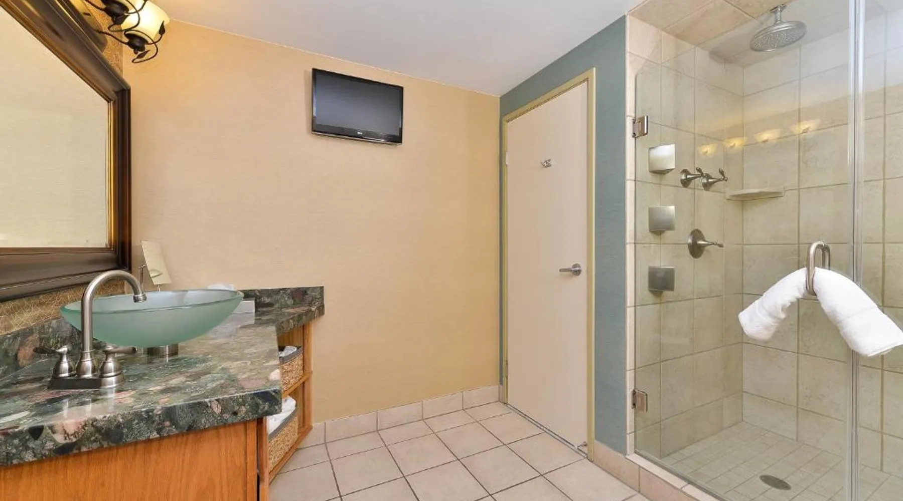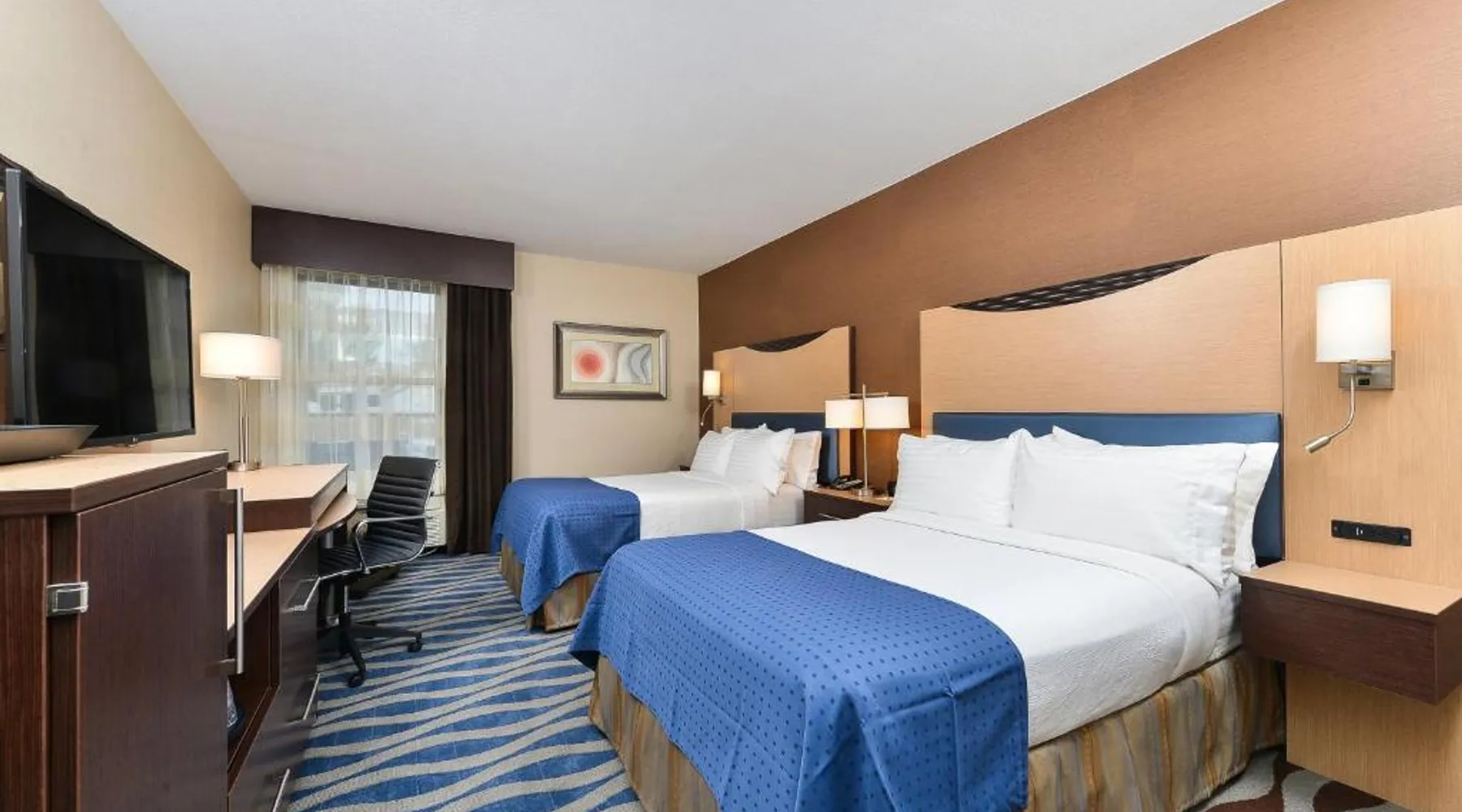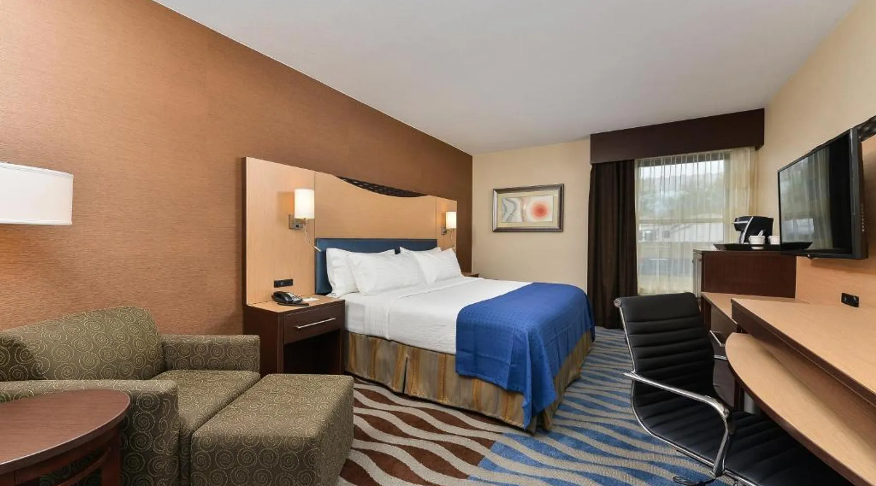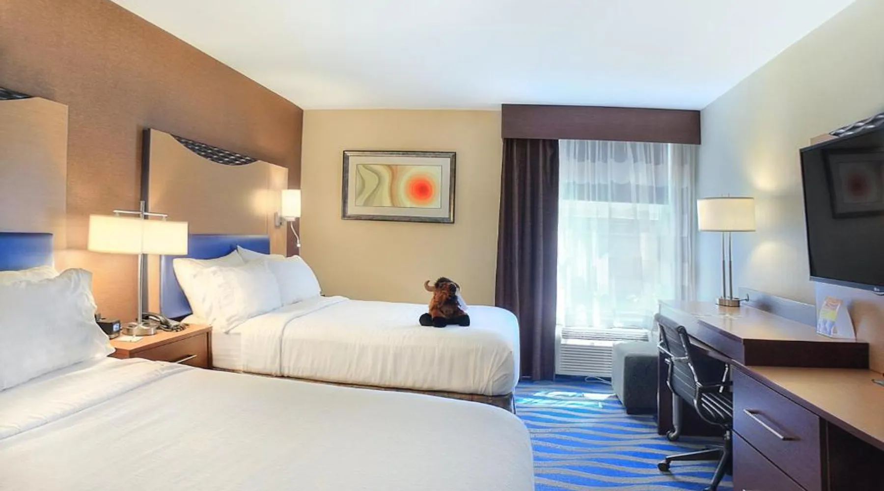 Just 5 minutes' drive from the Buffalo Bill Historical Center, this Cody hotel features an on-site lounge, a large outdoor pool, and rooms with free WiFi. Each of the classic rooms at the Buffalo Bill Village Holiday Inn offers large windows with blackout curtains. They include satellite TV, pay-per-view movie channels, and video games. Cardio equipment, a mounted TV, and full-length mirrors are part of the hotel gym. The business center, located off of the lobby, includes 2 computers and printers. For guest convenience an ATM is available. Breakfast is available every morning at this Cody Holiday Inn. Bottoms Up Lounge is located on site and open in the evenings. The breakfast only covers 1-2 guests and any additional guests will need to be paid for in the restaurant. Old Trail Town, a collection of historic western buildings, is 10 minutes' drive from Holiday Inn Cody - Convention Center, an IHG Hotel Village. Buffalo Bill State Park is 11 mi from the hotel. This room features a roll-in shower.
