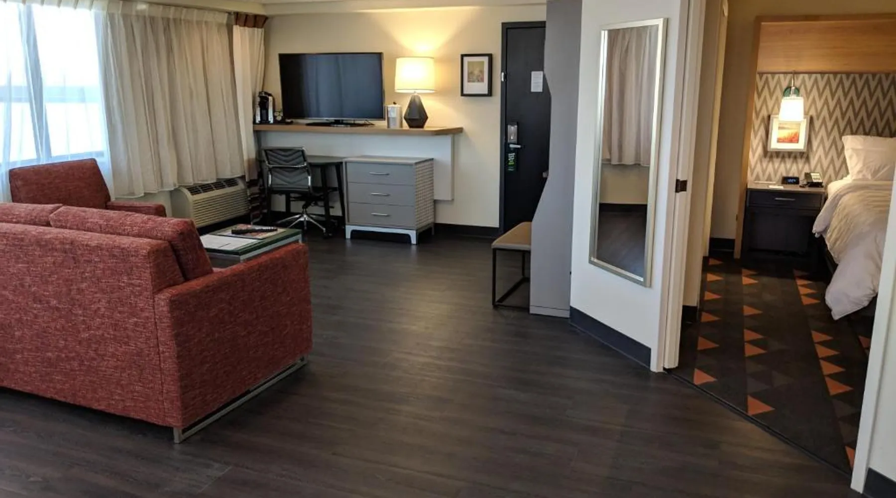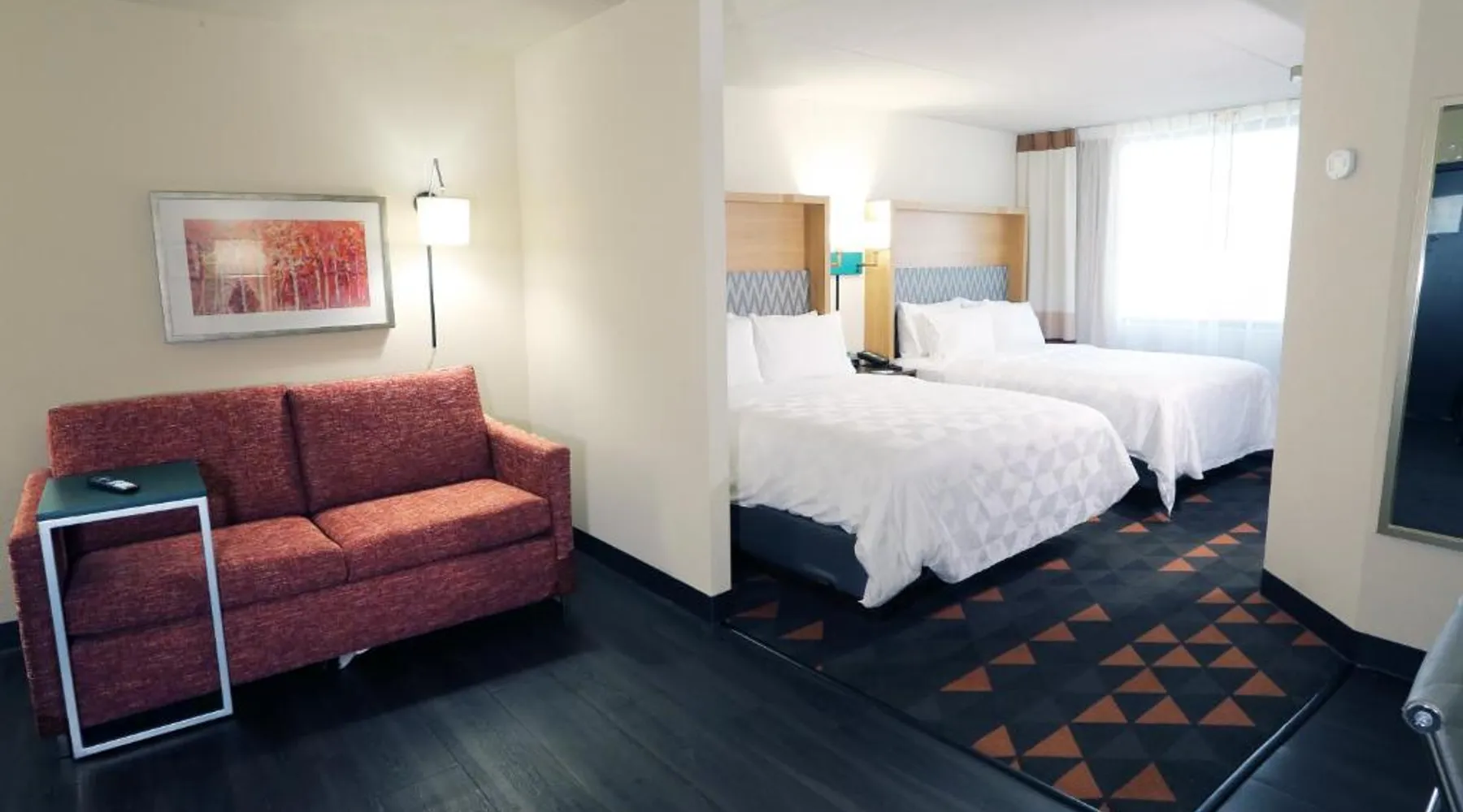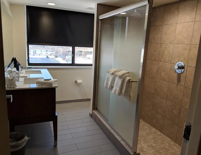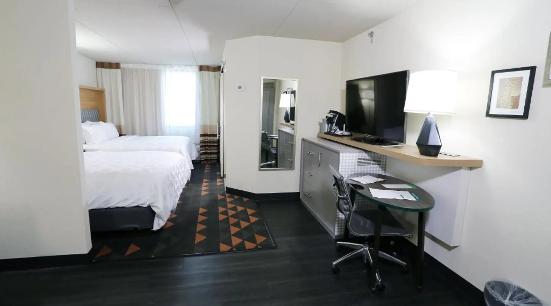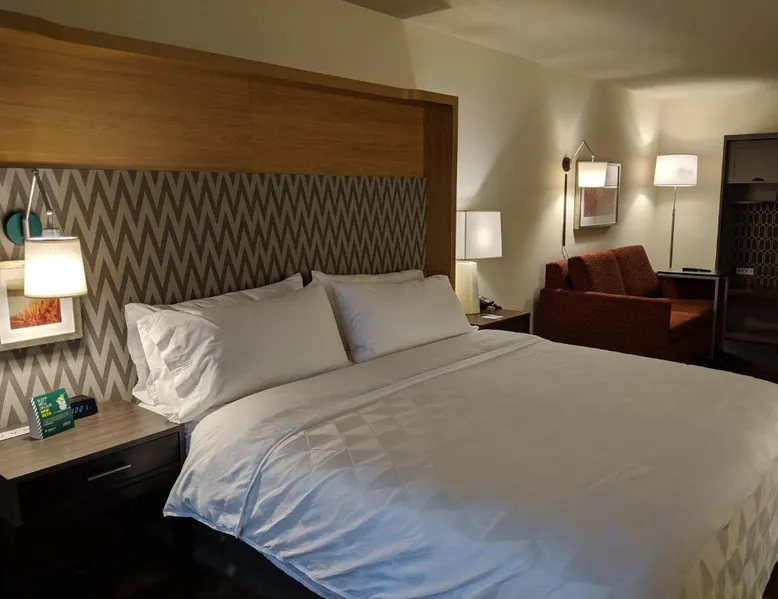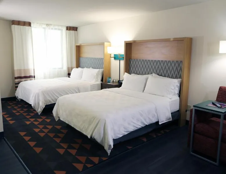 Comfortable Accommodations: Holiday Inn Champaign by IHG in Champaign offers family rooms with air-conditioning, private bathrooms, and modern amenities. Each room includes a work desk, TV, and free WiFi. Exceptional Facilities: Guests enjoy a fitness center, indoor swimming pool, and a beautiful garden. The hotel provides a free airport shuttle service to University of Illinois-Willard Airport, 5.6 mi away. Dining Options: The on-site restaurant serves American cuisine for dinner, complemented by a bar. A child-friendly buffet caters to families. Convenient Location: Located near Champaign Memorial Stadium (12-minute walk), State Farm Center (0.6 mi), and Krannert Art Museum (1.1 mi). An ice-skating rink is nearby. Providing free toiletries, this double room includes a private bathroom with a shower and a hairdryer. The spacious double room provides air conditioning, a tea and coffee maker, a seating area, a wardrobe and a TV with streaming services. The unit offers 3 beds.